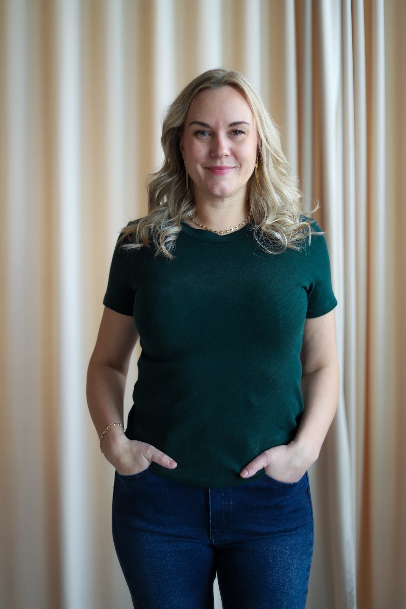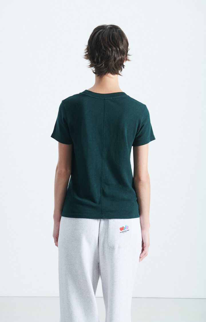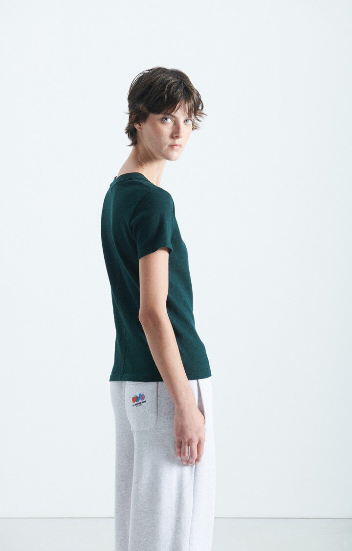 Tidløs basic tee i mørk grønn fra American Vintage. Deilig myk bomullskvalitet med fin struktur. Regulær rett modell med rund hals og nette korte ermer.