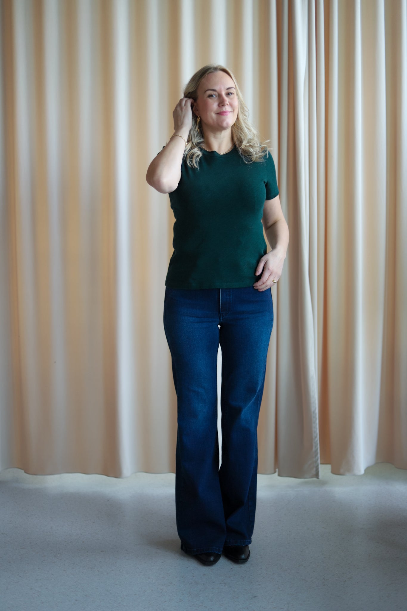 Normal på størrelsen. Marie er 168 cm og har på seg størrelse M.