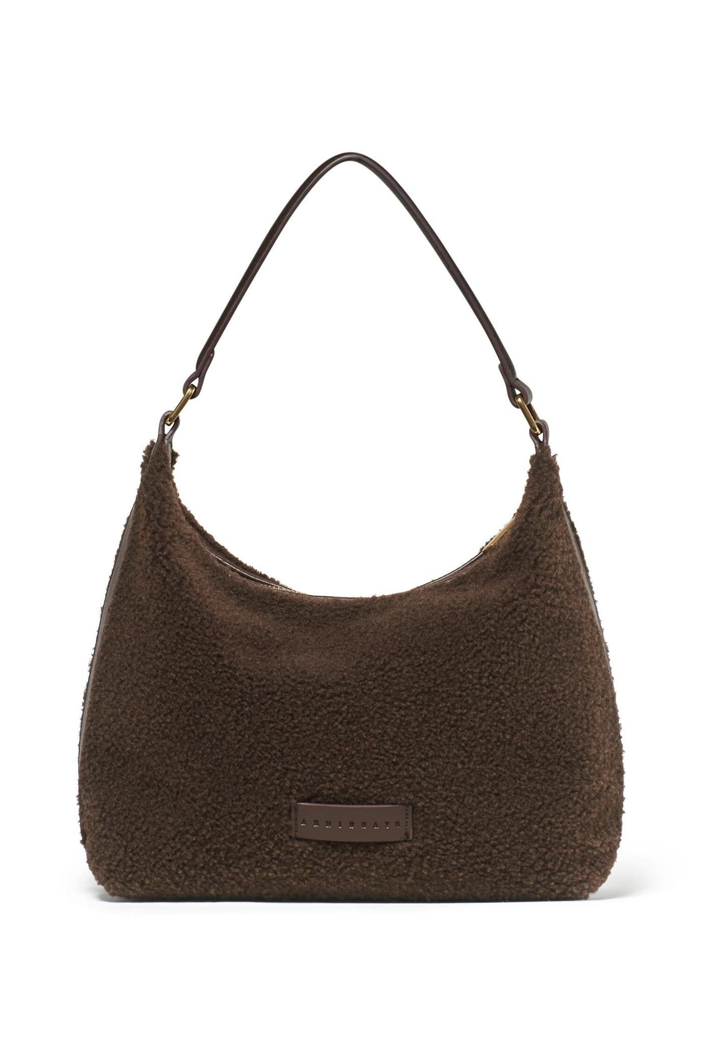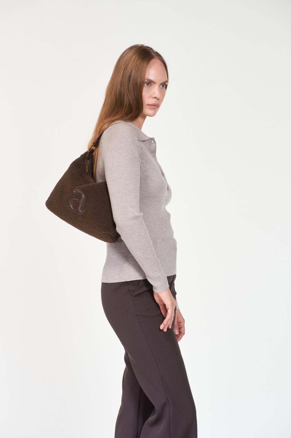 Søt veske i mørk brun teddykvalitet fra Arnie Says. En elegant modell pyntet med detaljer i imitert skinn og en quiltet logo ton-i-ton. Perfekt for å bære med deg det viktigste. Den har en praktisk glidelåslukking, et romslig hovedrom, samt en åpen lomme og en liten glidelåslomme for organisering.