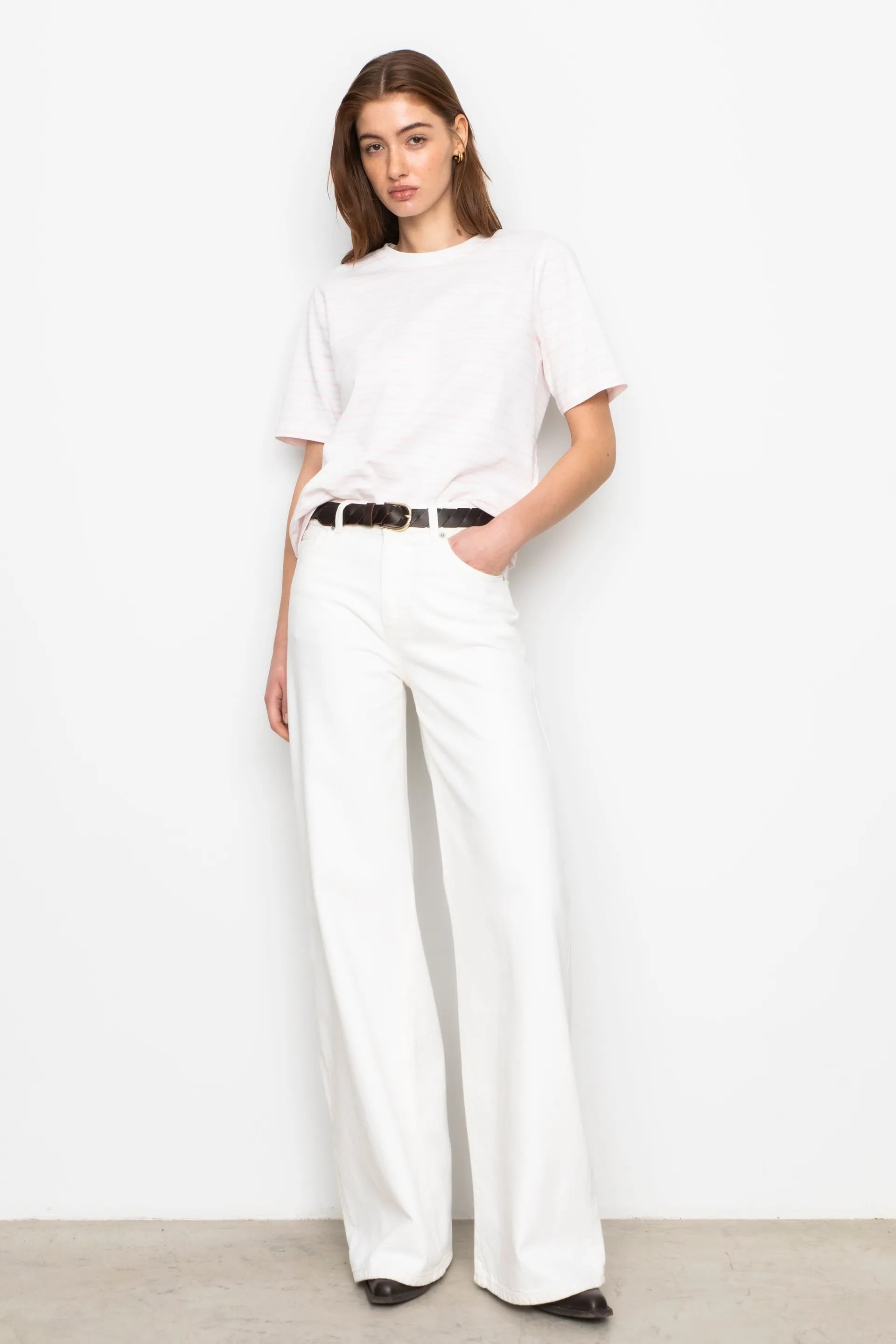 Taylor jeans fra Camilla Pihl. Myk denimkvalitet i off-white. Modellen har høyt liv og rette ben med vidde. Klassisk 5-pocket modell med linning, beltehemper og skjult zip i gylf. Sikre deg bestselgeren i sesongens farge.