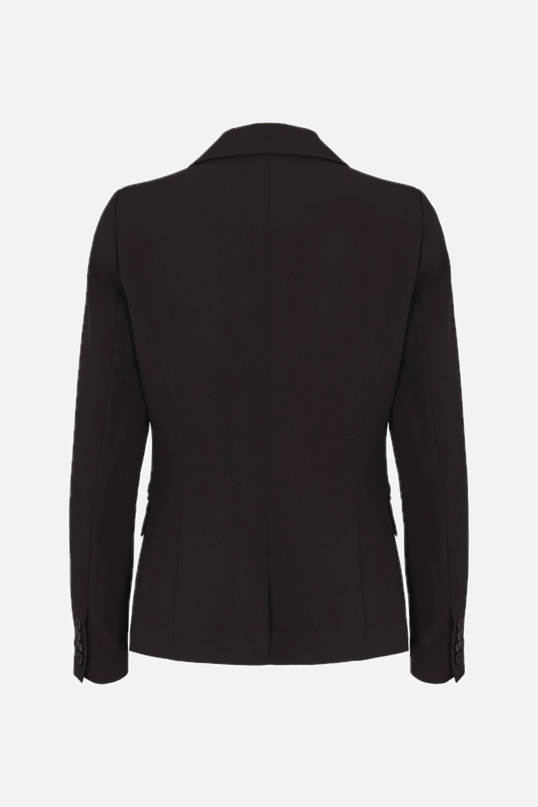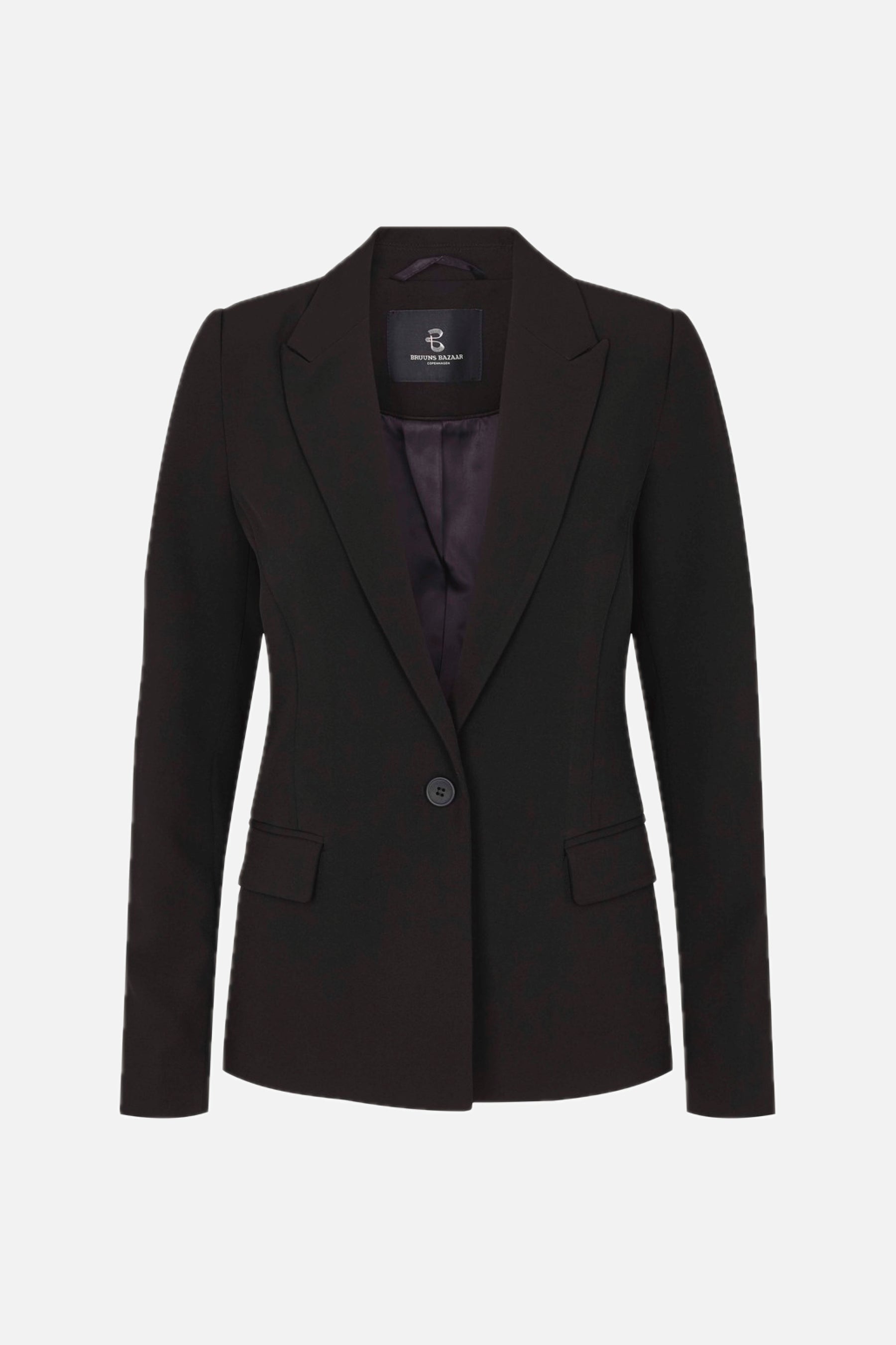 En bestselger blazer i klassisk sort fra Bruuns Bazaar. Modellen har lett innsving, feminin hoftelengde og lukkning med en enkel knapp. Jakken er tynt fóret med nett sofistikert passform. Blazeren har klassiske detaljer som slag med hakk og weltlommer i front. En tidløs garderobefavoritt for alle sesonger. Perfekt i sett med matchende dressbukser.