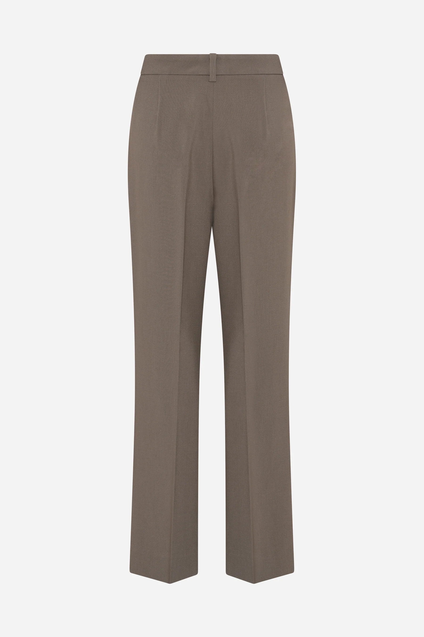 En bestselger dressbukse i sesongens trendy brunfarge fra Bruuns Bazaar. Modellen Eleza har mellomhøyt liv, rett passform og full lengde. Den har klassiske detaljer som linning med beltehemper, gylf med skjult glidelås og hempe. Stilige legg foran og bak, og skrålommer i sidene. Perfekt i sett med matchende blazer!