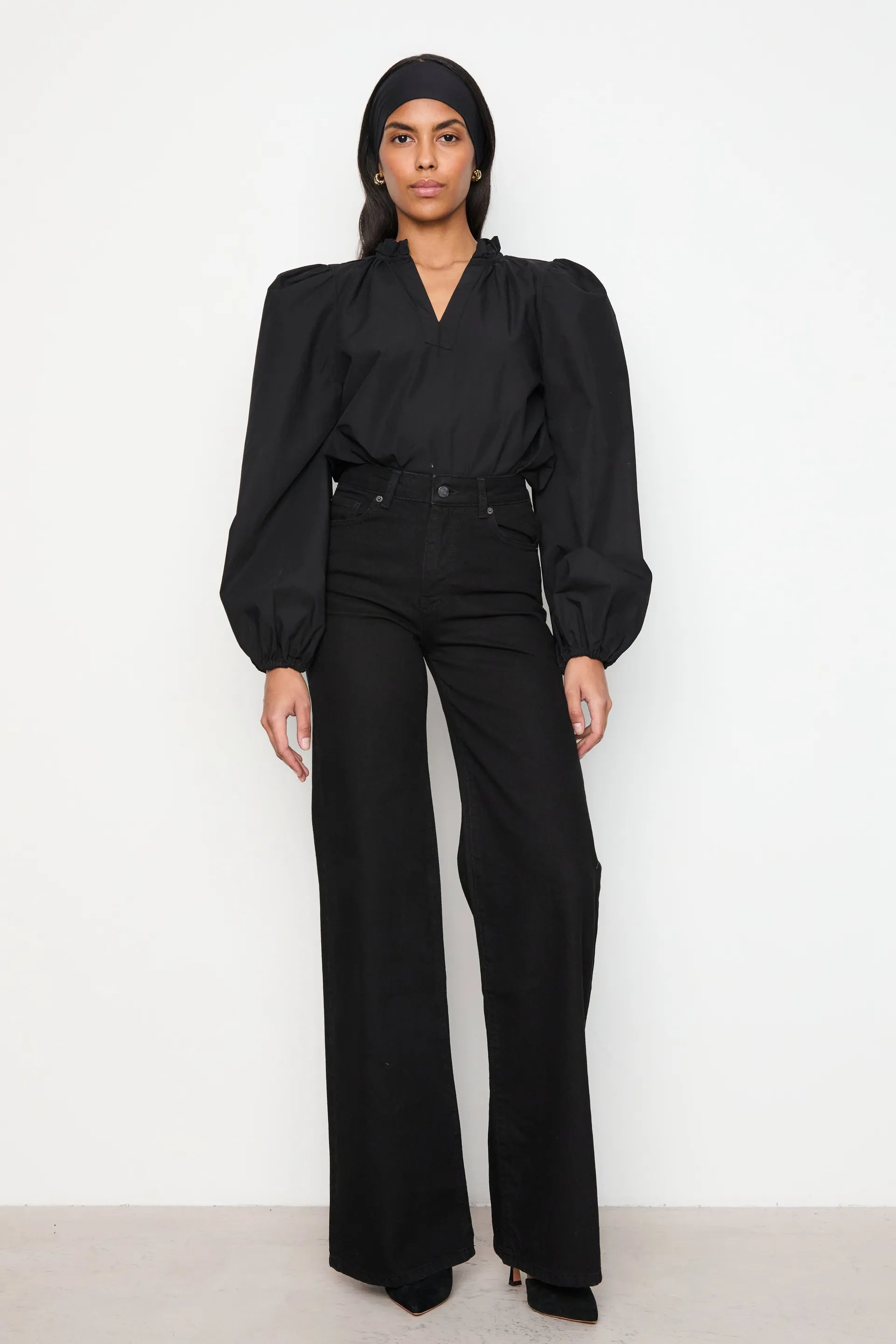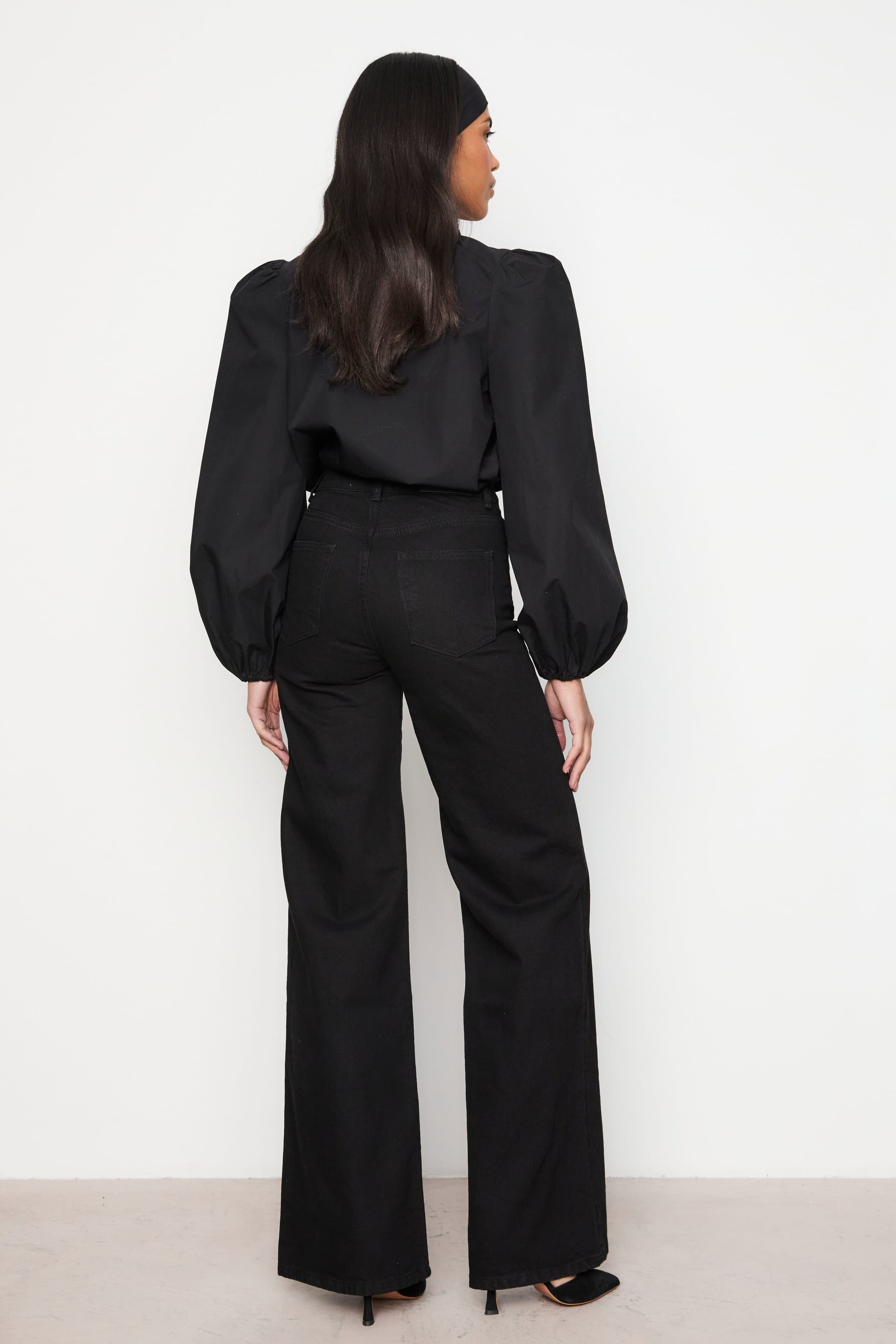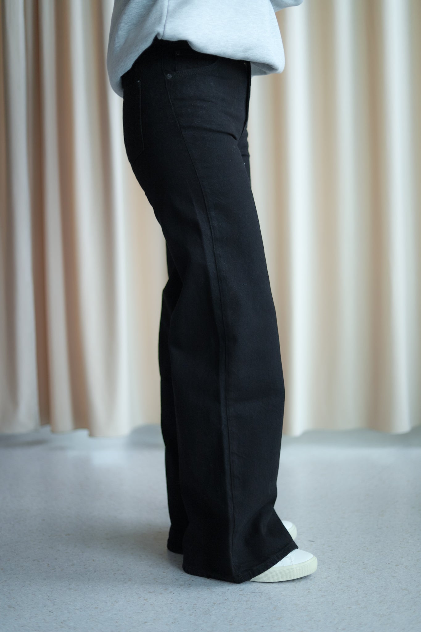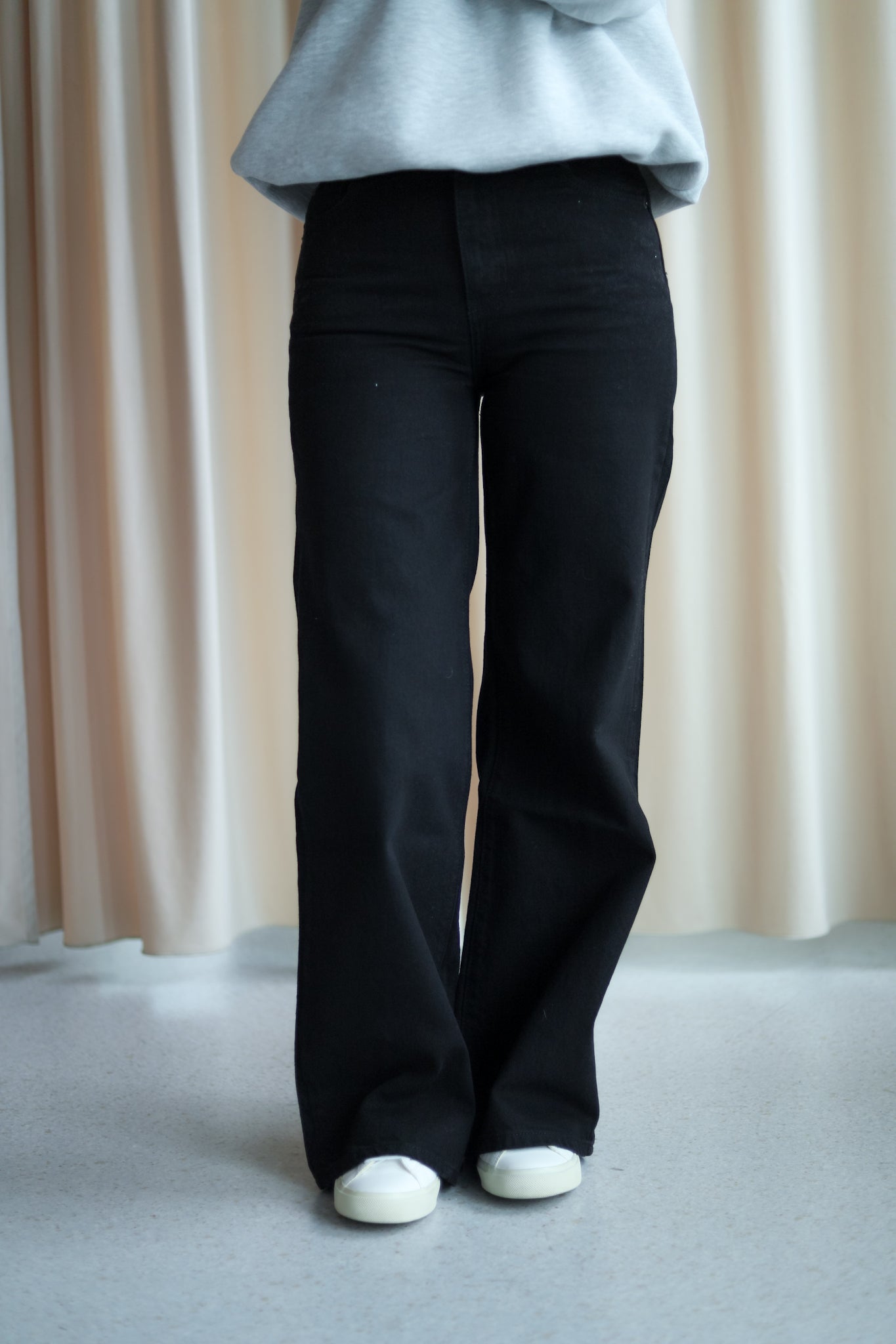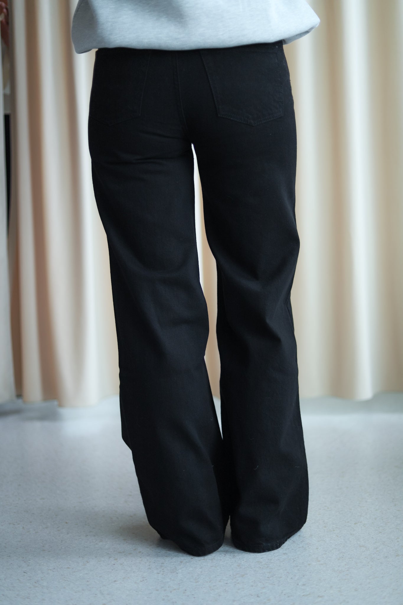Taylor jeans fra Camilla Pihl. Retro tykk denimkvalitet i sort. Modellen har høyt liv og rette ben med vidde. Klassisk 5-pocket modell med linning, beltehemper og skjult zip i gylf.