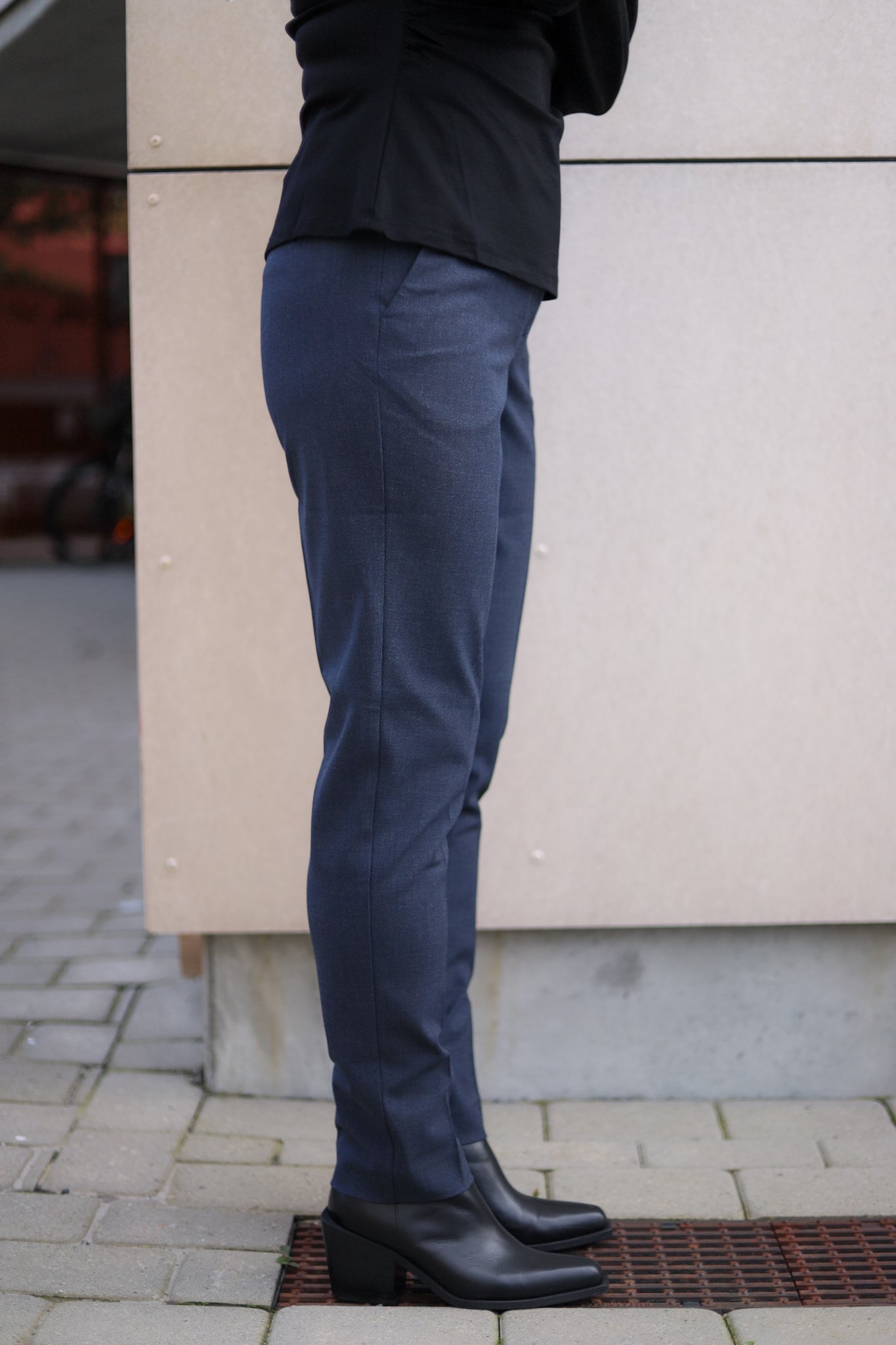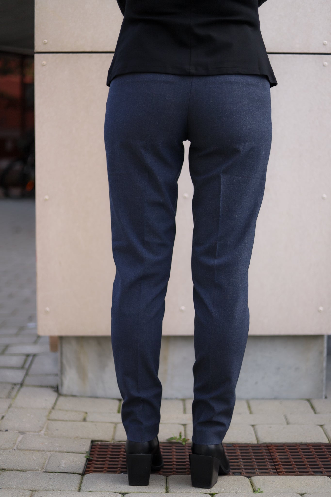 Julia i sesongens sesongens blågrå farge fra FiveUnits. Julia er allerede blitt en stor favoritt. En elegant dressbukse i den velkjente 285 kvaliteten som er behagelig myk og stretchy. Modellen har medium livhøyde, avsmalnende passform og ankellengde. Buksen har beltehemper, skrålommer i front og pyntelommer bak. Lukkning med gylf med skjult glidelås og hempe. Perfekt dressbukse til alle anledninger!