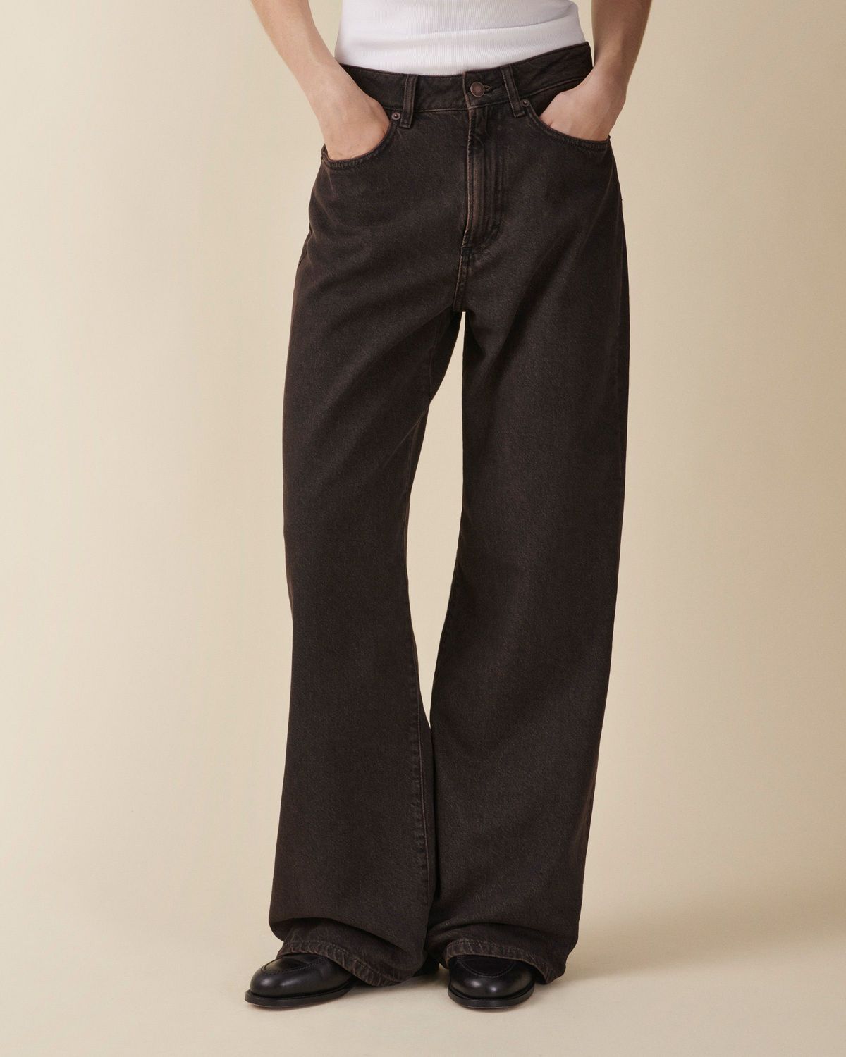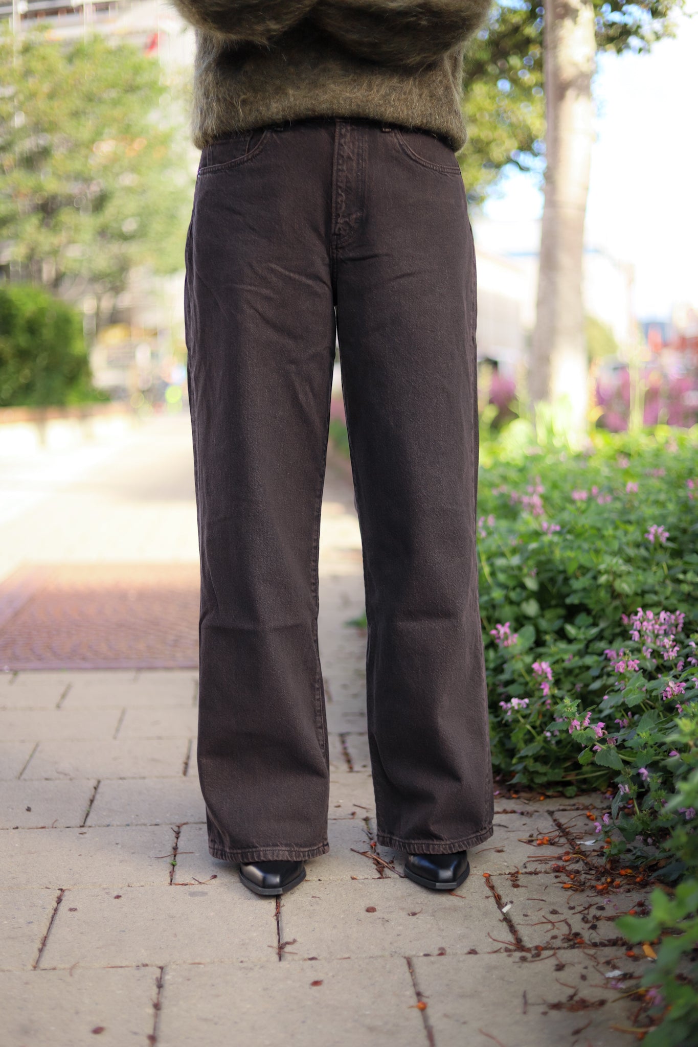 Belem er en trendy jeans med vidde fra Jeanerica, her i en stilig brun vask. Denim uten stretch med viskose som gjør den behagelig myk. En klassisk 5-pocket look med linning, beltehemper, gylf med skjult zip og knapp. Modellen har medium liv og sitter rundt midjen. Den har et lett droppet skritt, vidde fra hoftene og full lengde. En avslappet jeans med en tidløs silhuett. Brown Overdye er en stilig mørk brun/sort denim med mørke sømmer. En elegant og kul vask!