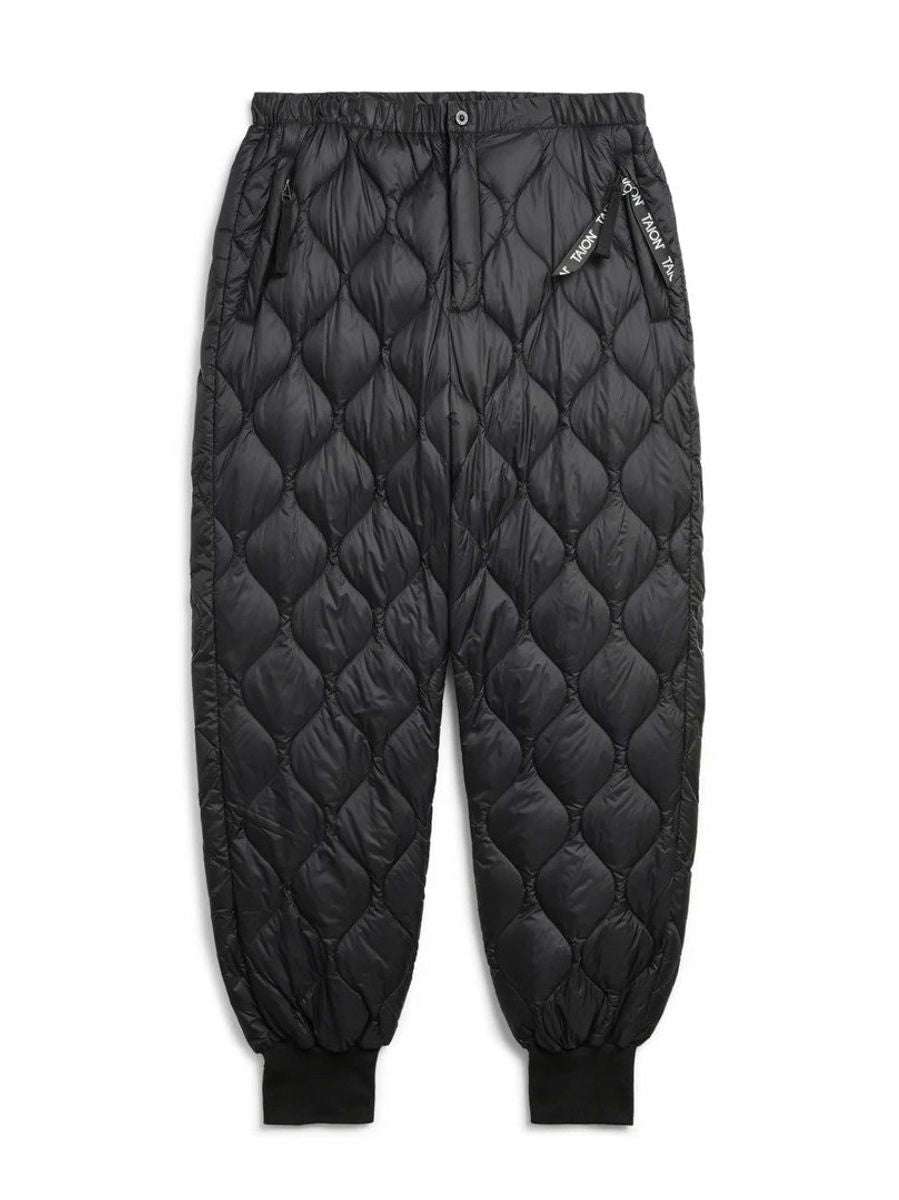 Stilren dunbukse i klassisk sort fra Taion. Modellen er rett og smalner inn mot ankelen med bred elastisk ribb. Buksen har elastisk strikk med knyting i midjen og lukkes med knapp og glidelås. Praktiske stikklommer i sidene. Den er utviklet i høykvalitets 800FLP dun og vannavvisende overflate. Buksen kommer med en liten pose den kan pakkes ned i, slik at den enkelt tar lite plass i reisebaggen eller puttes i vesken dersom det blir varmere utover dagen. Style buksen med matchende jakke for komplett look.