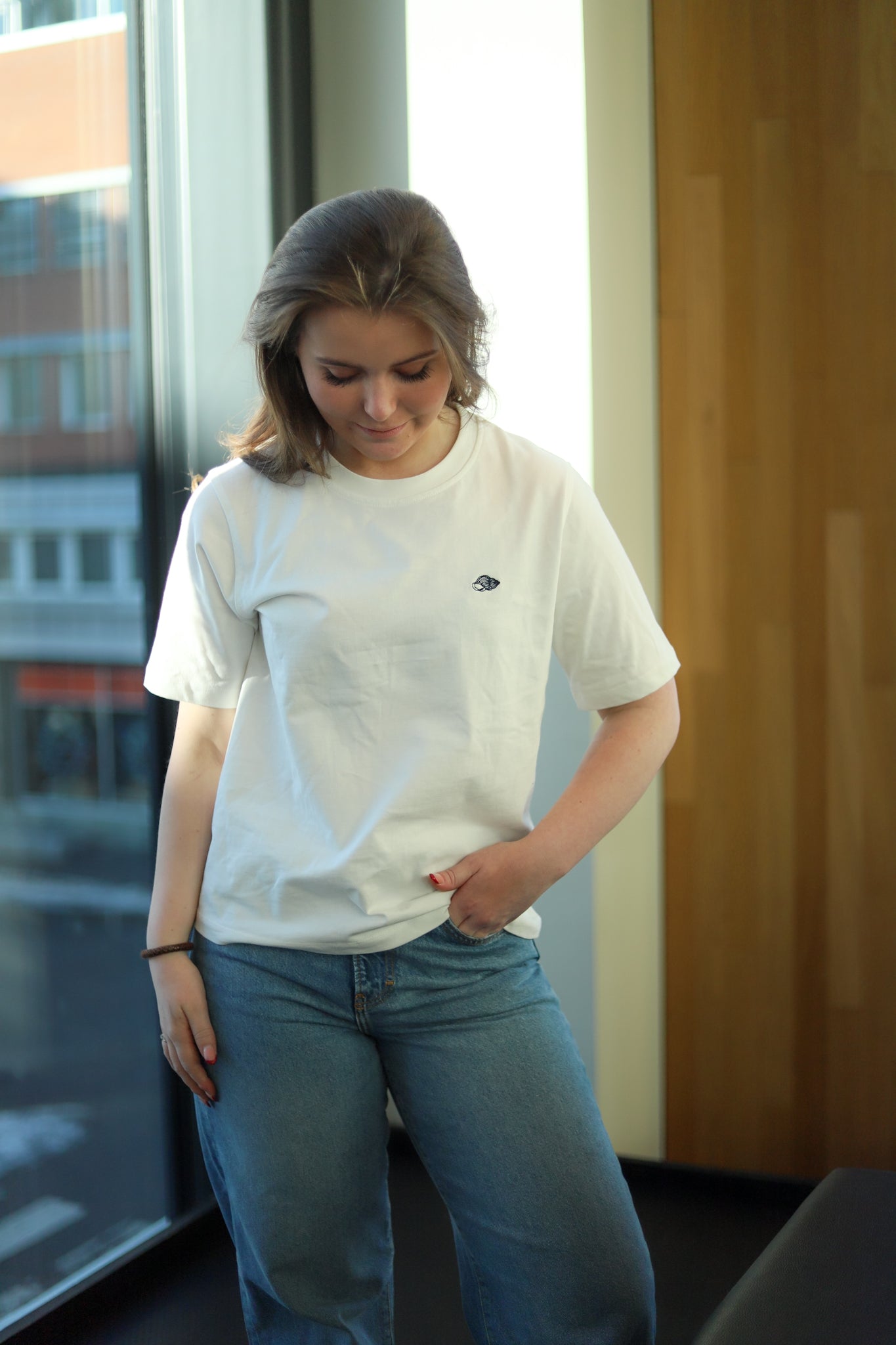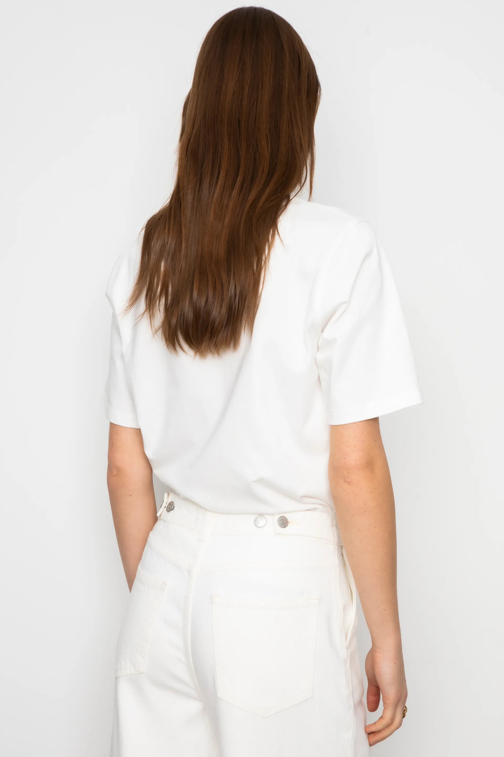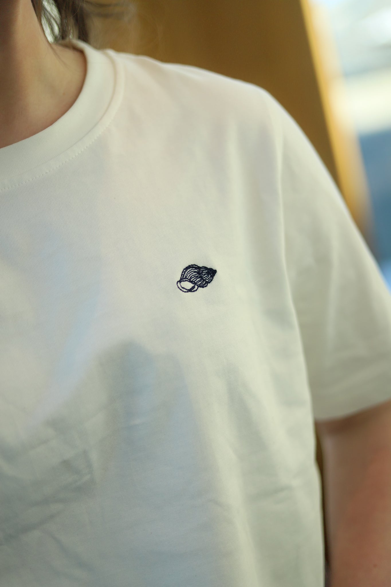 Perfekt tee i offwhite med slogan fra Camilla Pihl. T-skjorten er behagelig myk og har en regulær rett passform. Den har ribb i hals, nette ermer og pen hoftelengde. Dekorativt skjell brodert på brystet og tekst i nakken. En søt base til sesongens garderobe.