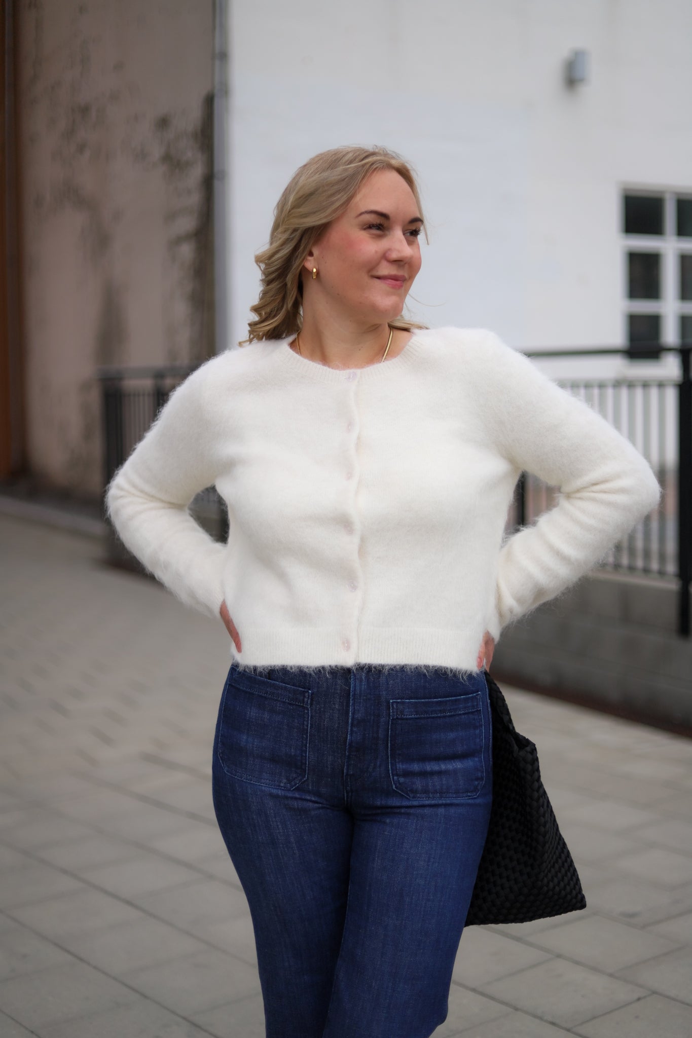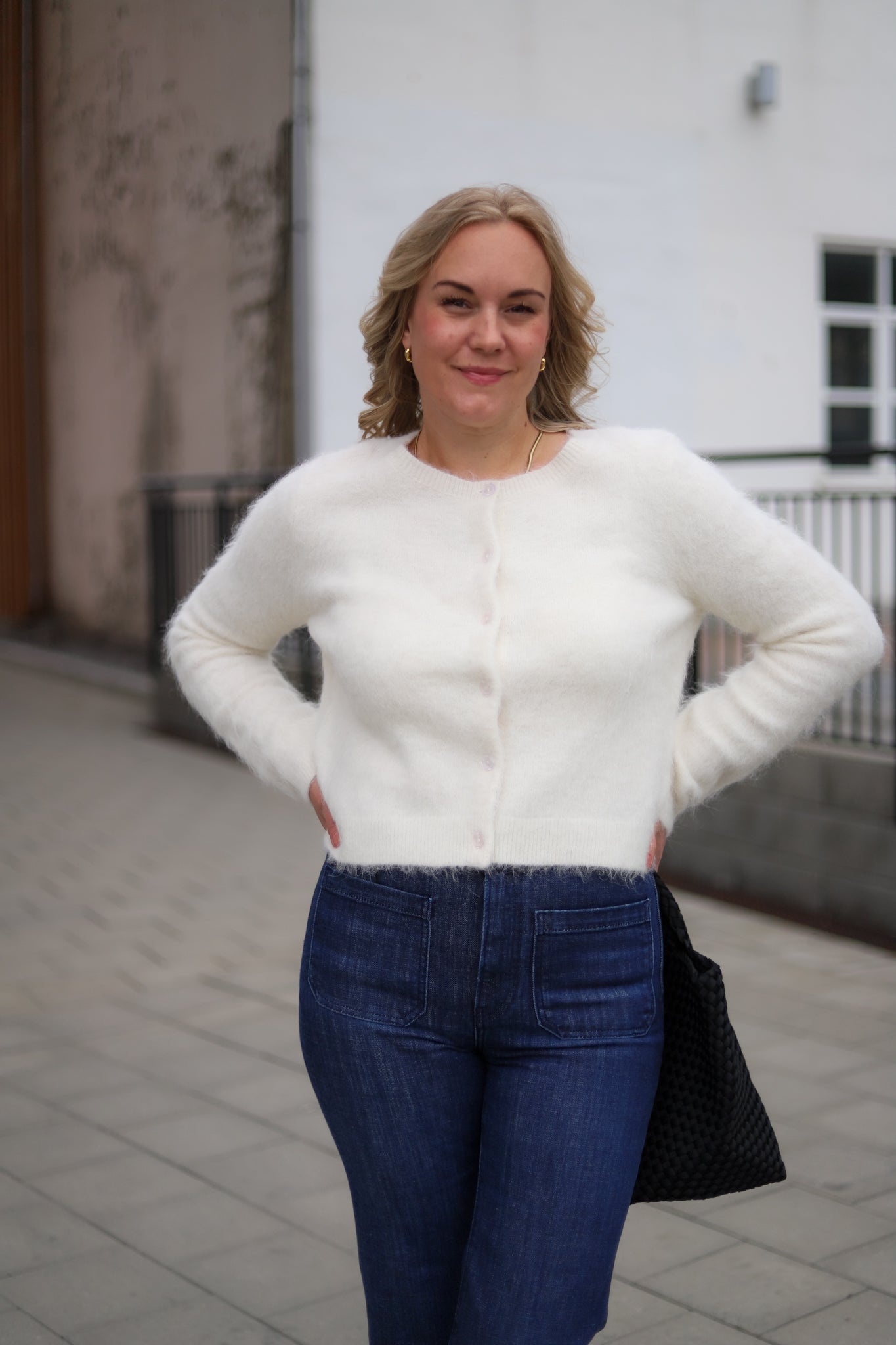 Delikat kremfarget cardigan fra Pia Tjelta. Modellen er rett med rund hals og lett croppet lengde. Lange ermer og ton-i-ton knappestolpe i front. Lett børstet kvalitet gir en feminin, eksklusiv look. Perfekt i basegarderoben.