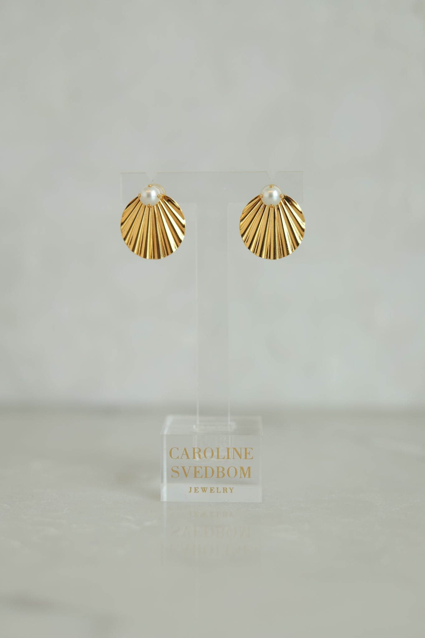 Milos er lekre studs utformet som et skjell i gullforgylt rhodium med en perle i toppen. Stift og bakside også i gullforgyllt rhodium.