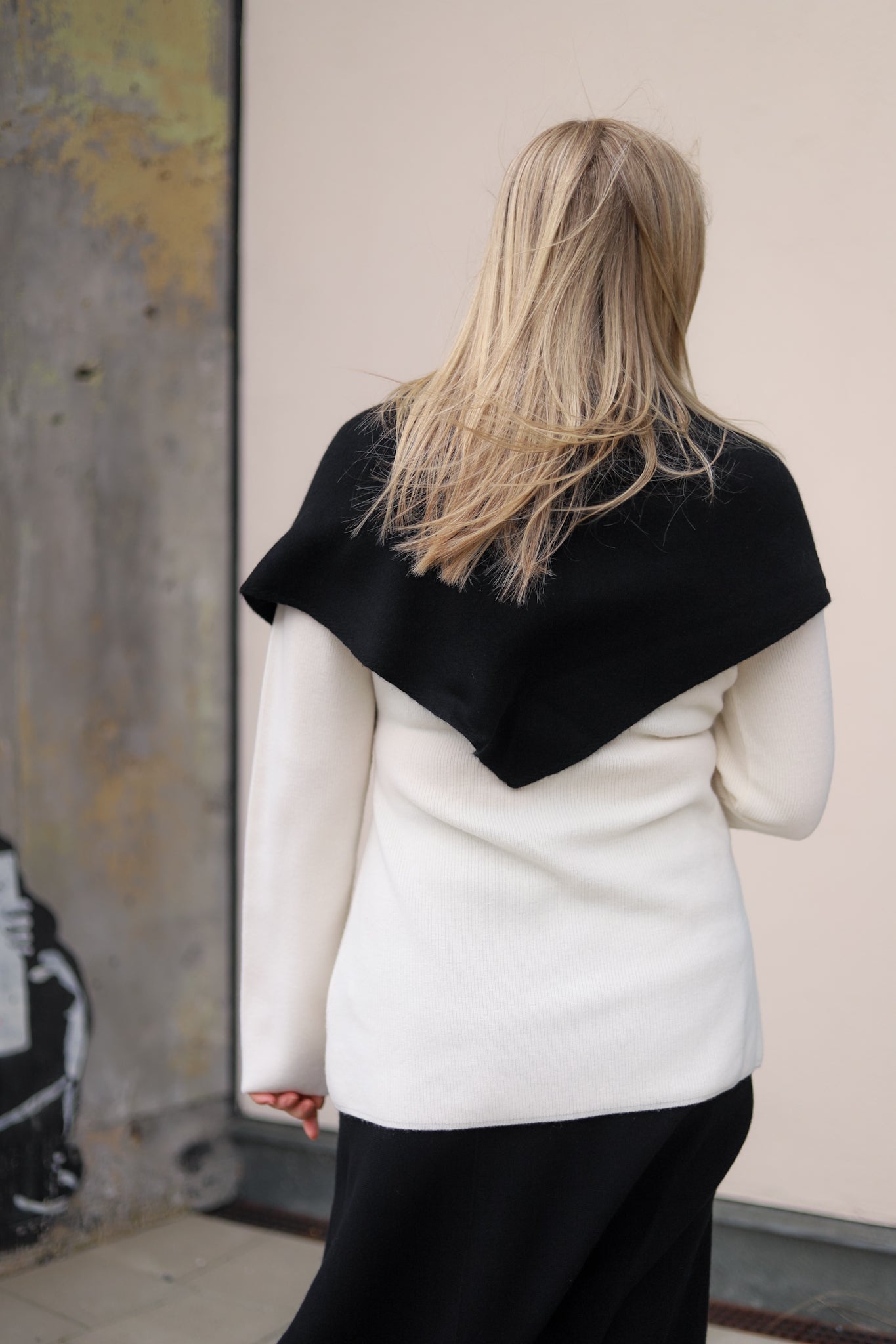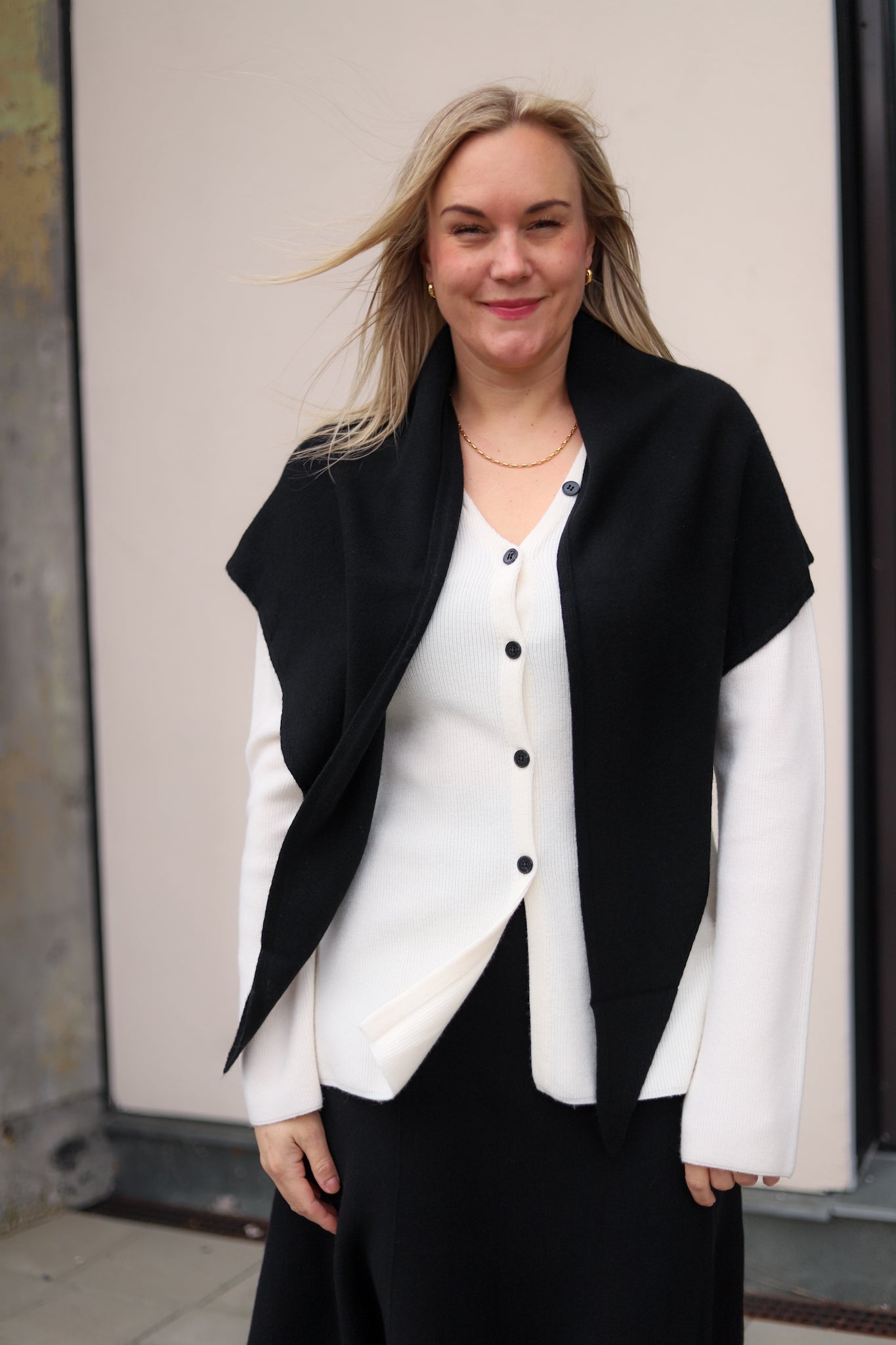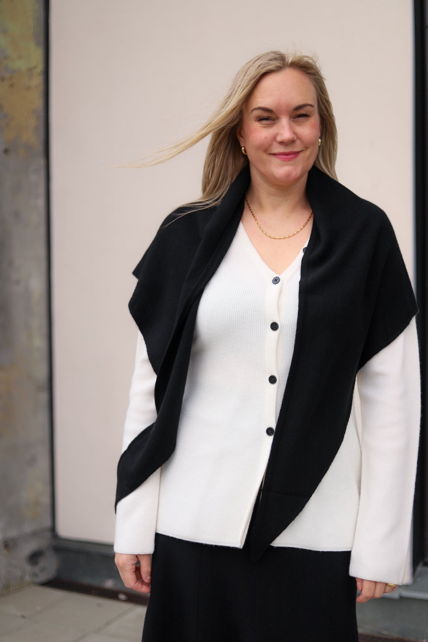 Deilig ullskjerf i klassisk sort. Ha det over skuldrene eller knyt det pent rundt halsen.