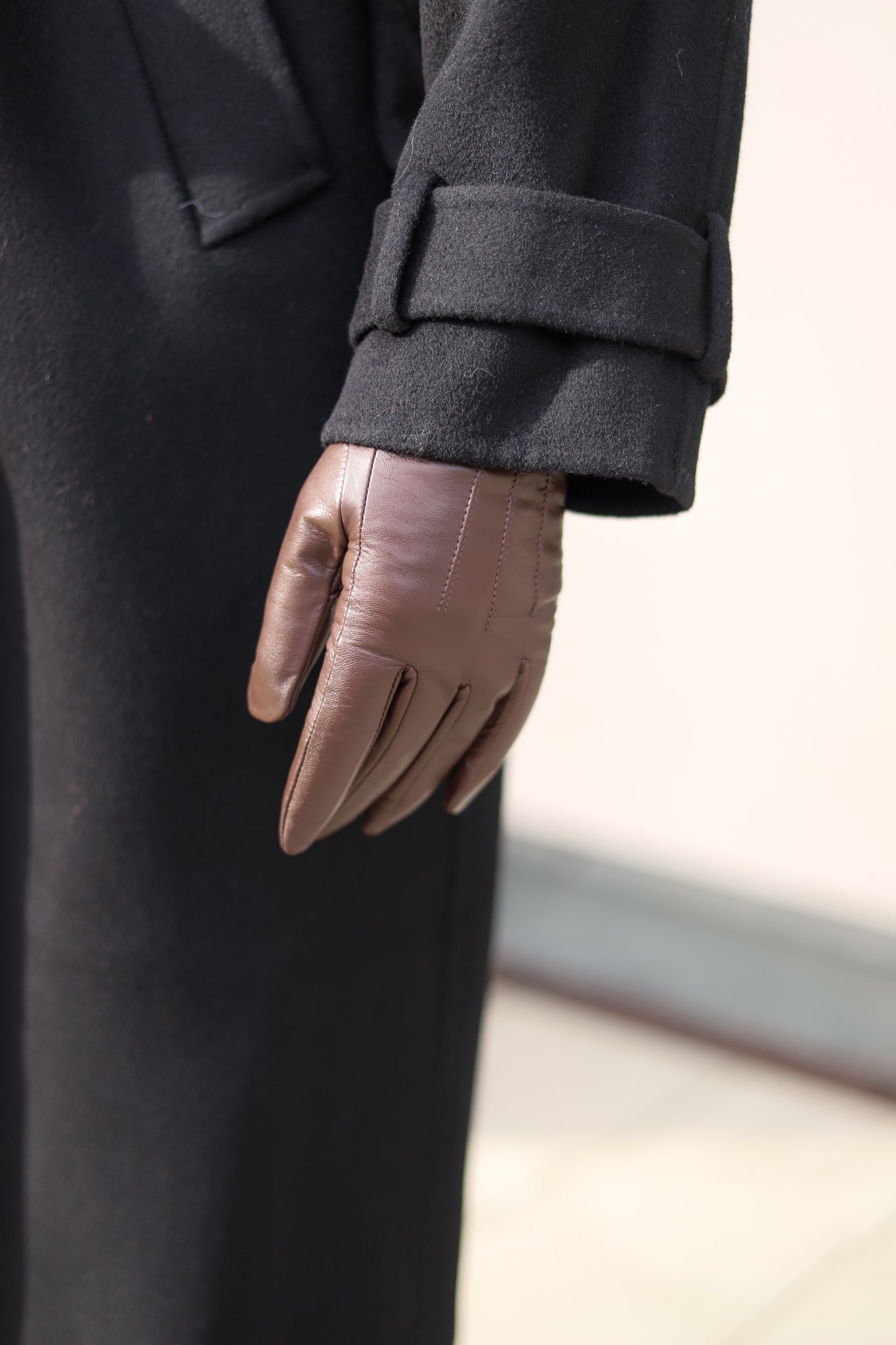 Flotte skinnhansker i mykt lammeskinn fra Christian Aks. Hanskene er i brunt skinn og er helfóret i myk ullblanding. Feminine hansker i behagelig myk kvalitet.