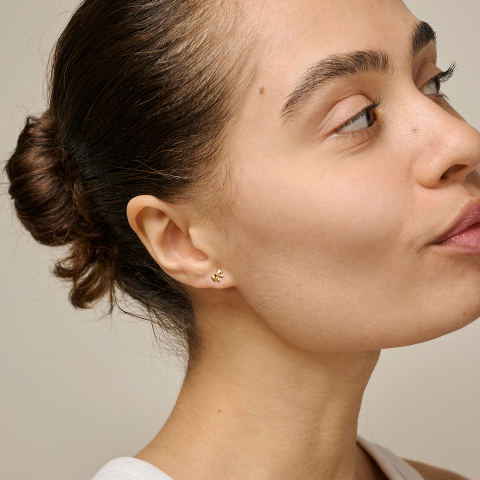 Søte studs fra Enamel formet som en liten sløyfe. Det delikate, detaljerte designet gir smykket en lekent og romantisk uttrykk. Det er perfekt som en del av en miks eller alene som en diskré, men sjarmerende look. En favoritt for både hverdagsbruk og spesielle anledninger.