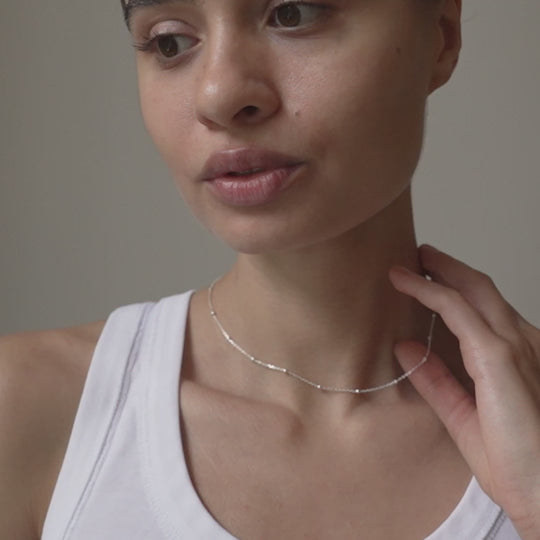 Elegant tynt kjede i sterlingsølv med små perler Enamel Copenhagen. Justerbar lengde. Lekkert alene eller i kombinasjon med andre smykker og matchende armbånd.