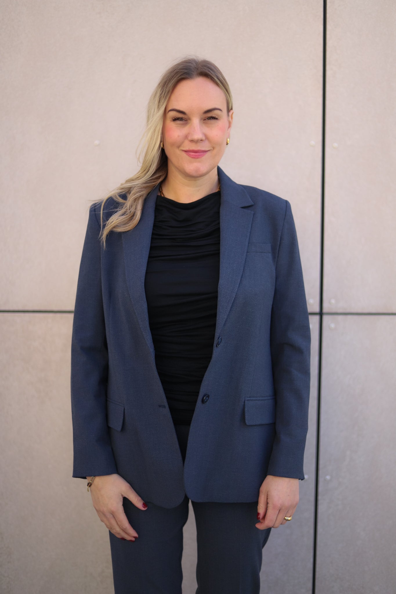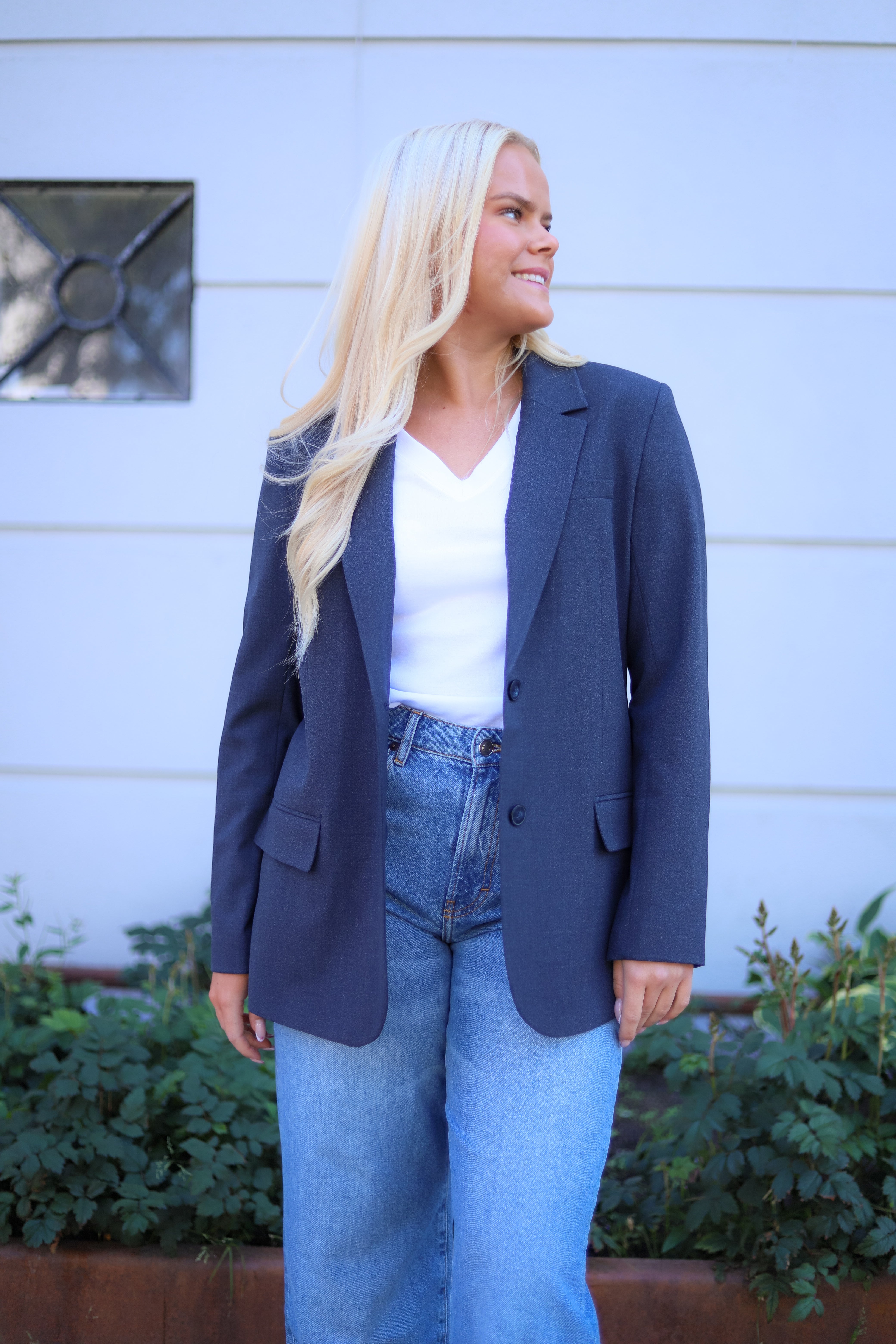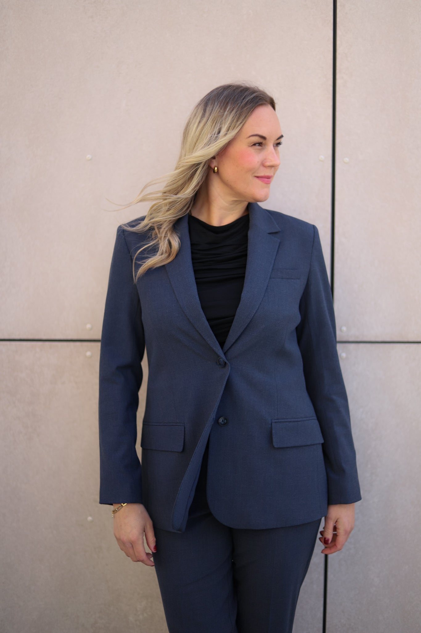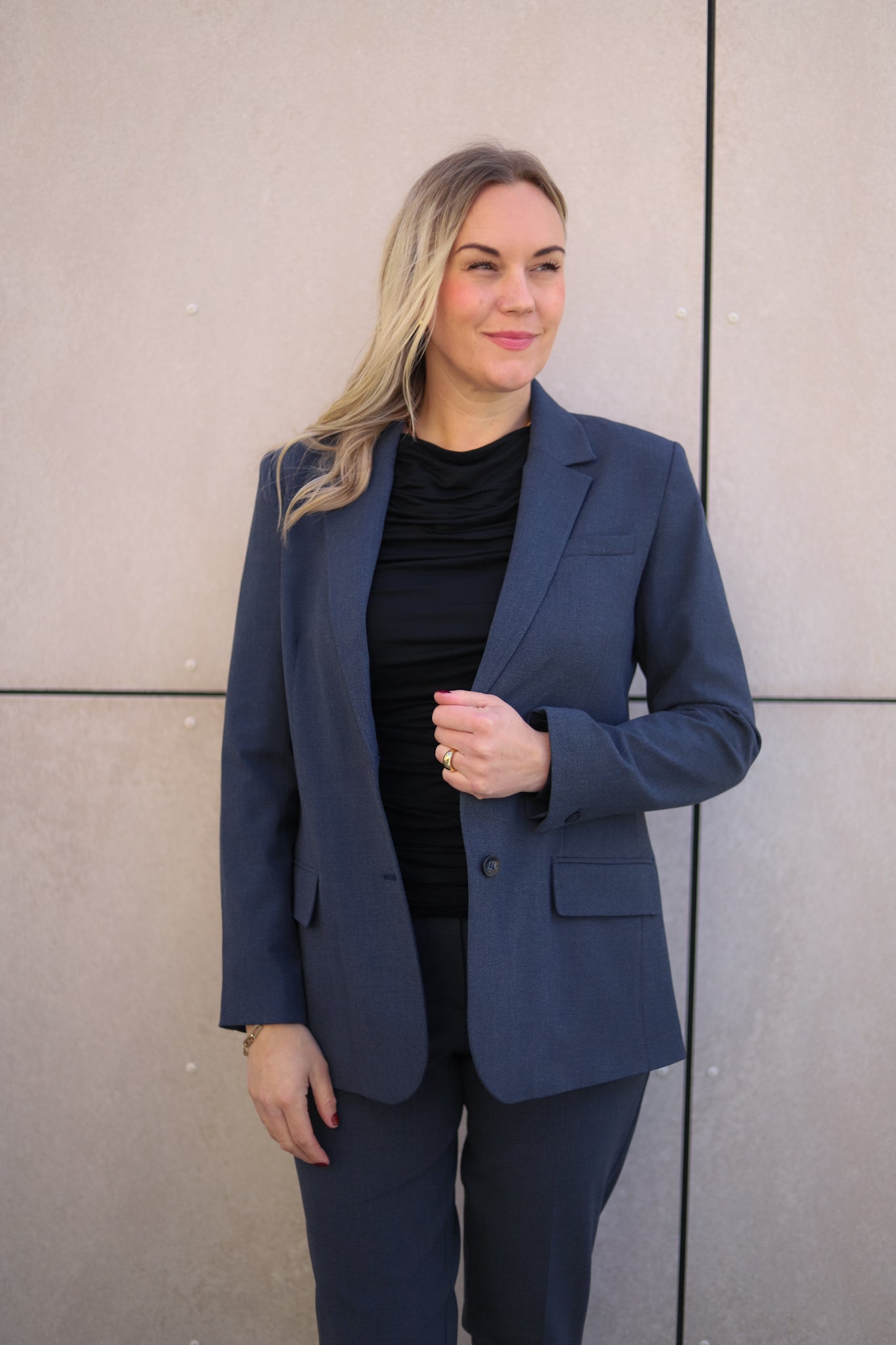 Dressjakke i en lekker blågrå farge fra FiveUnits. Modellen er rett med pen hoftelengde og splitt bak. Salg med hakk og knapper ton-i-ton i front. Patchlommer ved hoften, stikklomme på venstre bryst og liten innerlomme med knapp. Lange rette ermer med knepping i mansjett. En klassiker du vil ha glede av i mange år. Dette er den velkjente 285 kvaliteten som matcher perfekt til din favorittmodell fra samme merke!