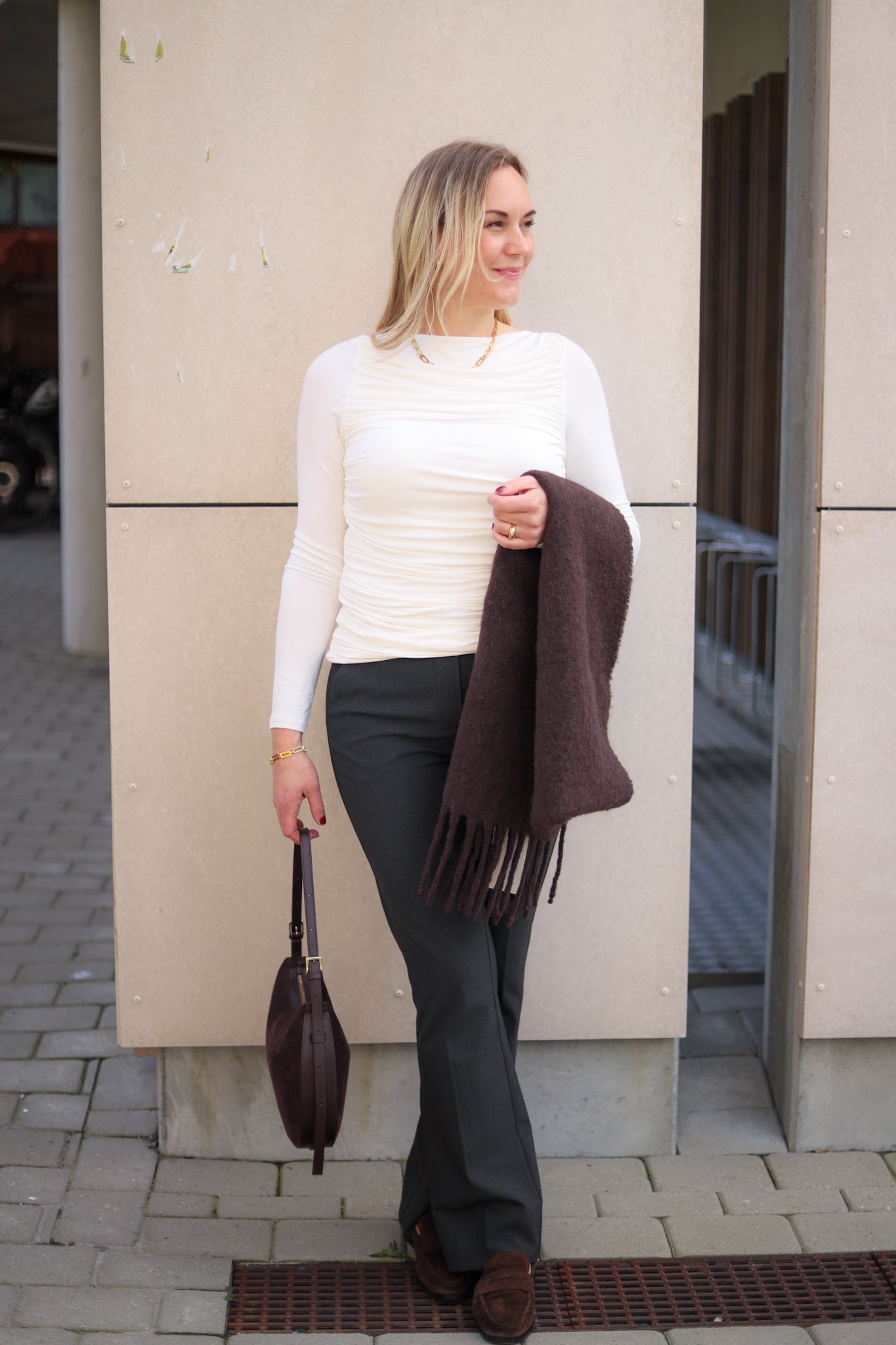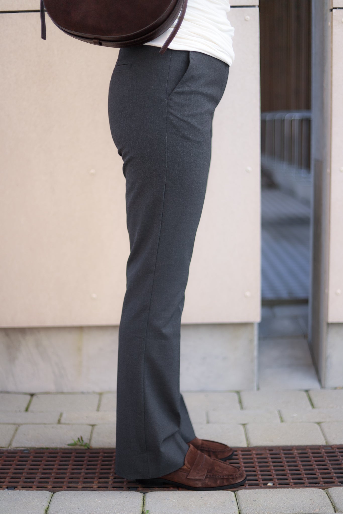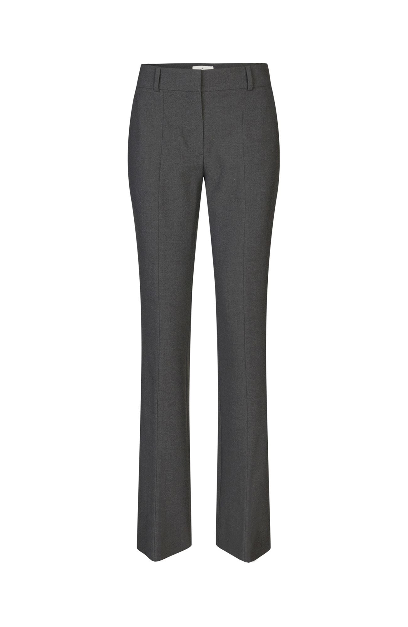 Den populære modellen Clara fra Five Units i melert mørk grå. Buksen har medium livhøyde og trendy flare i beina. Stretchy kvalitet som sitter nett over rumpe og lår med rette ben som har lett sleng. Buksen har linning med beltehemper og lukkes med skjult hempe og glidelås. Skrålommer i front og en pyntelomme bak. En garderobevinner og helårsfavoritt. Som er like elegant til hæler som den er kul til sneakers.