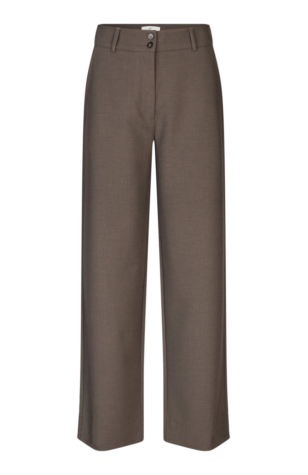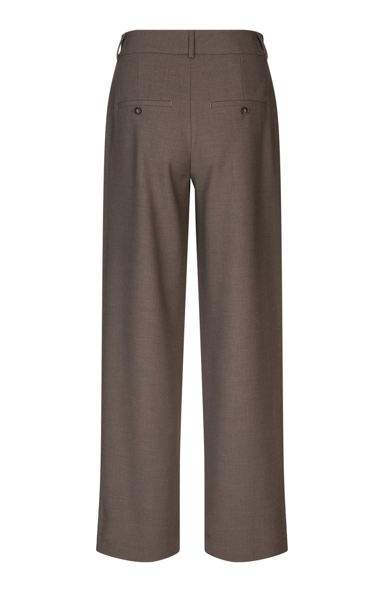 Sophia er en favorittmodell fra Five Units, her i melert brunfarge med pen struktur. En elegant dressbukse med høyt liv og vide rette ben. Fine detaljer med bred linning, med to knapper. Skrålommer i front og pyntelommer bak. Klassiske detaljer med gylf med skjult glidelås og beltehemper. En formell dressbukse som passer alle anledninger!