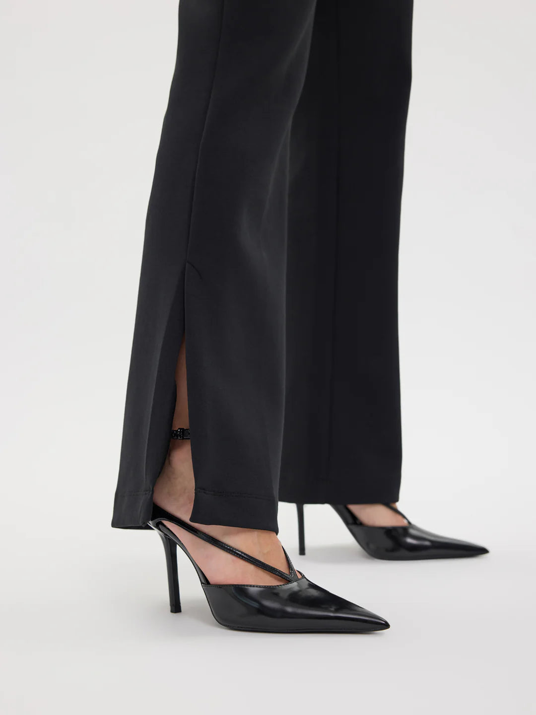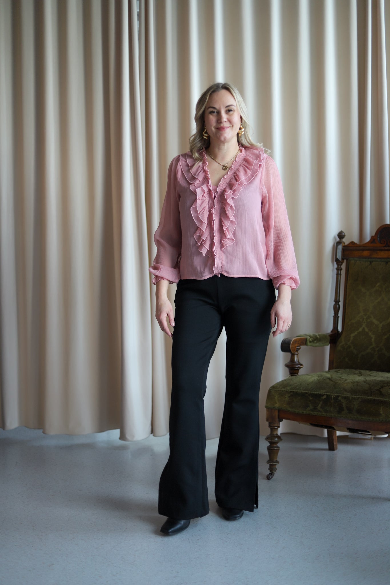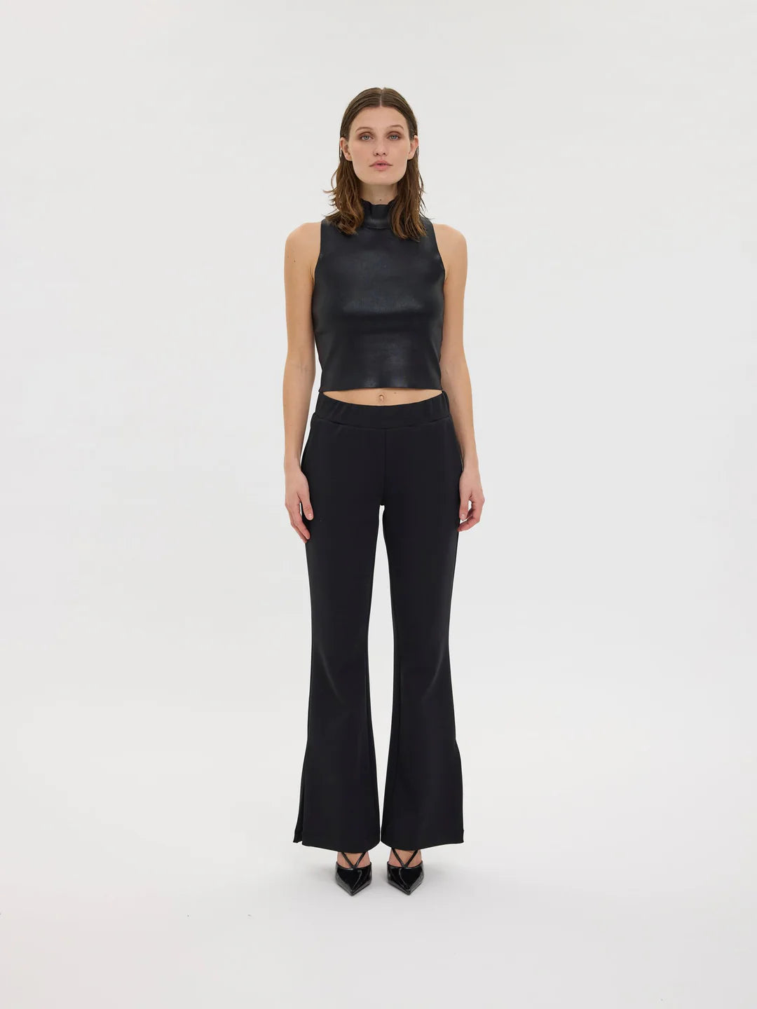 Nicole pant fra FiveUnits har trendy flare og kommer i deilig myk og stretchy bomullsjersey. Modellen har medium livhøyde og linning med behagelig strikk. Skrålommer i front og pyntelommer bak. Flatterende silhuette med elegant sleng og splitt i sidene. En chic og comfy bukse, her i tidløs sort.