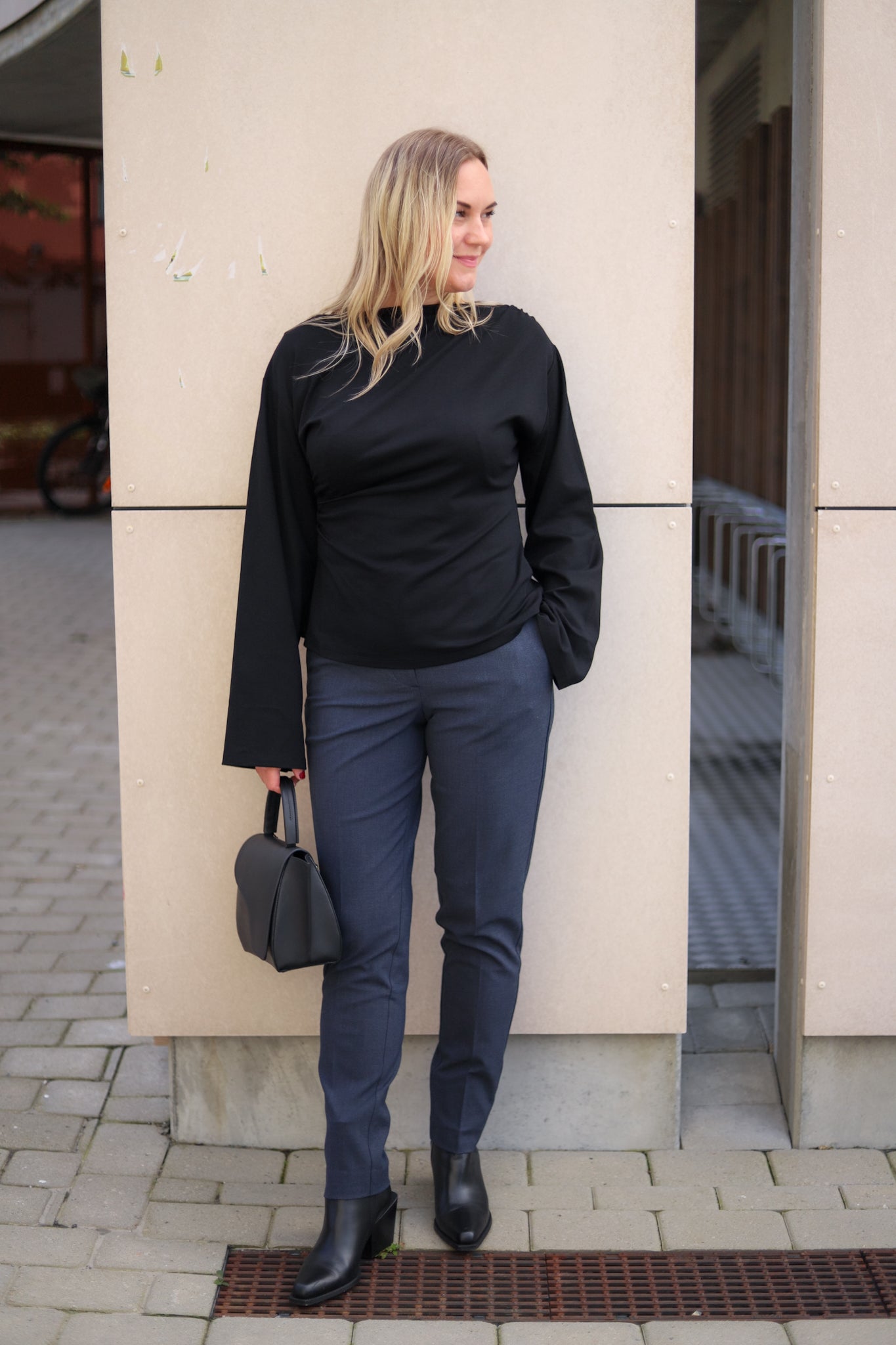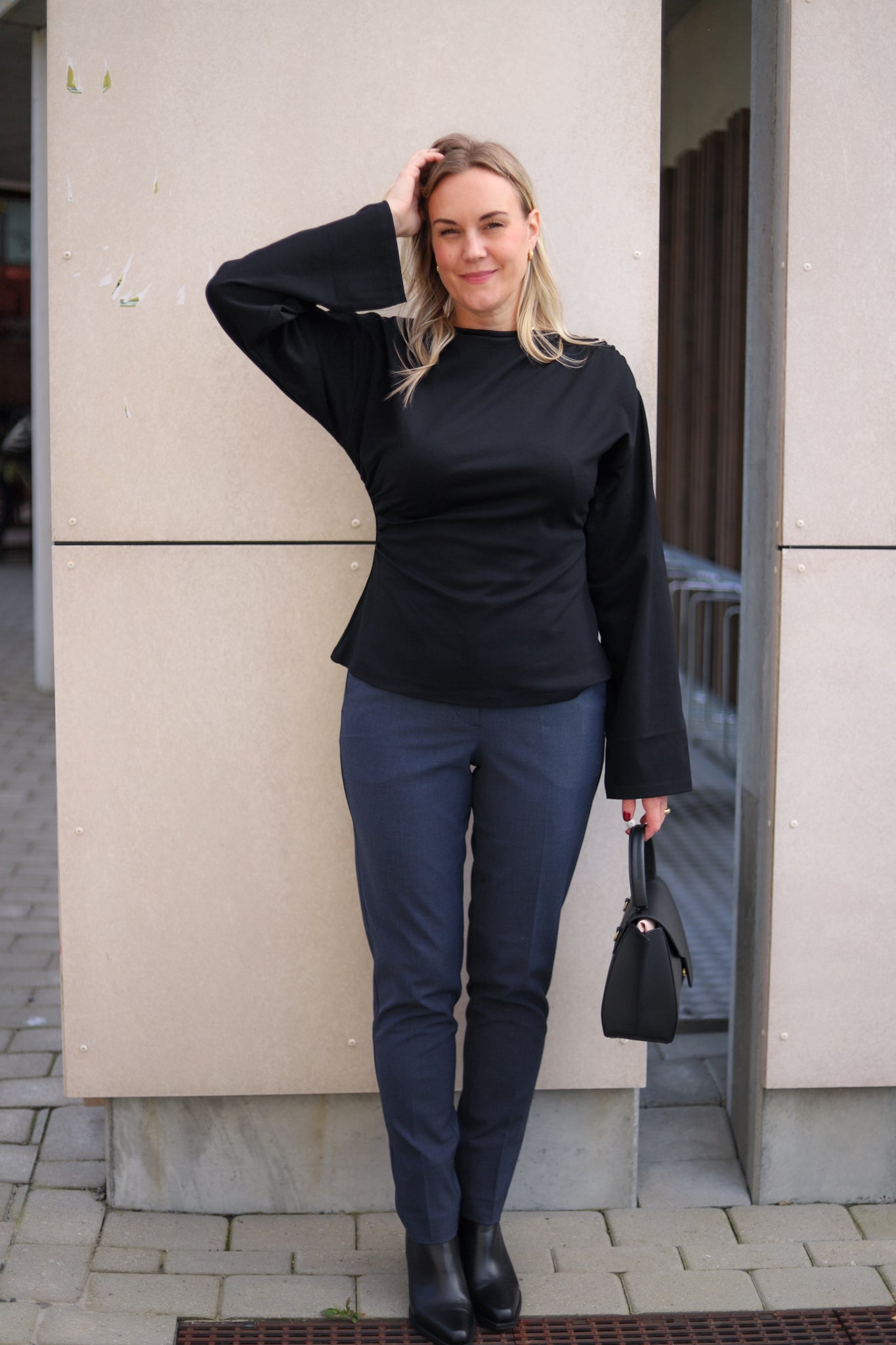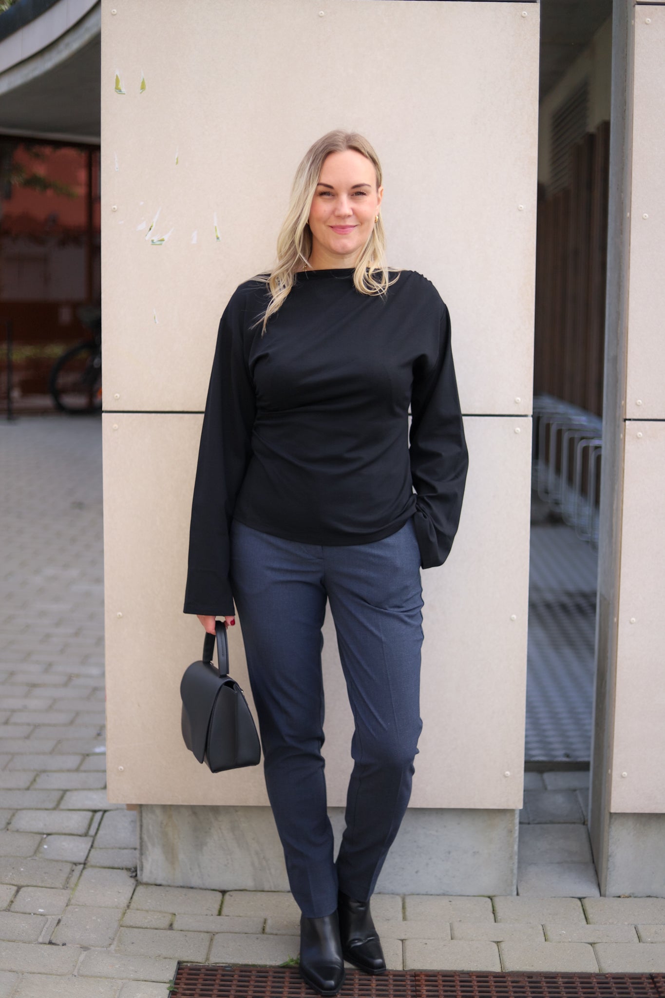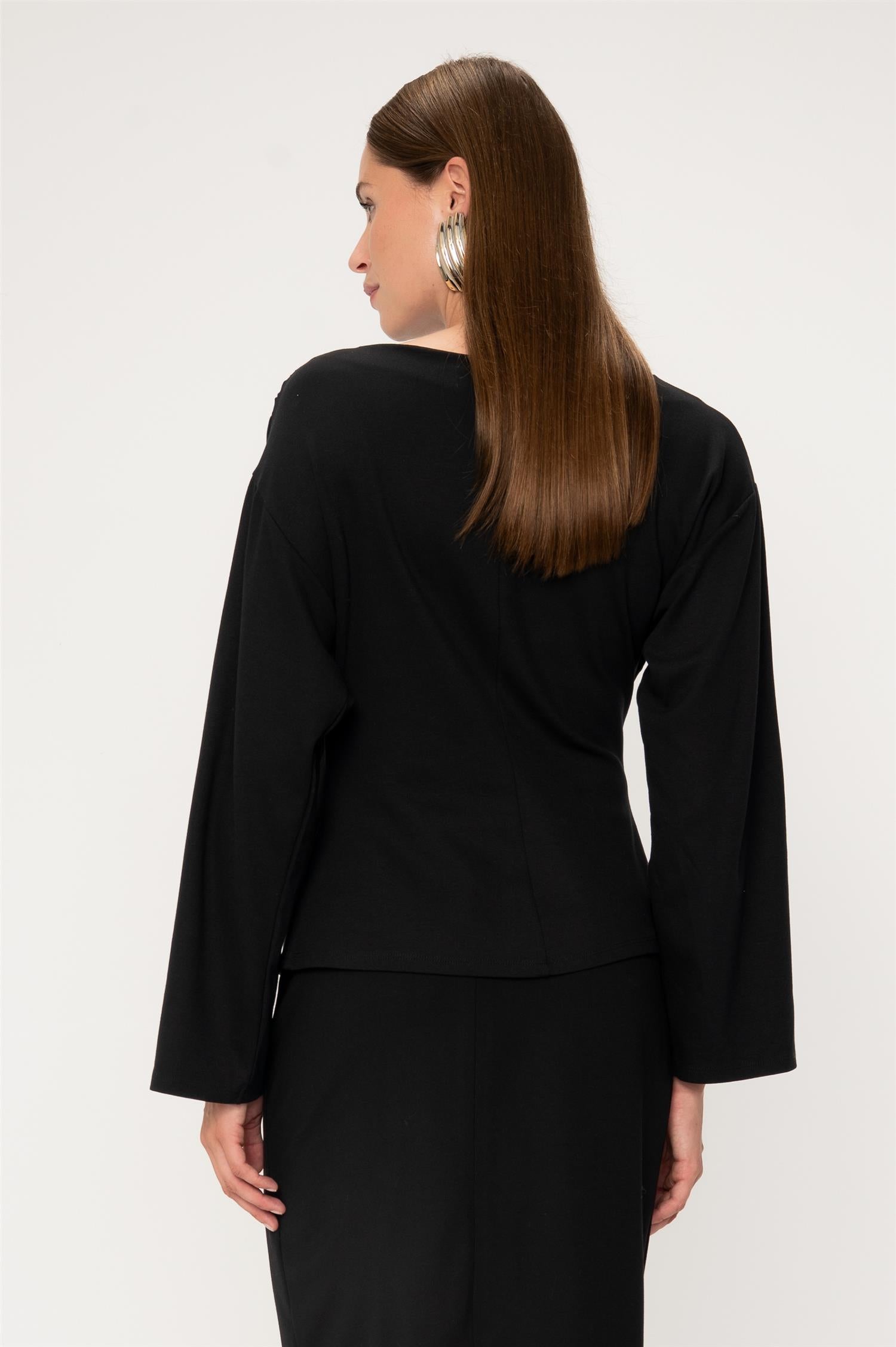 Tidløs topp i klassisk sort fra Viveh. Med en elegant båthals og vide ermer løfter denne toppen basegarderoben med sofistikerte designdetaljer. Elegant silhuett fremhevet med subtile draperinger over brystet for en flatterende effekt. Toppen er laget av et tykt viskose-blandet jerseystoff som gir både komfort og struktur. En søm midt bak gir et skreddersydd preg for en raffinert passform. En tidløs klassiker med lekre detaljer! Style toppen med matchende skjørt for komplett look.