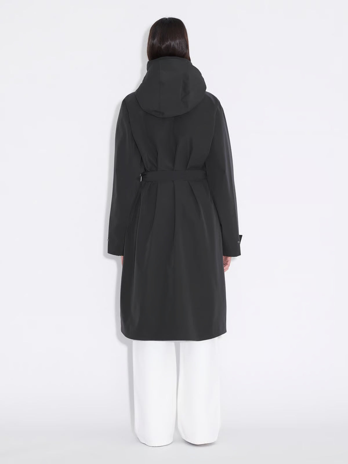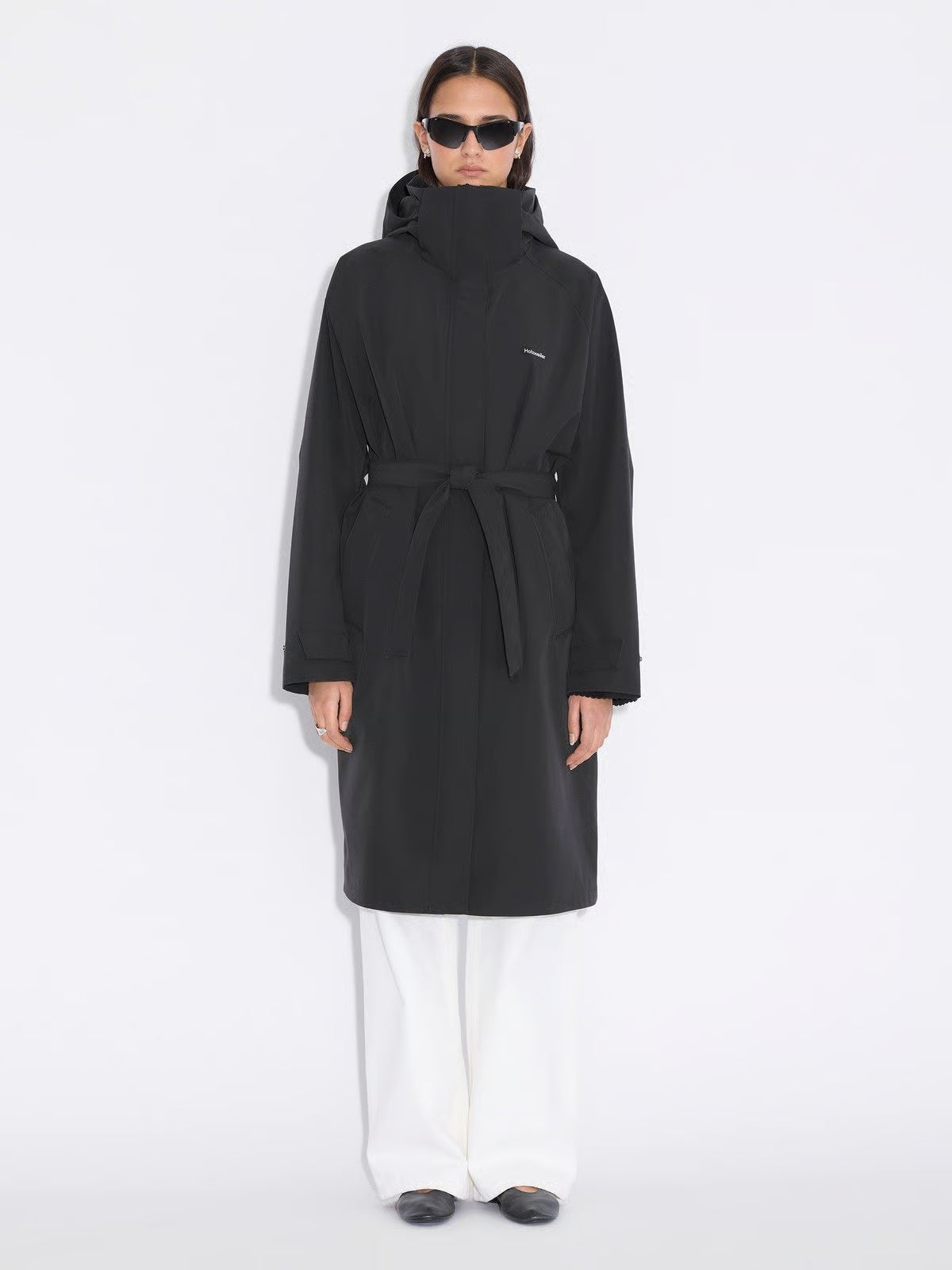 Flow er en teknisk god og allsidig jakke fra Holzweiler. Her i klassisk sort. Jakken har oversized passform med lenge til knærne og løst knytebelte til å justere livet. Myk og stødig kvalitet som er vindtett, pustende og har 10.000 i vannsøyle. Den har praktiske detaljer med skrålommer i hoftehøyde med zip, en innerlomme og  justerbare mansjetter. Høy hals og en stor hette som kan skjules i kragen. Fronten har to-veis zip og stormklaff med trykknapper. Den perfekte urbane jakke til all slags vær!