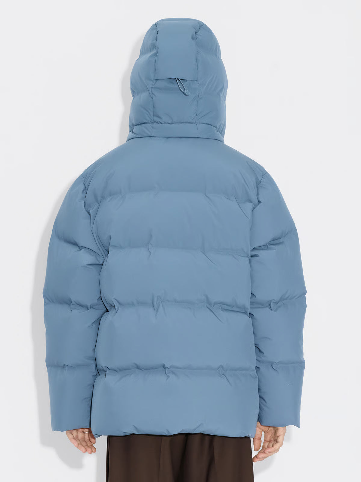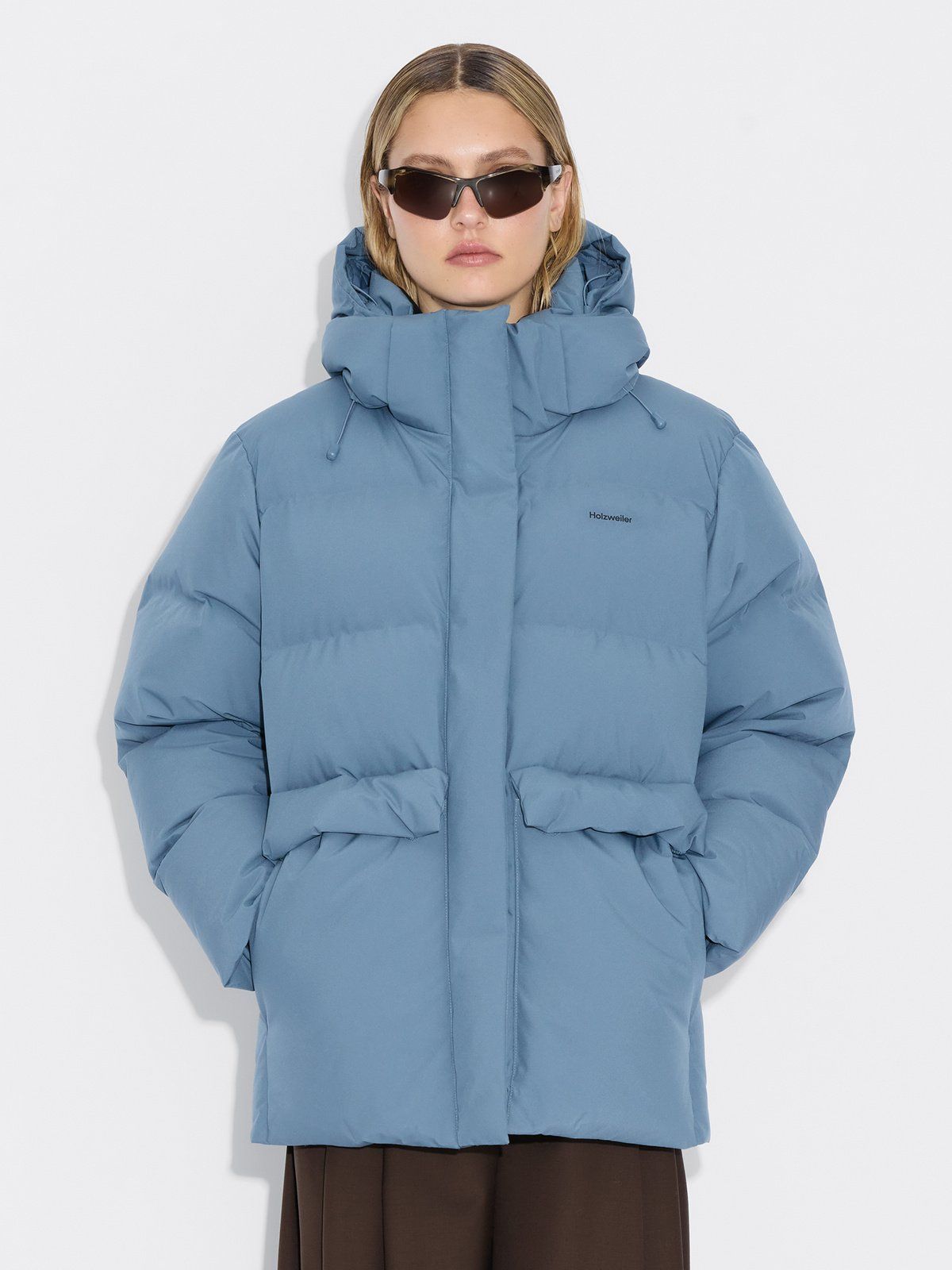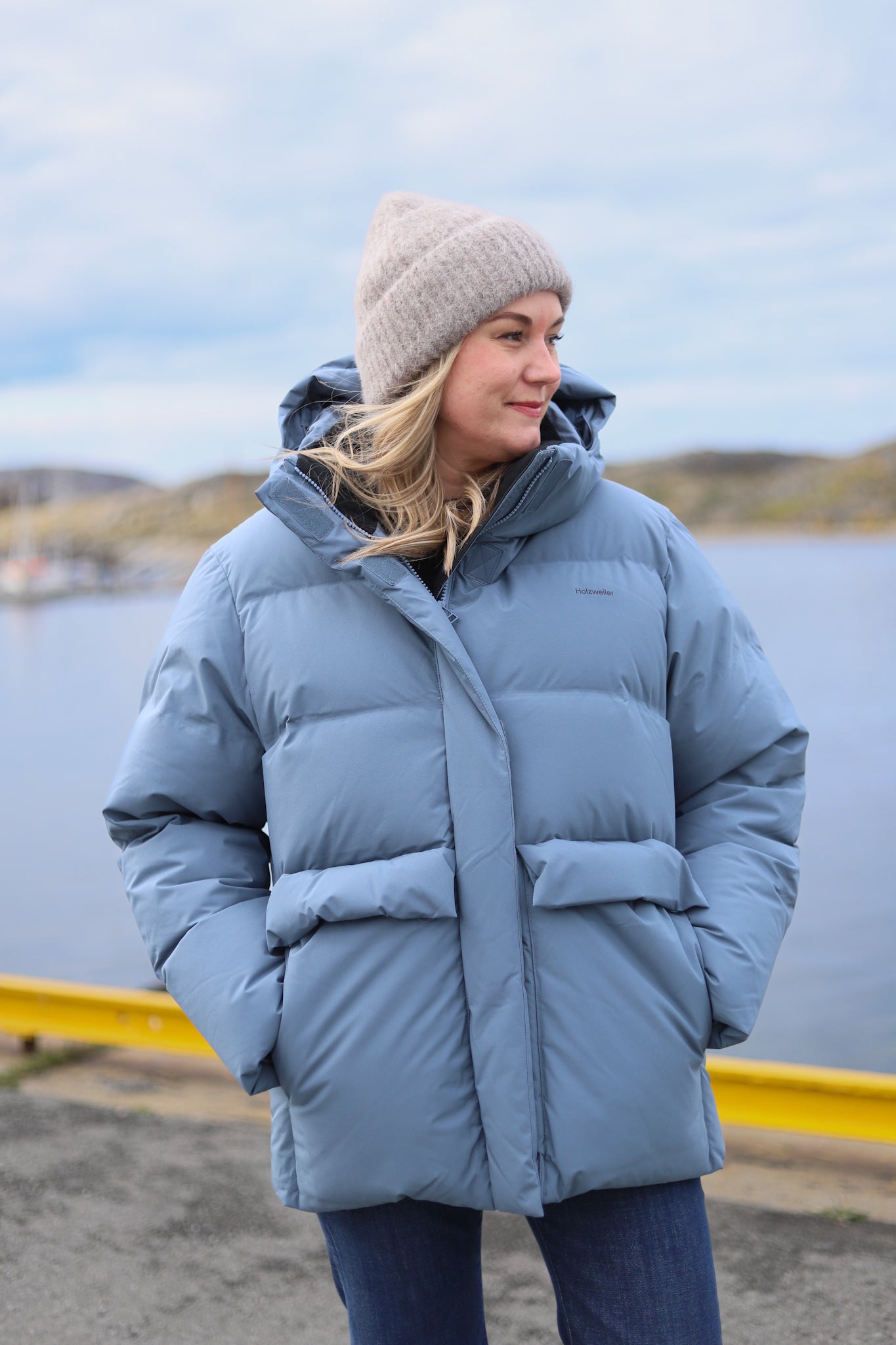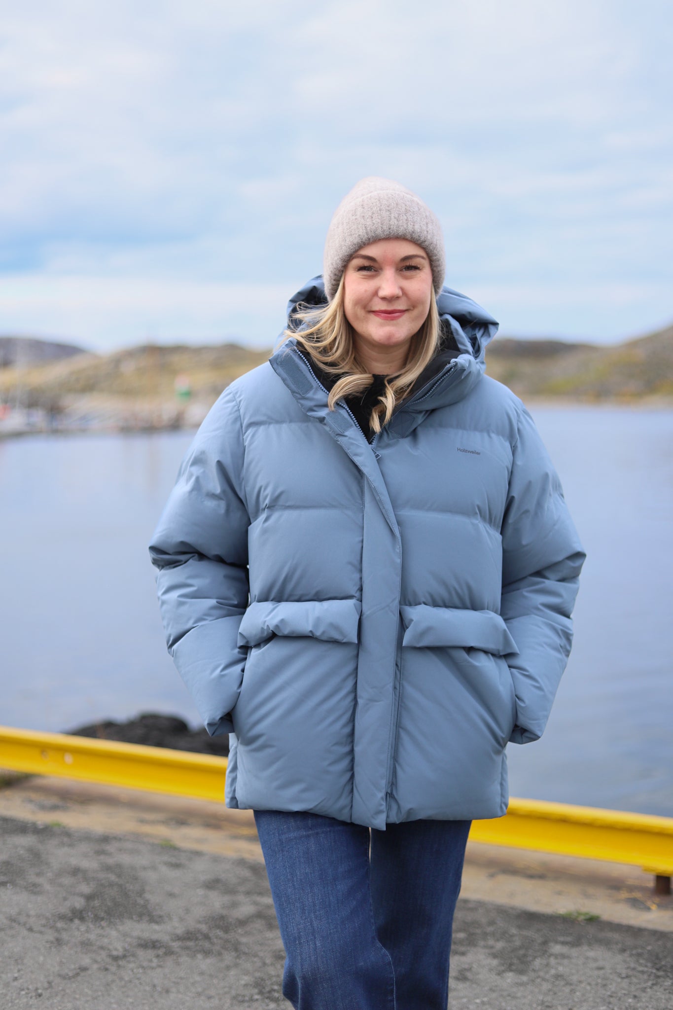 Bestselgeren Besseggen fra Holzweiler i en ny blå farge. Fluffy og oversized jakke som er lett i vekt, quiltet i brede kanaler. Fylt med ypperste dunblanding 80/20. Modellen er rett med pen lengde rett nedenfor baken. Jakken har avtagbar hette og stikklommer med klaff i hoftehøyde. Lukkning med med glidelås og stormklaff med borrelås i front. En teknisk god jakke som er vindtett og har 10.000mm i vannsøyle, overflaten har en hydrofil membran som gjør den vannavstøtende. Jakken varmer helt ned i -15 grader.