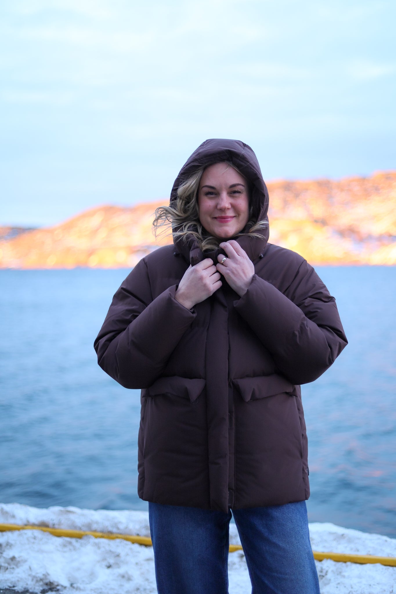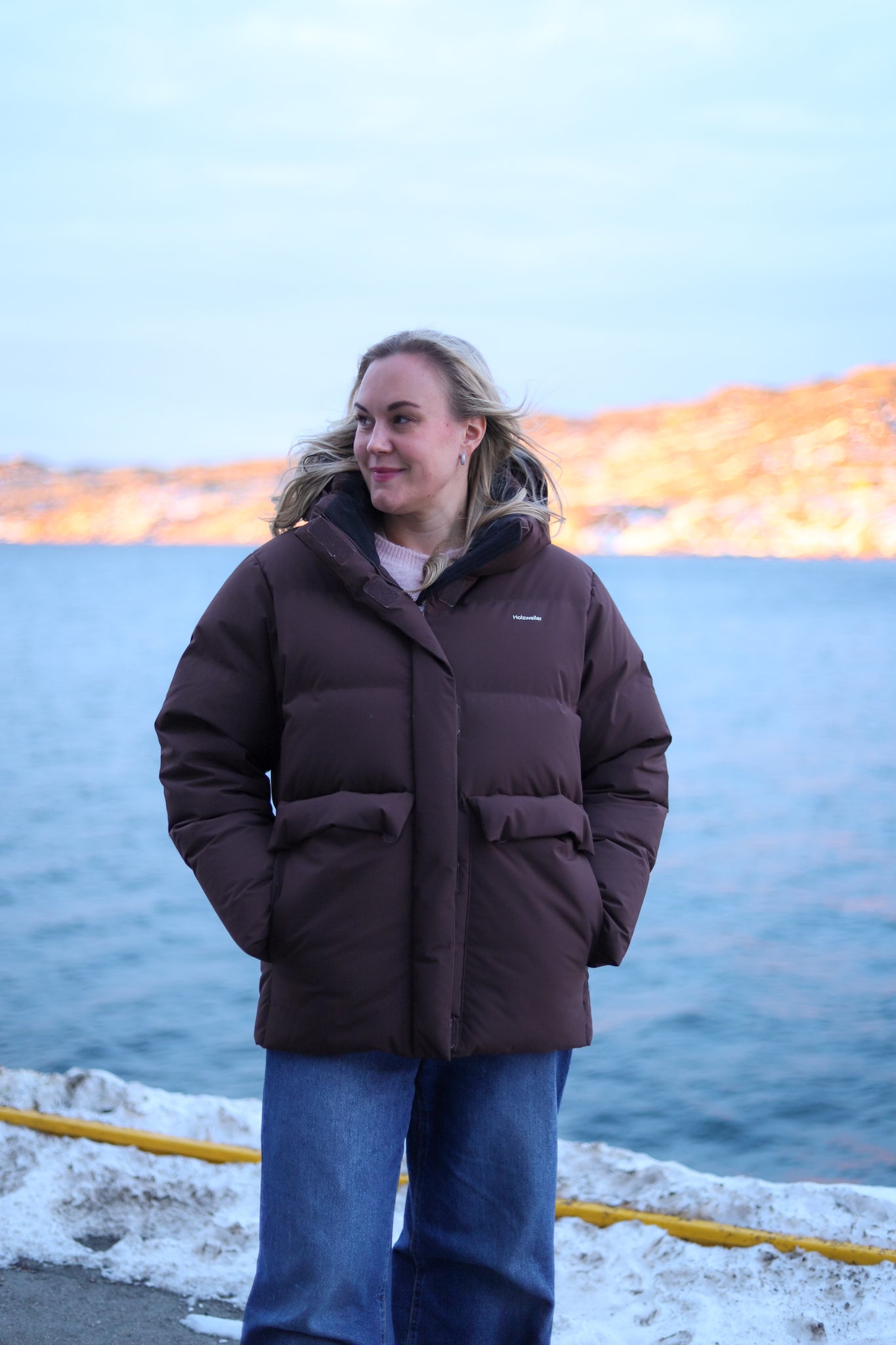 Bestselgeren Besseggen fra Holzweiler i mørk brun. Fluffy og oversized jakke som er lett i vekt, quiltet i brede kanaler. Fylt med ypperste dunblanding 80/20. Modellen er rett med pen lengde rett nedenfor baken. Jakken har avtagbar hette og stikklommer med klaff i hoftehøyde. Lukkning med med glidelås og stormklaff med borrelås i front. En teknisk god jakke som er vindtett og har 10.000mm i vannsøyle, overflaten har en hydrofil membran som gjør den vannavstøtende. Jakken varmer helt ned i -15 grader.