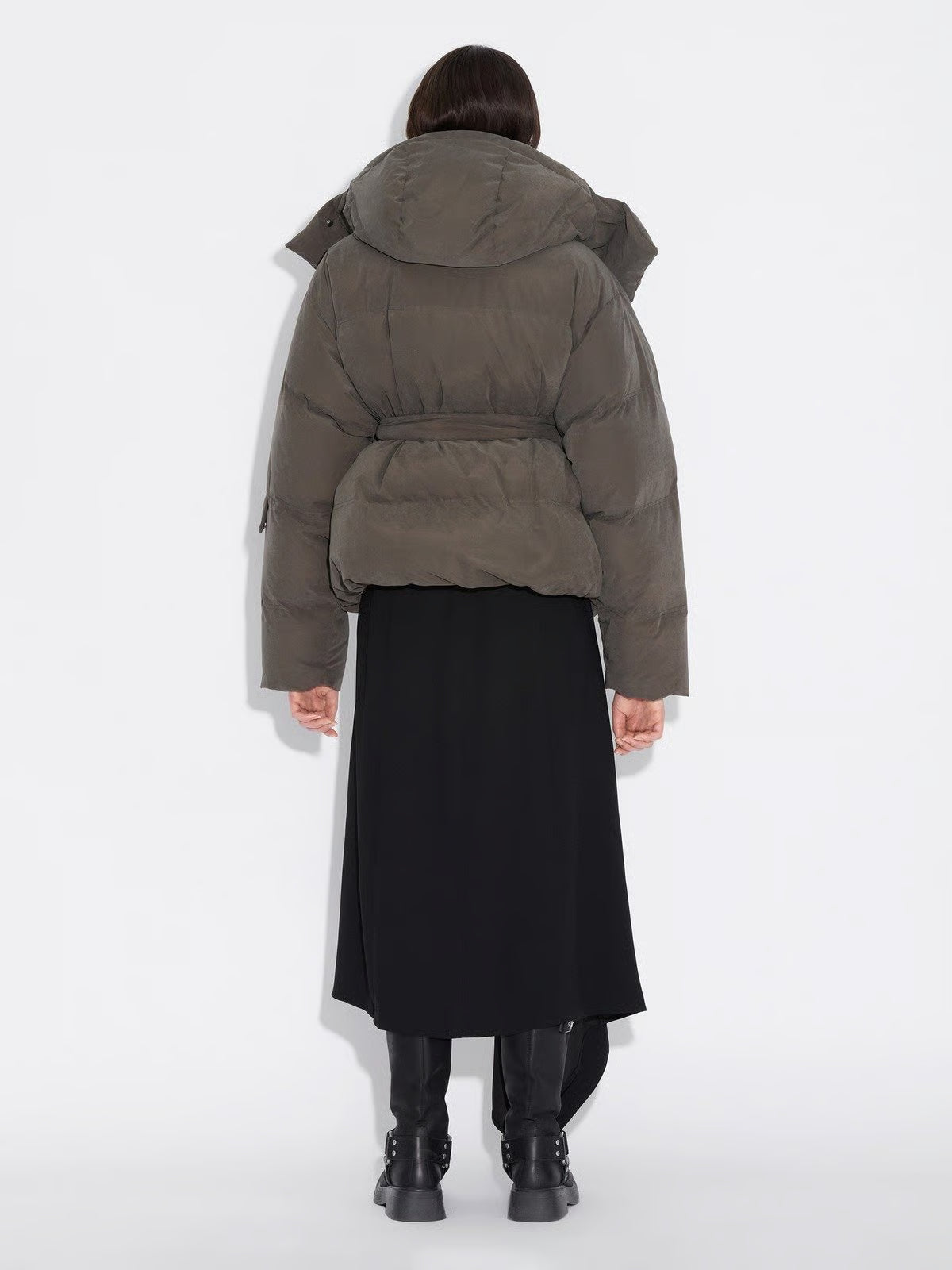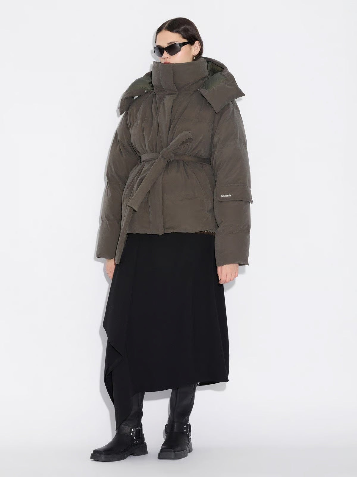 IT-jakken Steilia i dyp grønn farge fra Holzweiler. Modellen er boxy og oversized med belte i livet for en mer feminin passform. Den har kort passform og justerbar elastikk i hem. Fluffy og lett i vekt, quiltet i brede kanaler. Fylt med ypperste dunblanding 80/20. Jakken har avtagbar hette, behagelige skrålommer i front og en lomme på venstre erm. Lukkning med med glidelås og stormklaff med trykknapper i front. Laget i en tøff børstet kvalitet som er vannavstøtende.