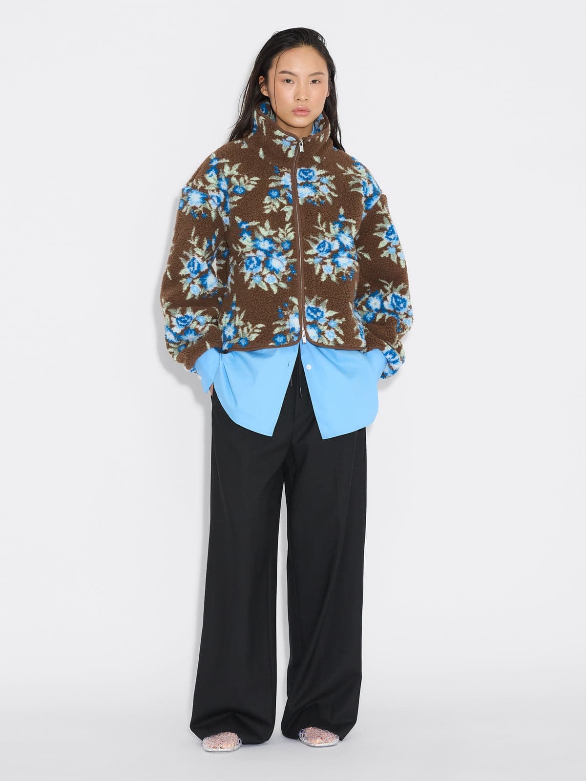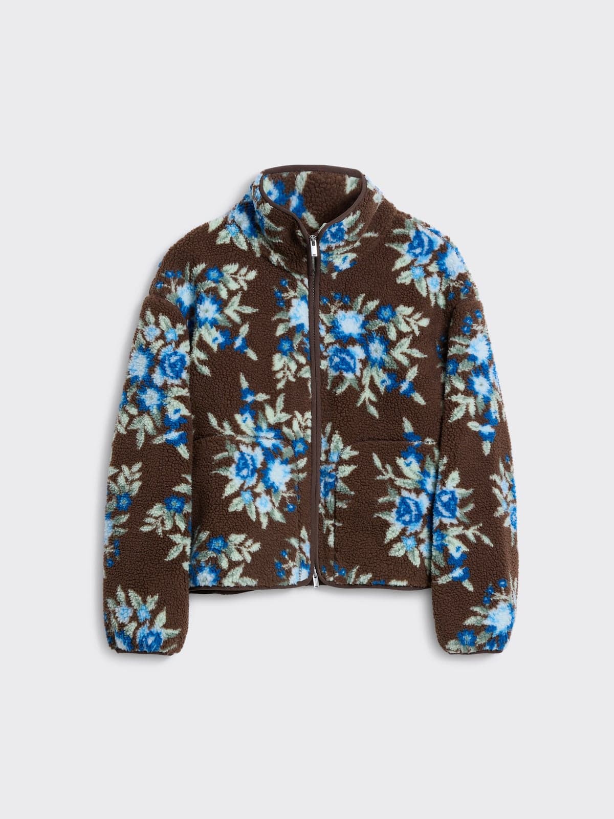 Favoritten Rype fleece fra Holzweiler er tilbake! Her med blå bunn og blomsterprint i gule toner. Rett modell med høy hals, glidelås i front og lange ermer. Boxy passform med croppet lengde og lommer i siden. Kul jakke med avslappet look.