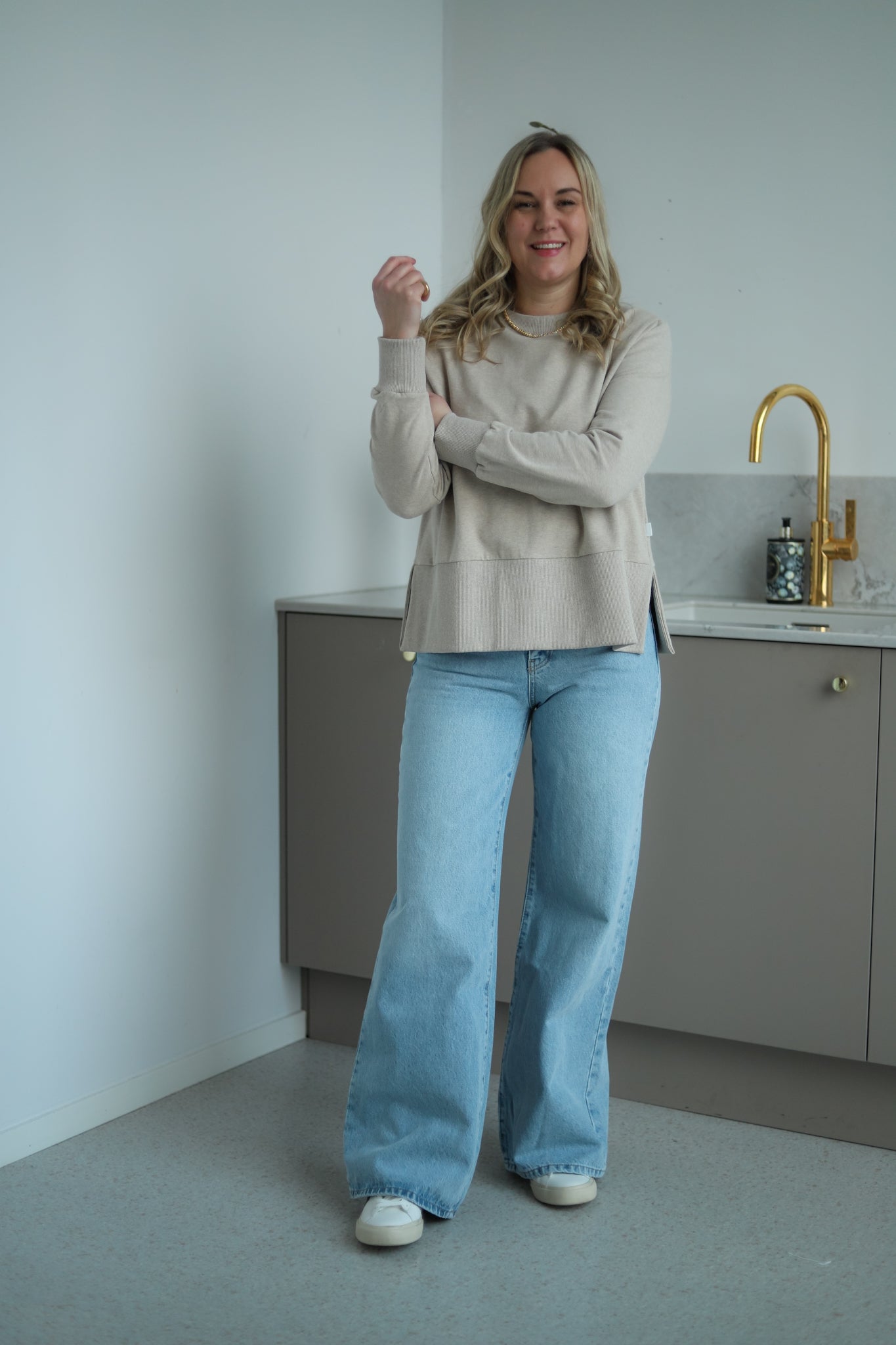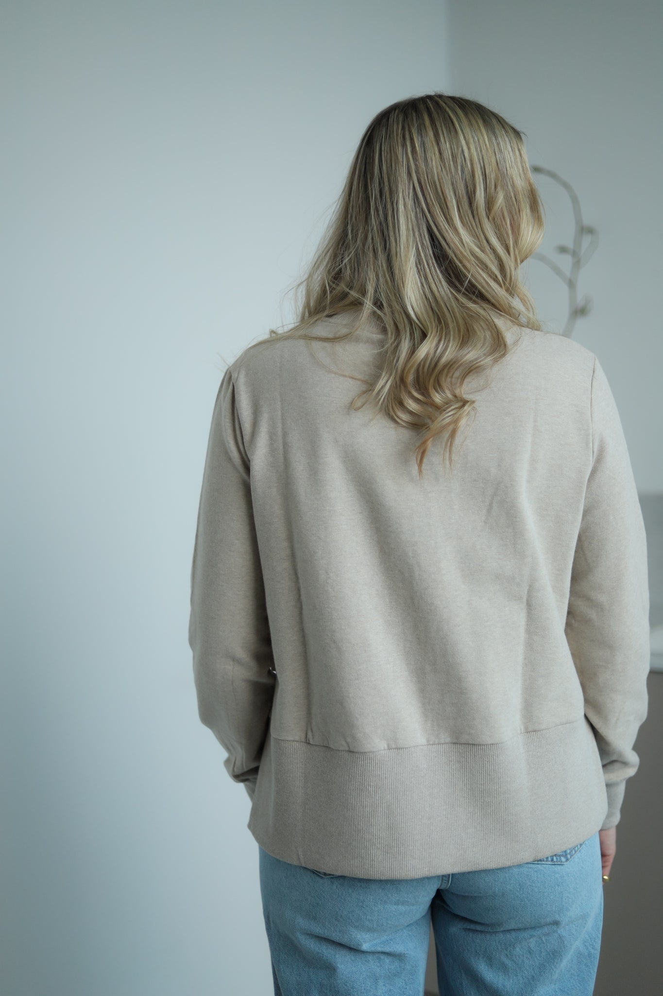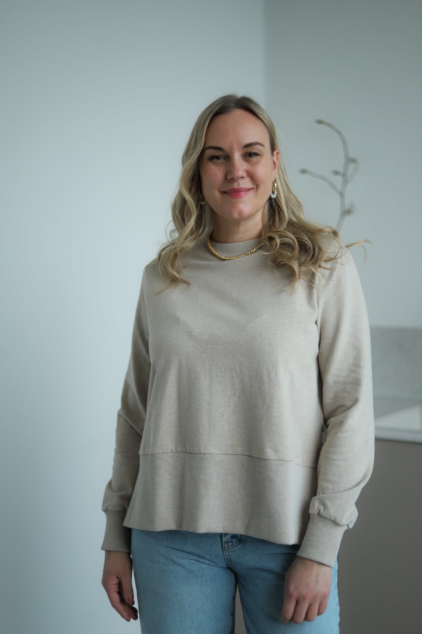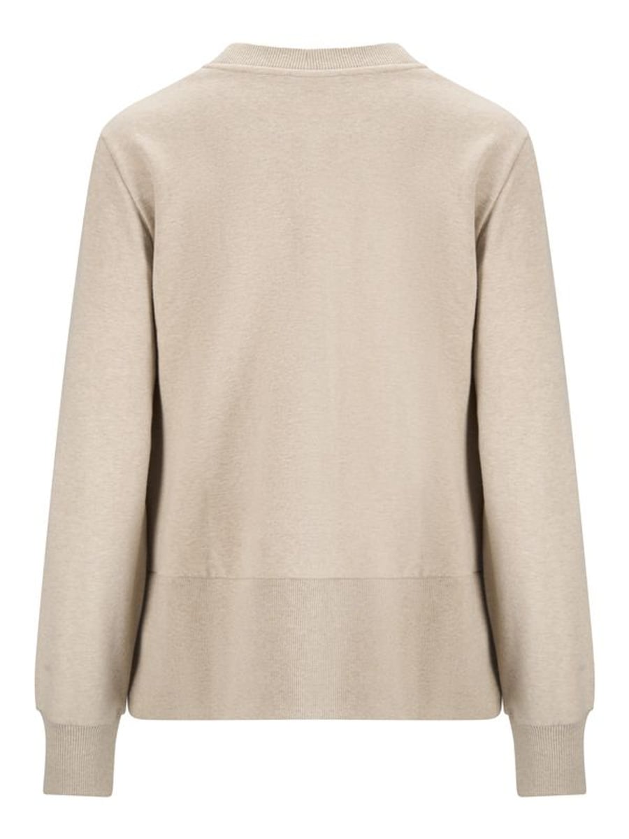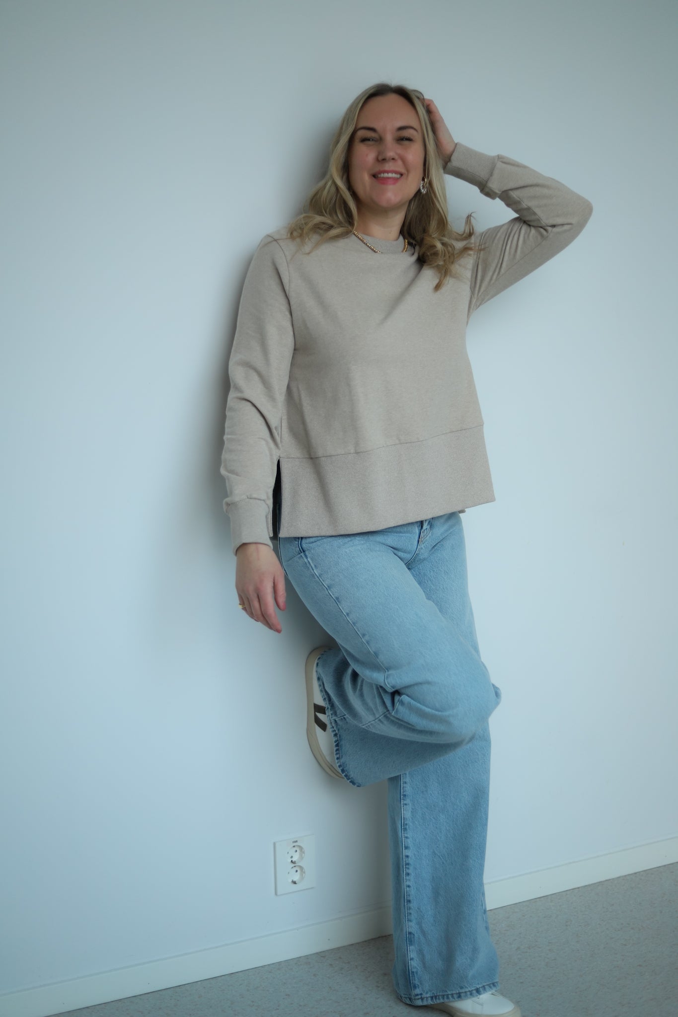 Herlig Sweat i melert beige fra Ella&il. Modellen er rett med rund hals og lange ermer med lett droppet skulder. Ribbestrikk i hals, hem og mansjett. Laget av økologisk bomull og har en myk overflate.