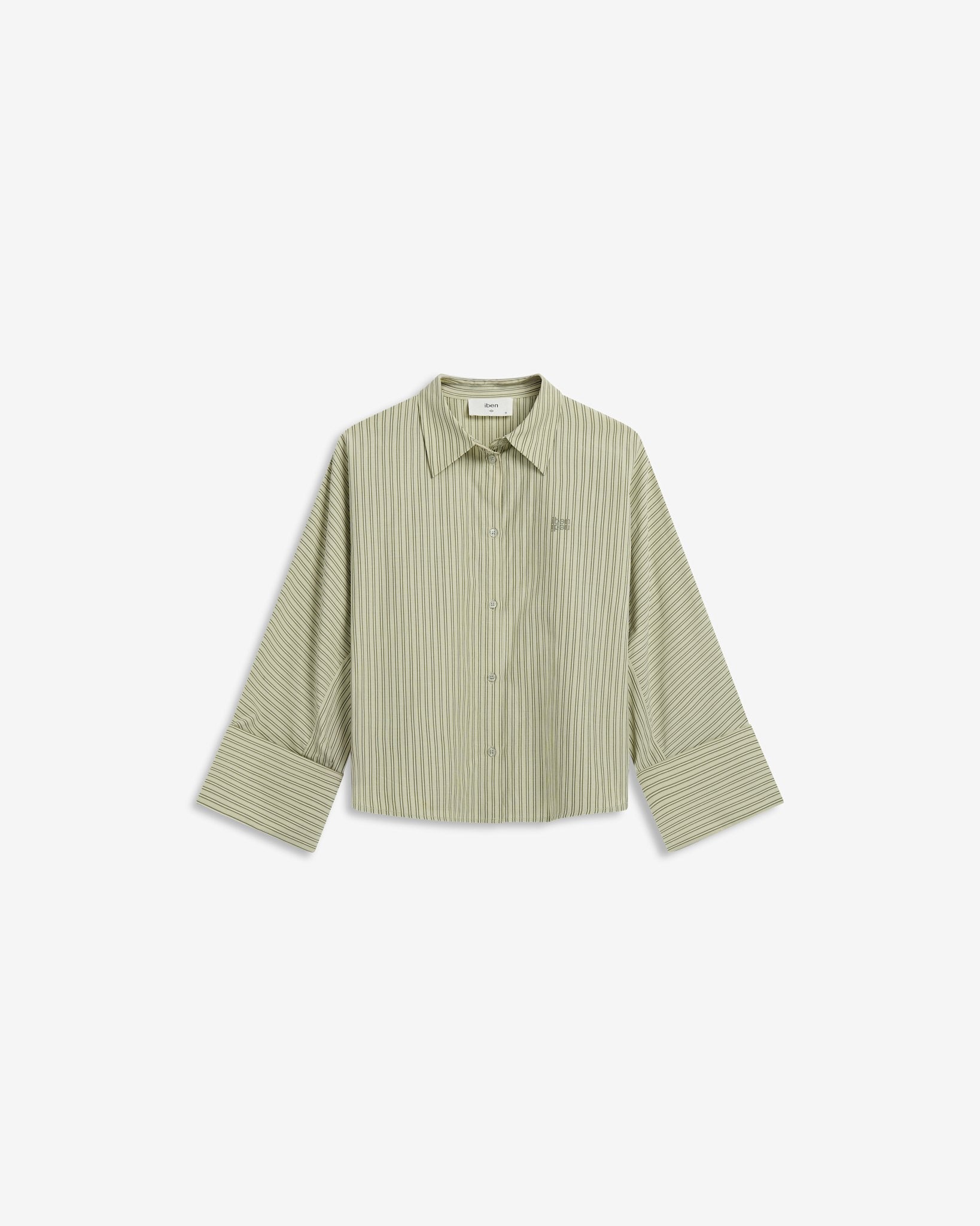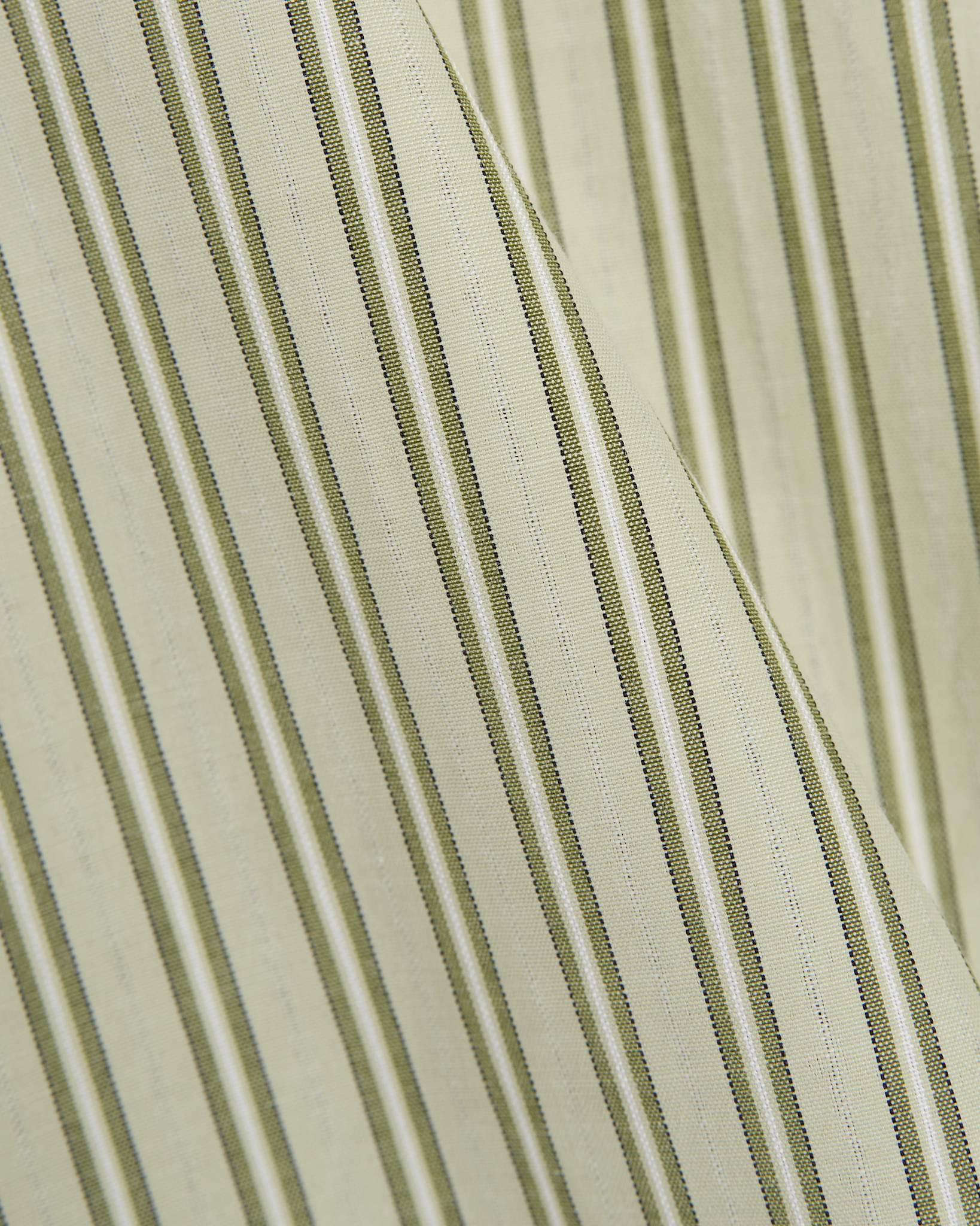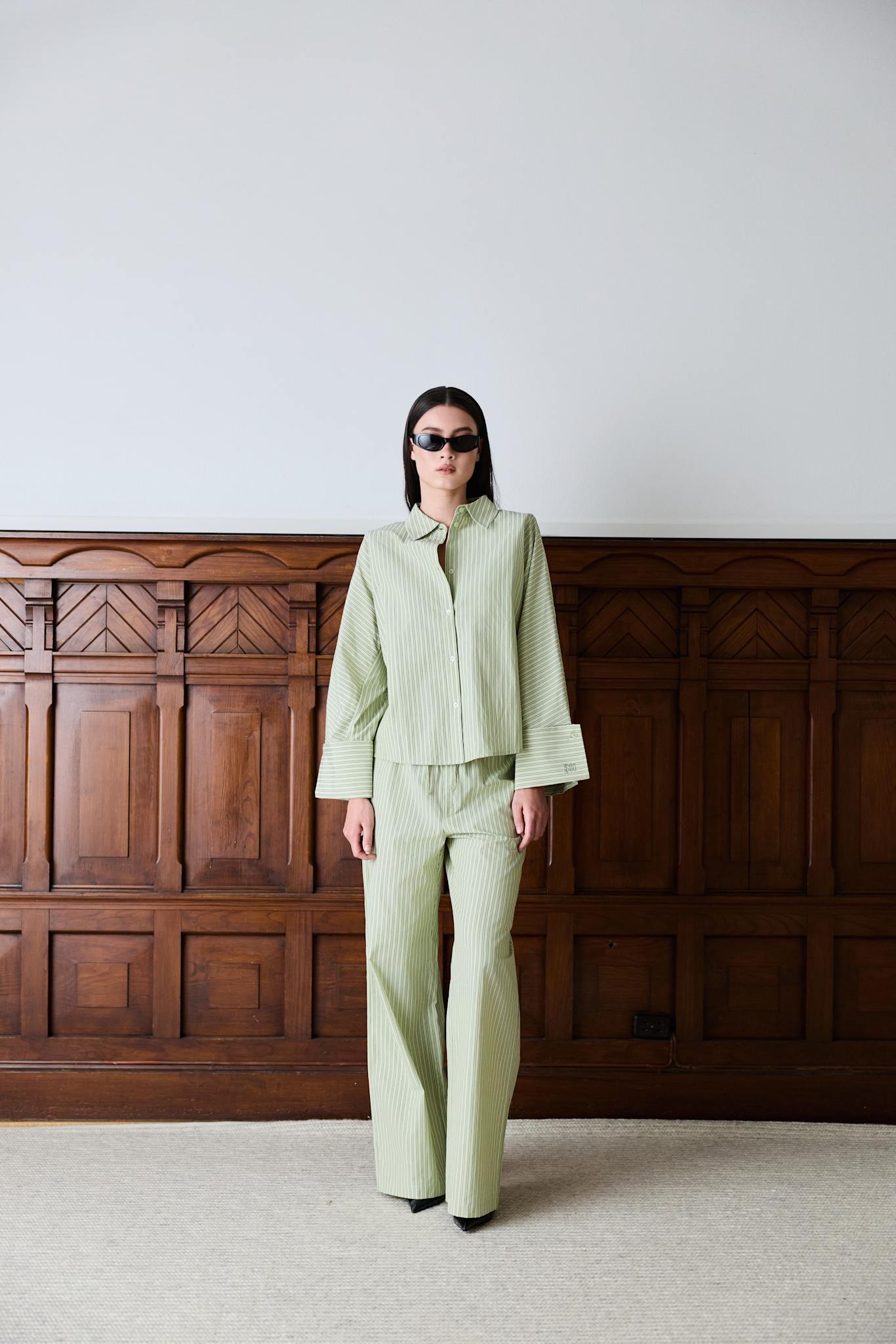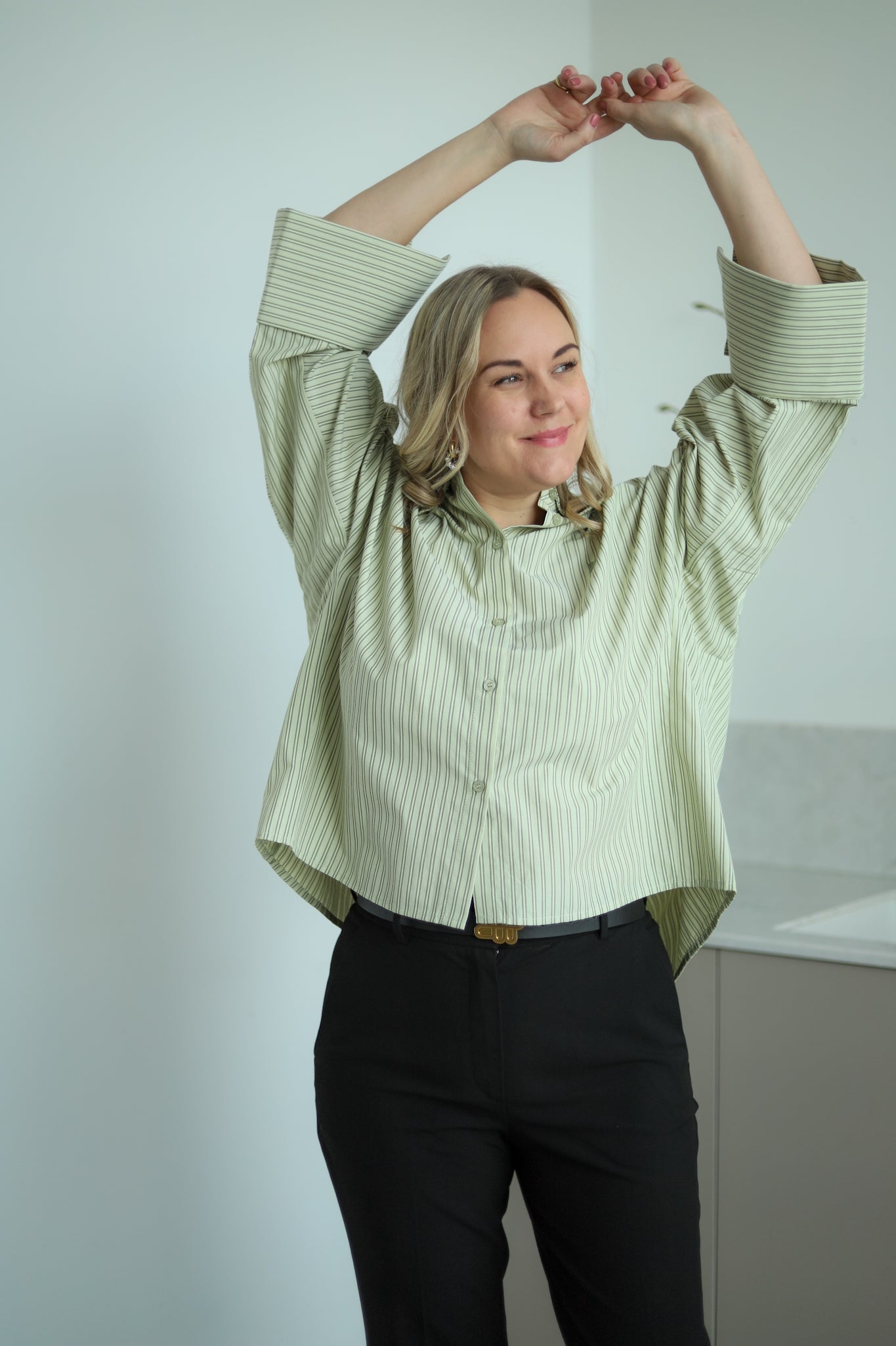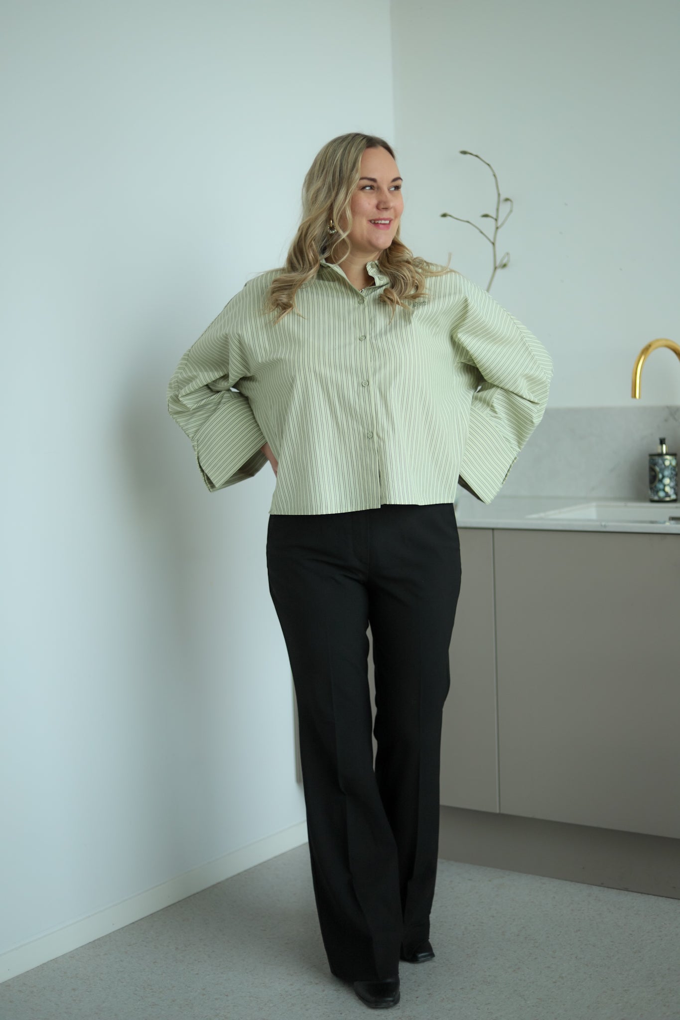 IT-skjorten Atari i sesongens grønn med striper fra Iben. Modellen har klassisk skjortekrage og kneppning ton-i-ton i front. Nett lengde og vidde i fasongen med legg bak som skaper et stilig uttrykk. Vide ermer med lett droppet skulder og bred oppbrettskant i mansjett med splitt og knapp. Klassisk skjorte med det lille ekstra som gir skjorten en unik statementlook.