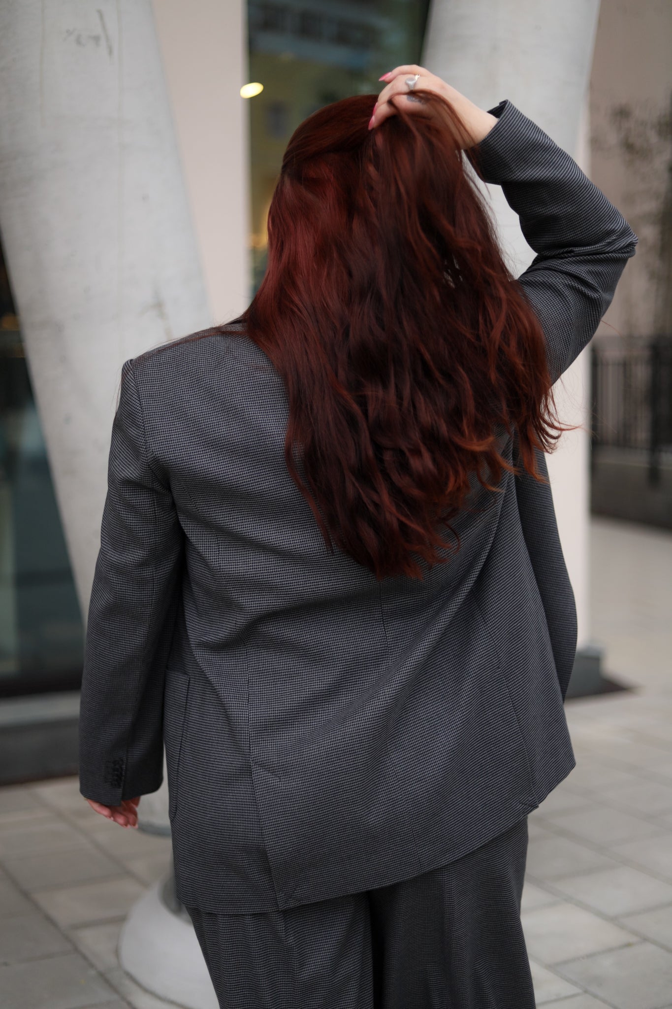 Nora er 160 cm og har på seg str 38. Modellen er 175 cm og har på seg størrelse 36.