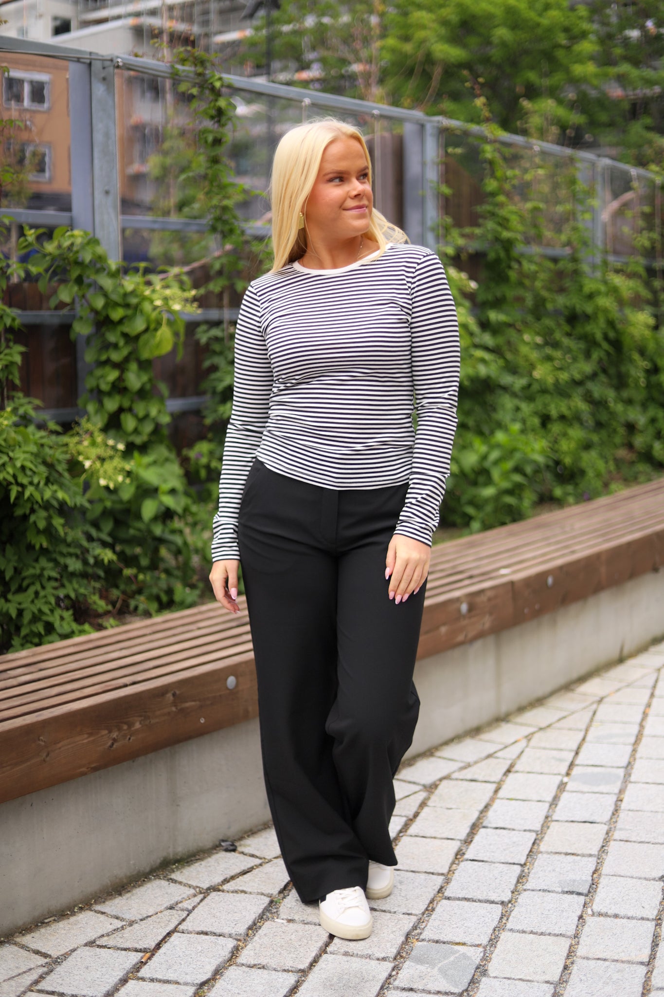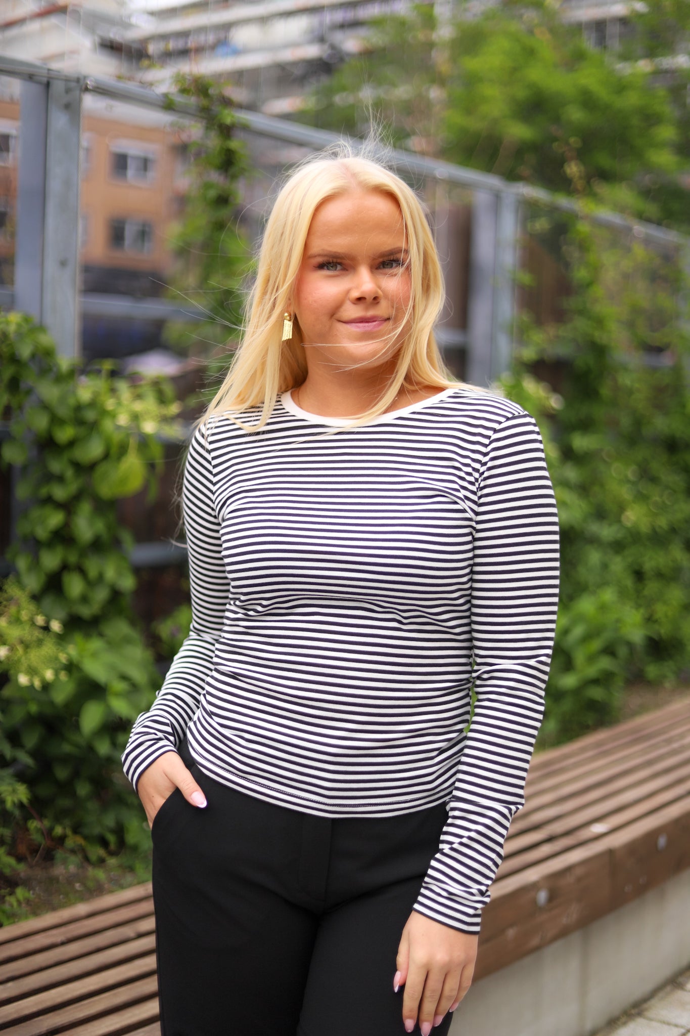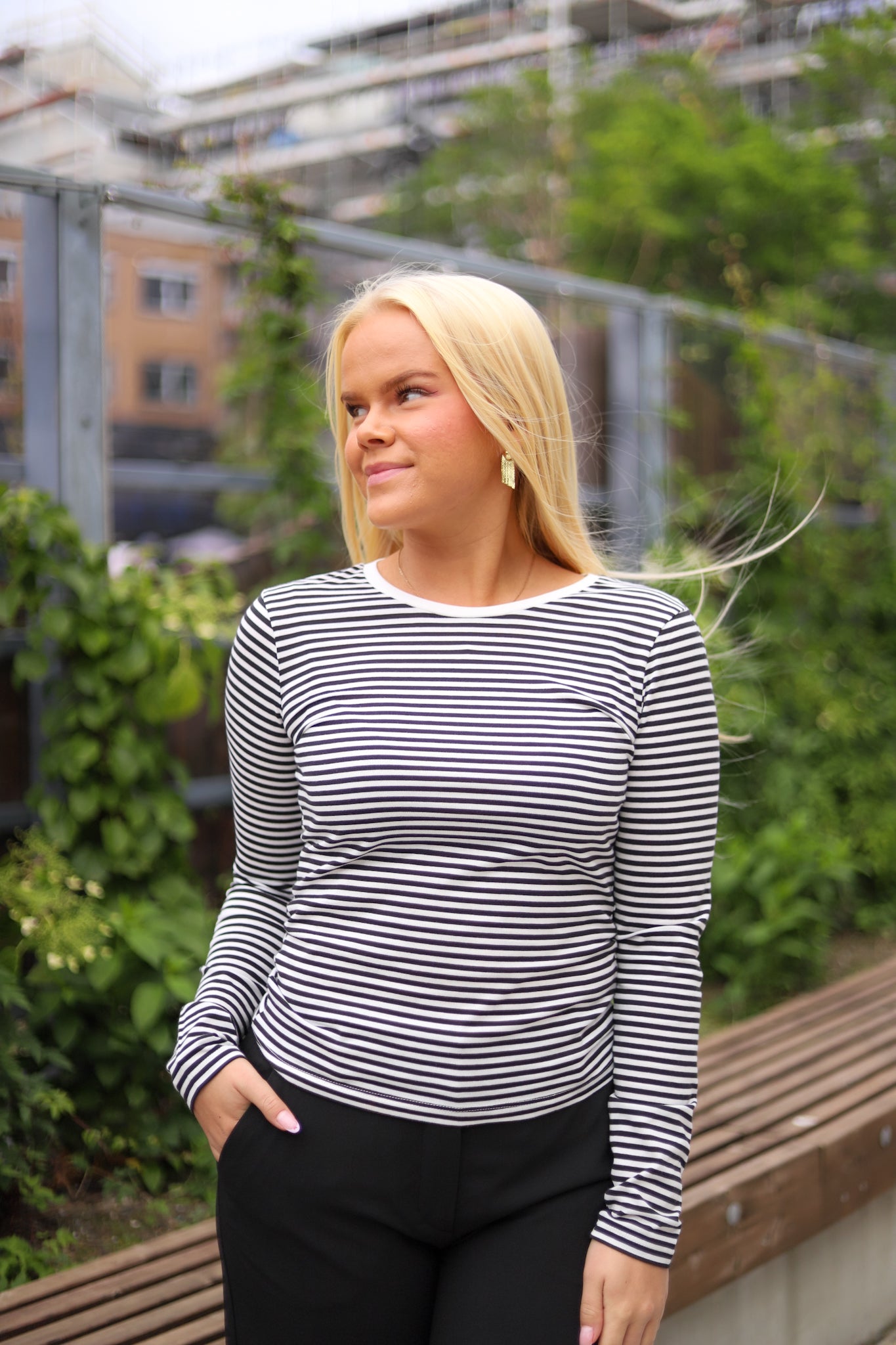 Stripete genser i sort og hvit fra MSCH Copenhagen. Modellen er tettsittende med rund hals og lange smale ermer. Perfekt tilskudd til basegarderoben.