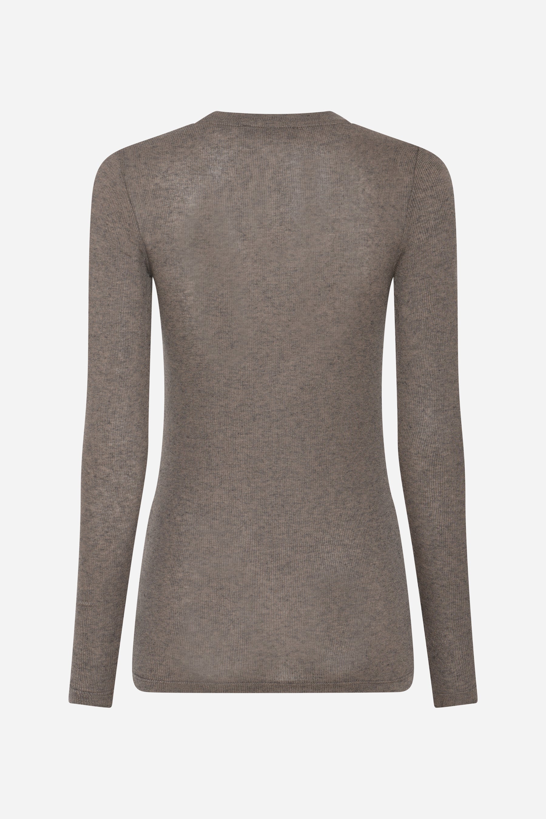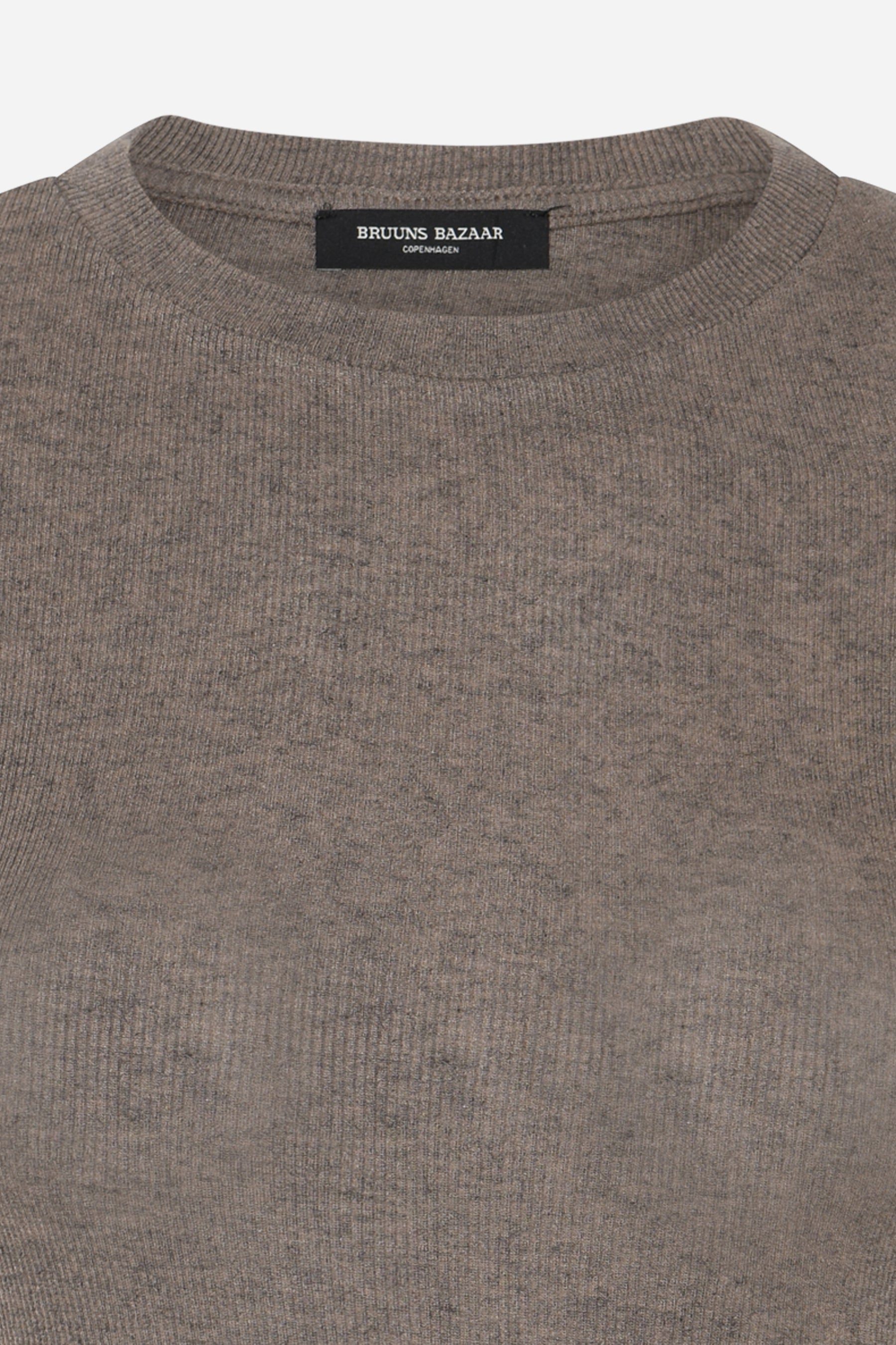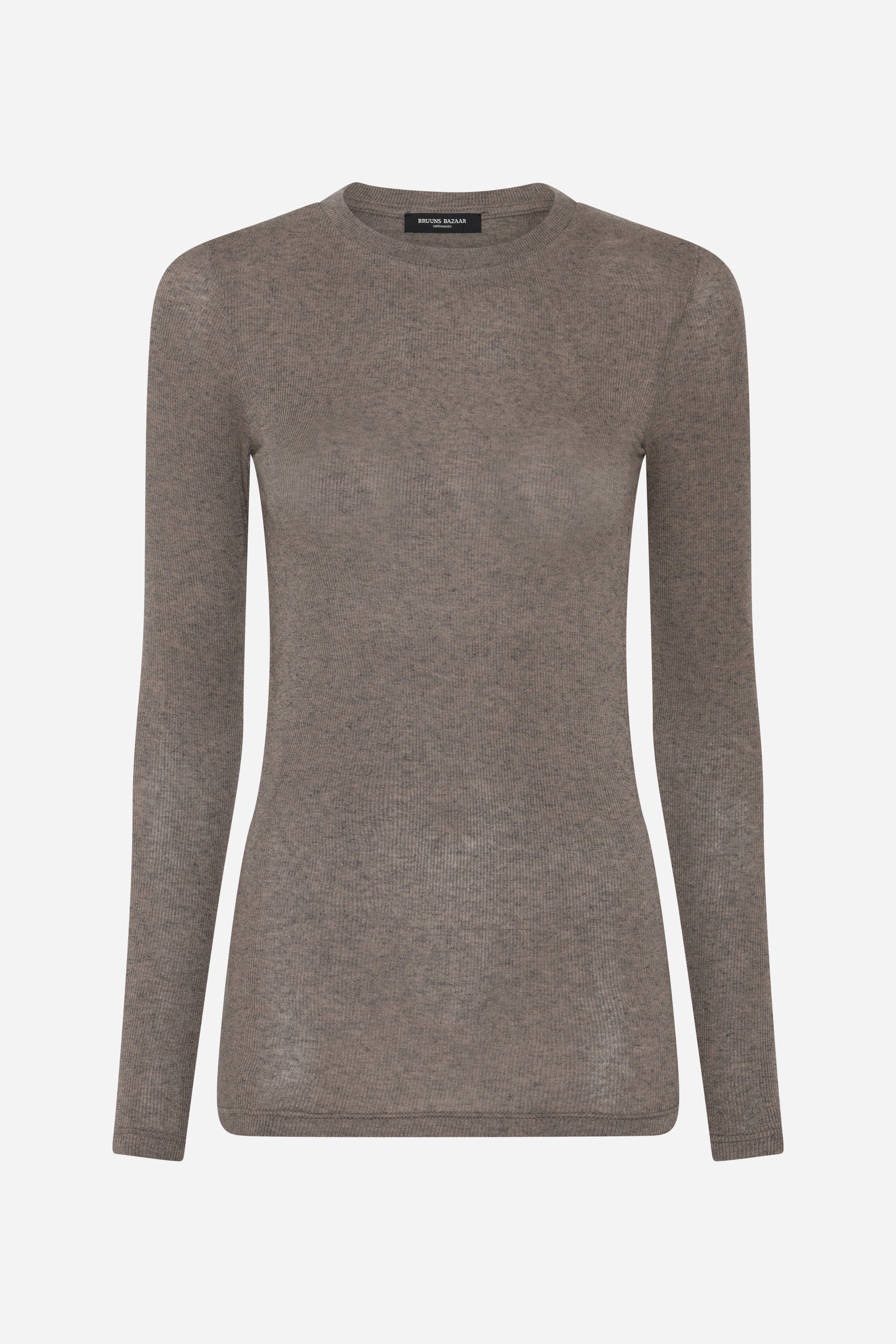 Deilig basetopp i brun fra Bruuns Bazaar. Modellen er tettsittende med rund hals, lange smale ermer og pen hoftelengde. Fantastisk kvalitet i modal og ullblanding. Perfekt alene eller under en dressjakke på kaldere dager.