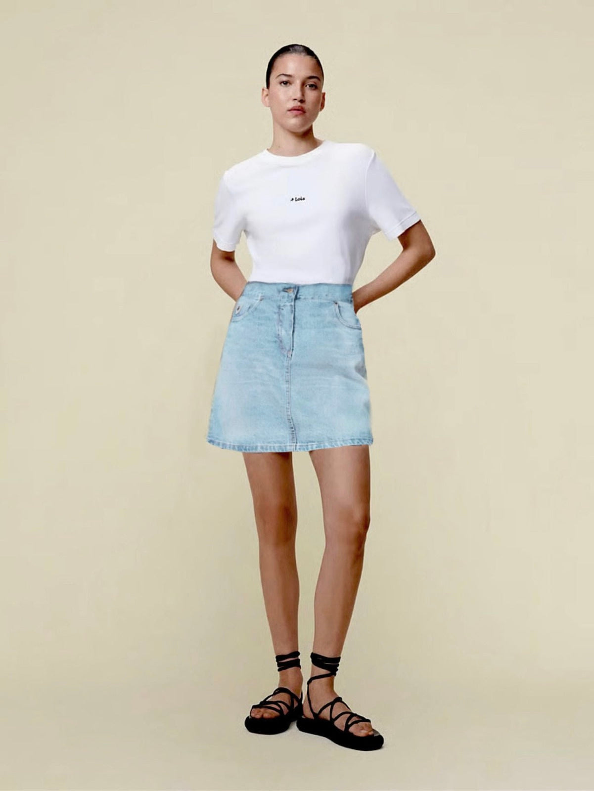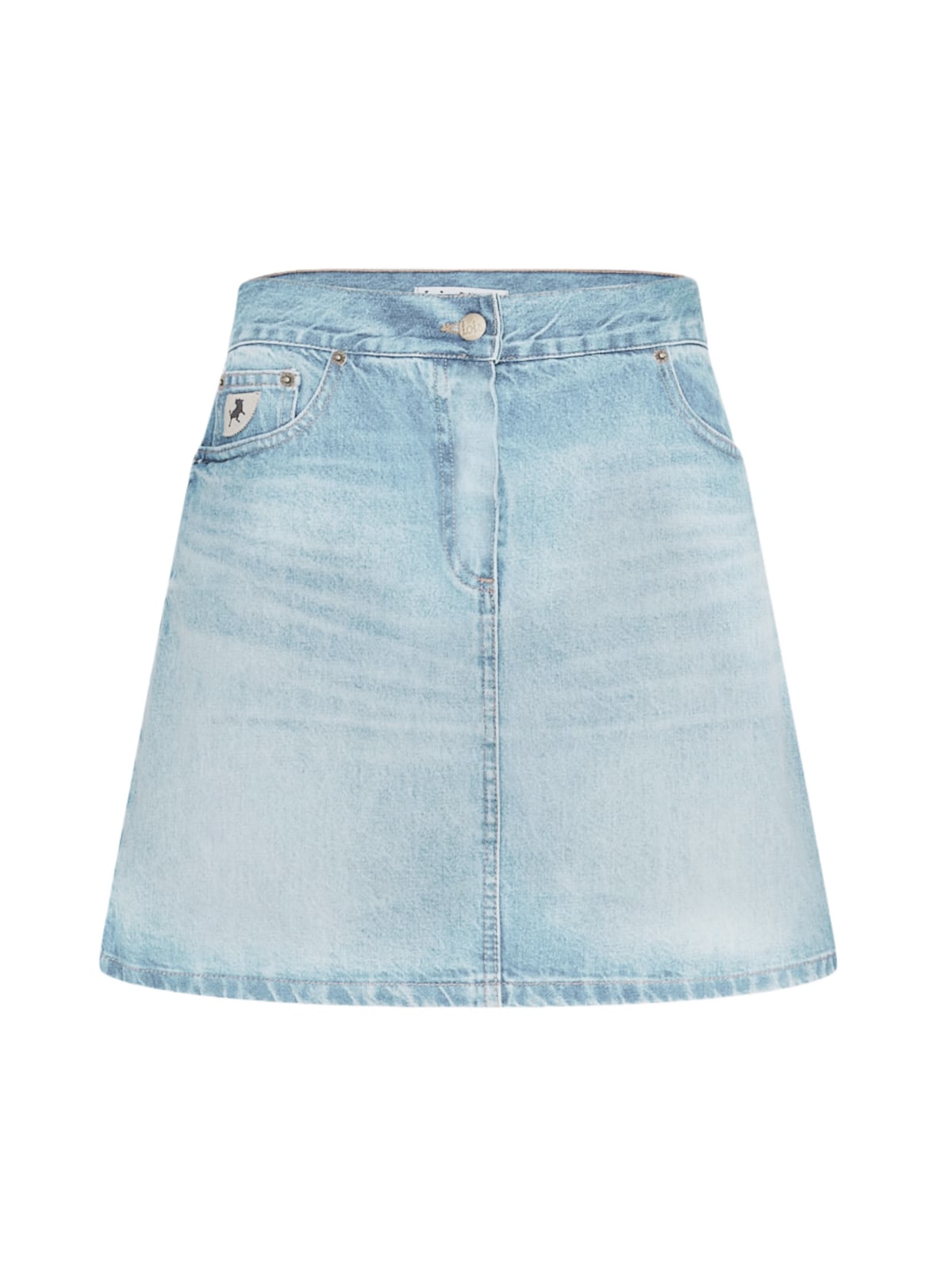 Stilig skjørt i lys denim fra Lois. Modellen har medium livhøyde og skrår lett ut med lengde til midt på låret. En klassisk 5-pocket modell med linning, beltehemper og gylf med skjult glidelås og knapp. Style det med en enkel t-skjorte og sandaler eller sneakers!