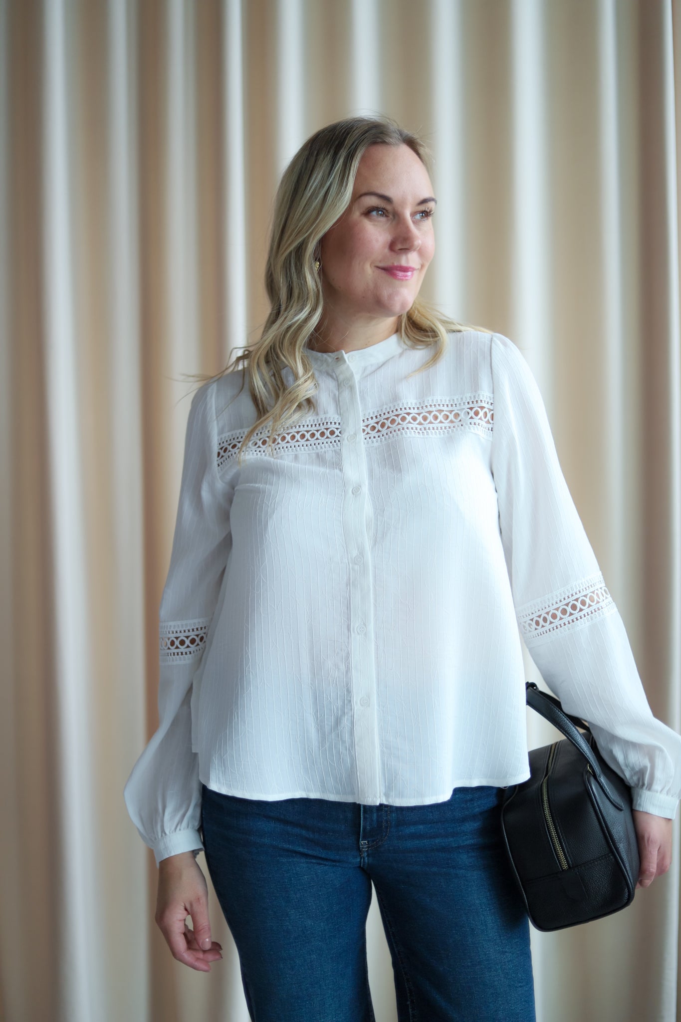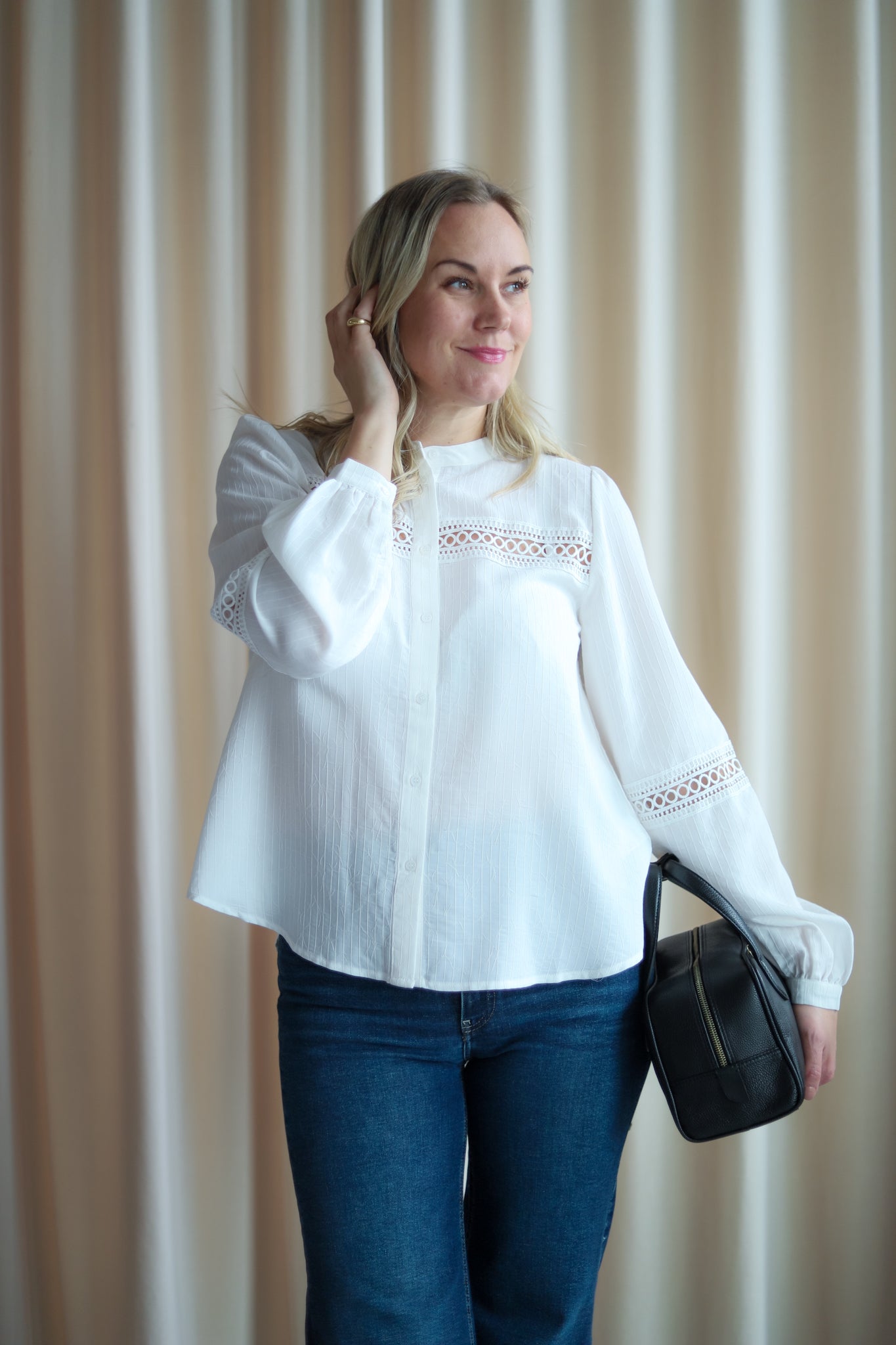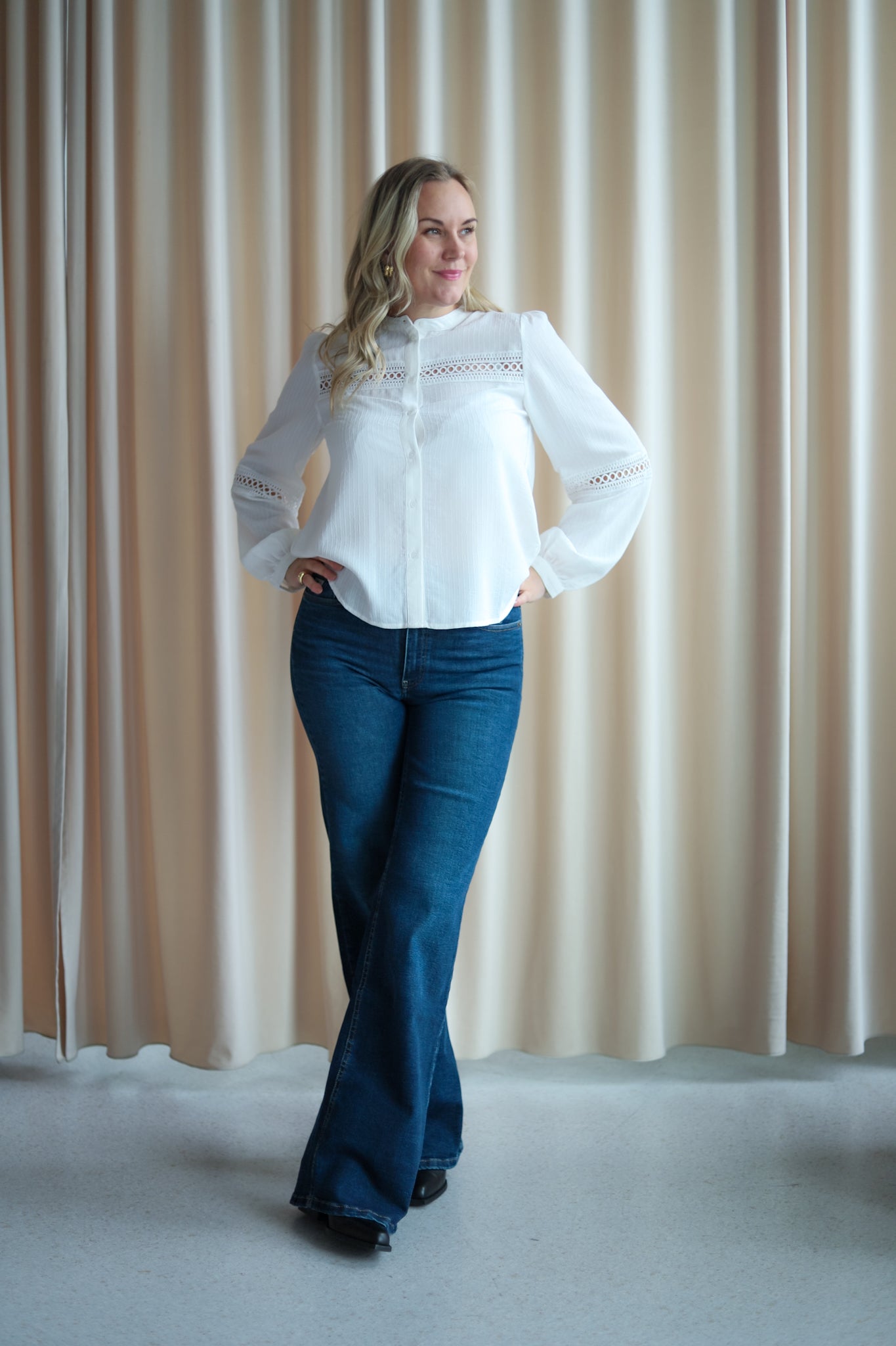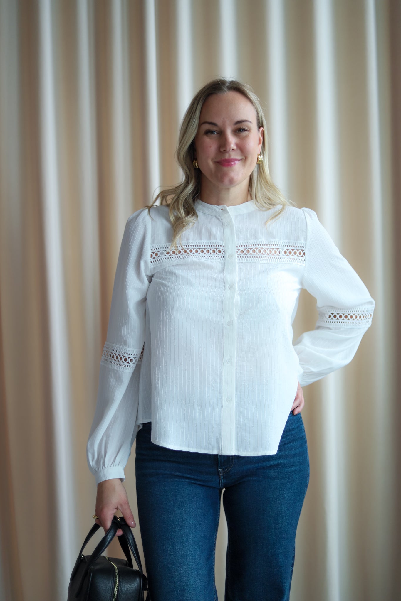 Søt skjorte i klassisk hvit med broderidetaljer fra Norr. Modellen er rett med rund hals og ton-i-ton knappestolpe i front. Lange ermer med lett volum og knepping i mansjett. Skjorten har delikat broderi over bryst og albuer. En perfekt hverdagsskjorte med det lille ekstra.