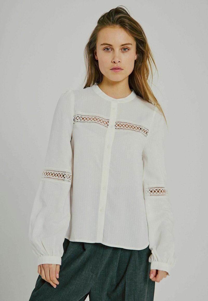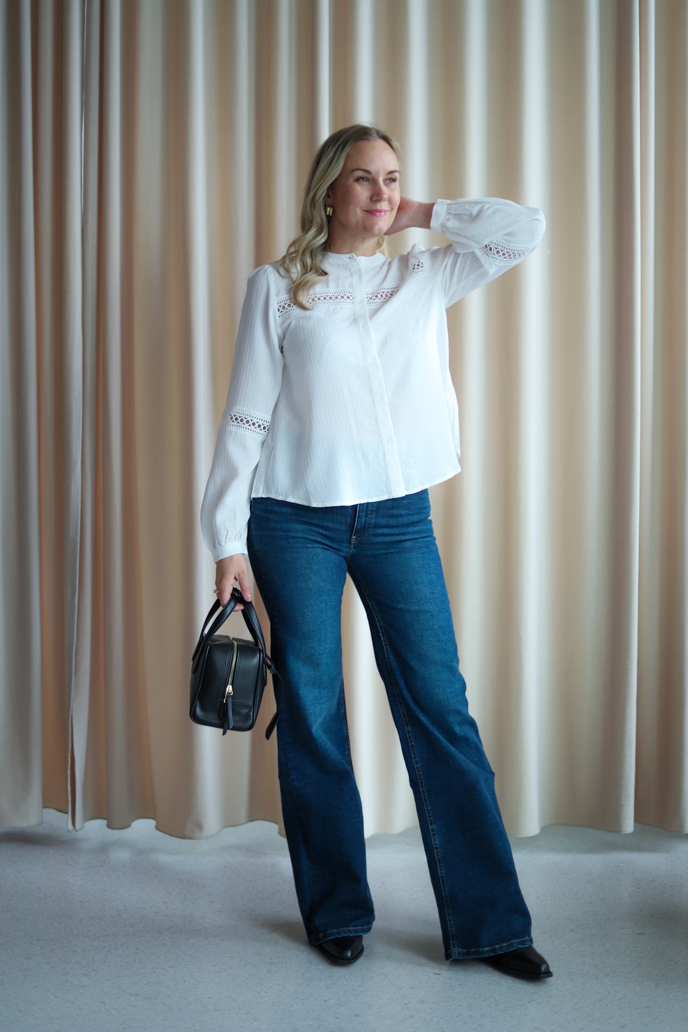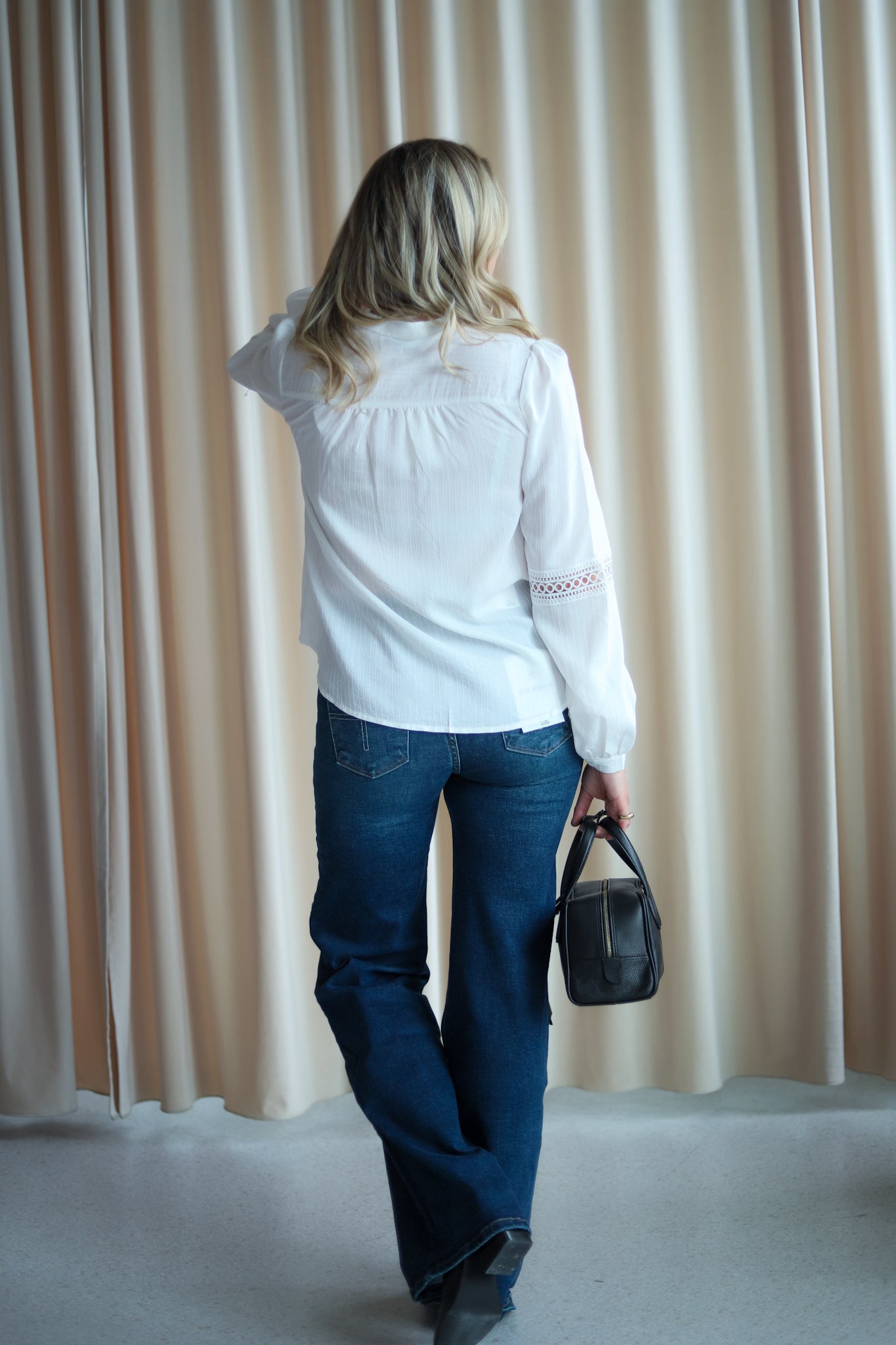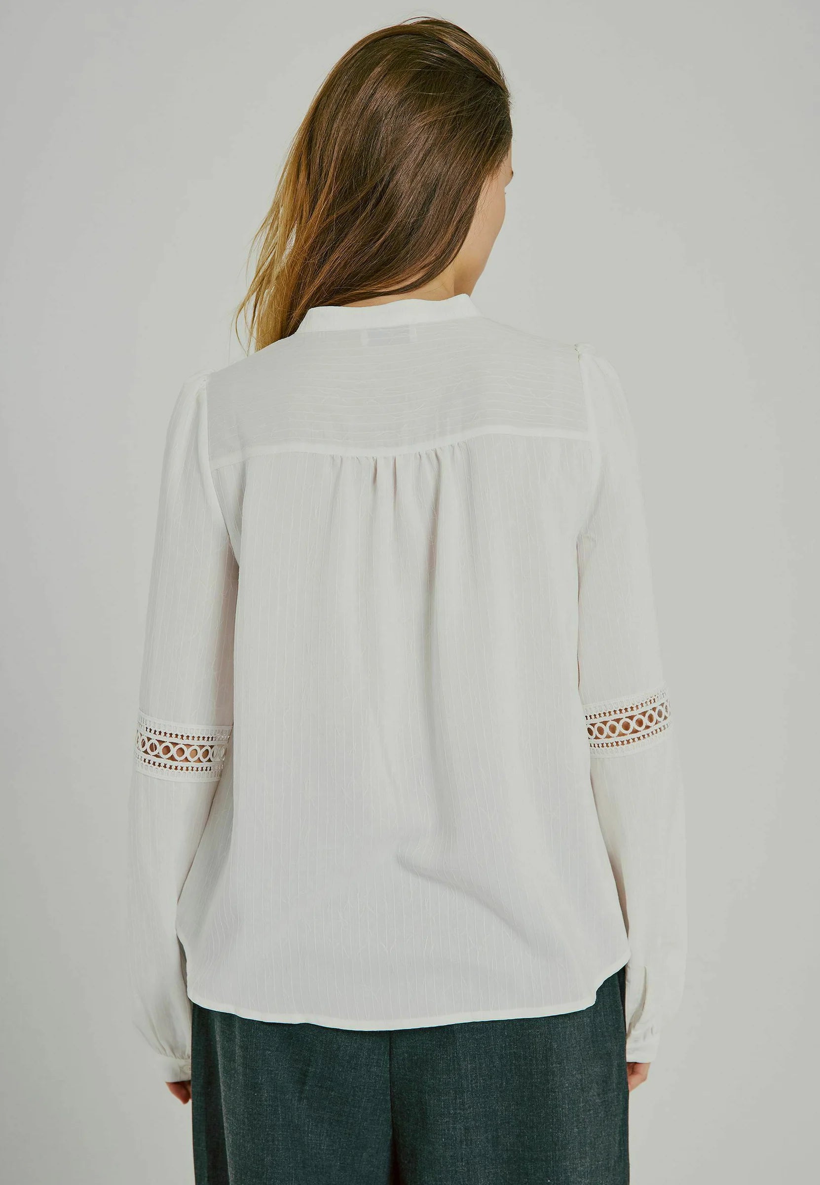 Søt skjorte i klassisk hvit med broderidetaljer fra Norr. Modellen er rett med rund hals og ton-i-ton knappestolpe i front. Lange ermer med lett volum og knepping i mansjett. Skjorten har delikat broderi over bryst og albuer. En perfekt hverdagsskjorte med det lille ekstra.