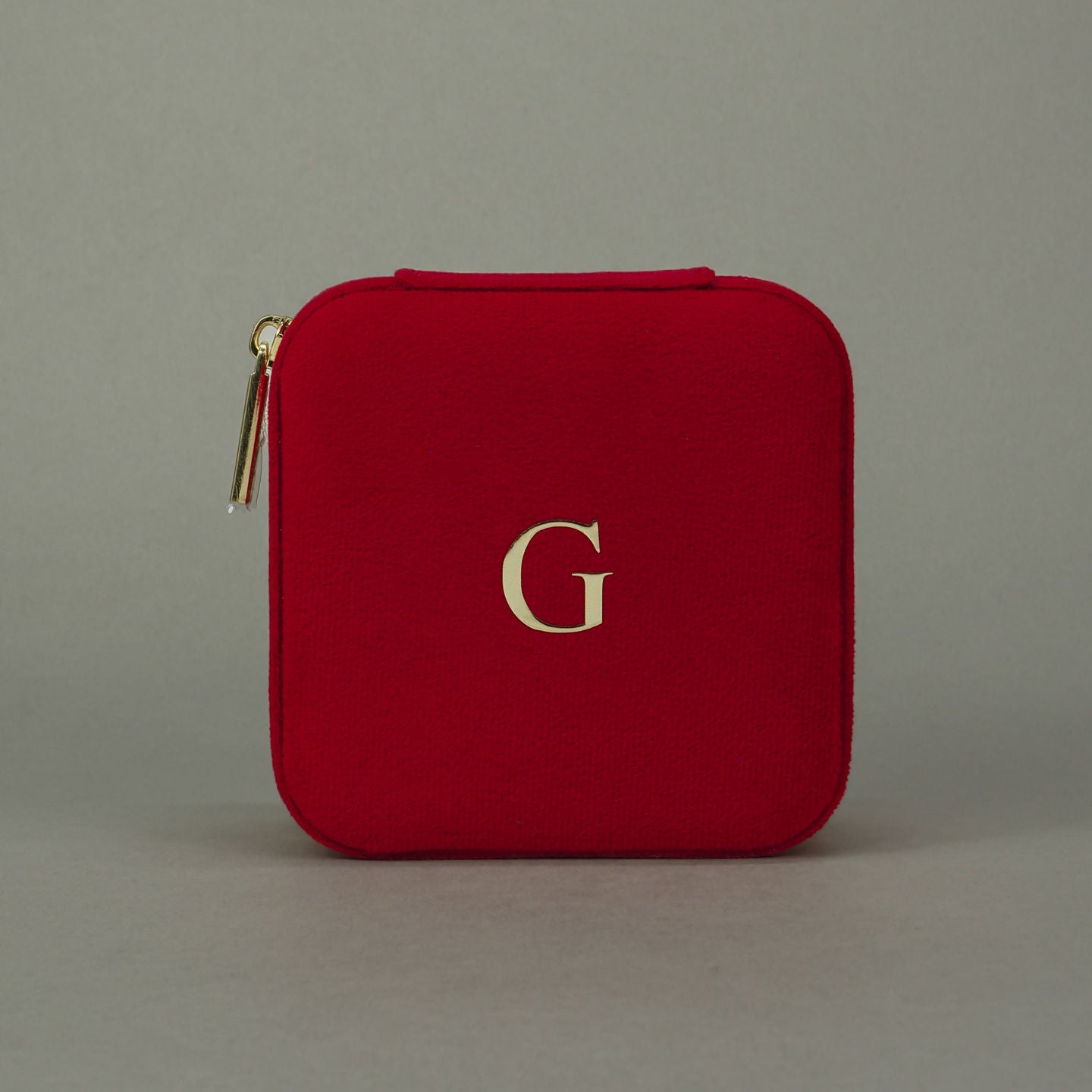Elegante og kompakt smykkeskrin i en nydelig rødfarge fra Wahl-West. Laget i myk fløyel og personalisert med bokstav i gullprint. Glidelåslukkingen gjør den enkel å åpne, mens interiøret tilbyr praktisk oppbevaring. Super for å holde dine smykker organisert og trygg mens du er på farten. Og den perfekte gaven med en personlig touch!