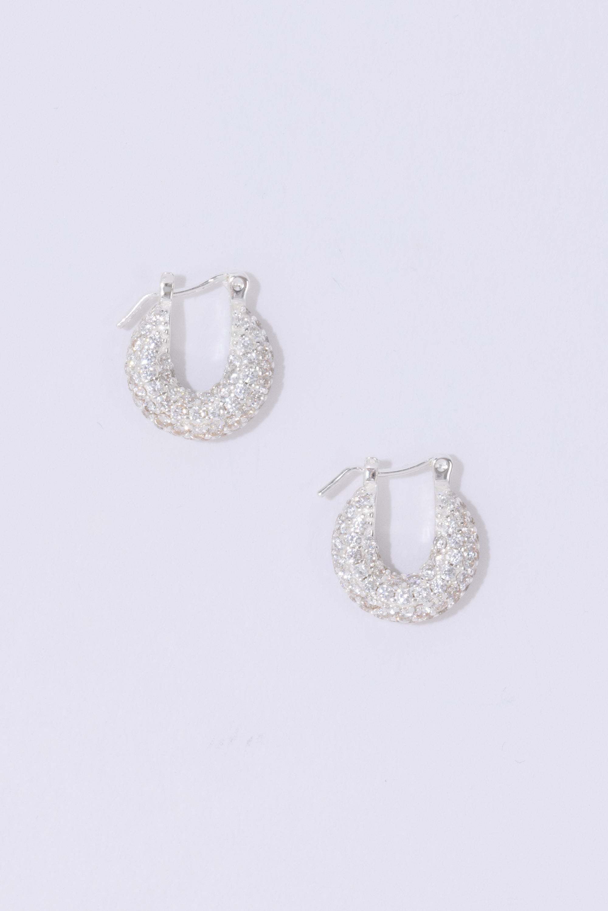 Tiny Diamond Hoops Silver er laget i sølvbelagte messingringer med glitrende kubisk zirkonia. Disse elegante øreringene gir et snev av eleganse til ethvert antrekk. Bruk dem alene eller kombiner dem med dine andre favorittøreringer.