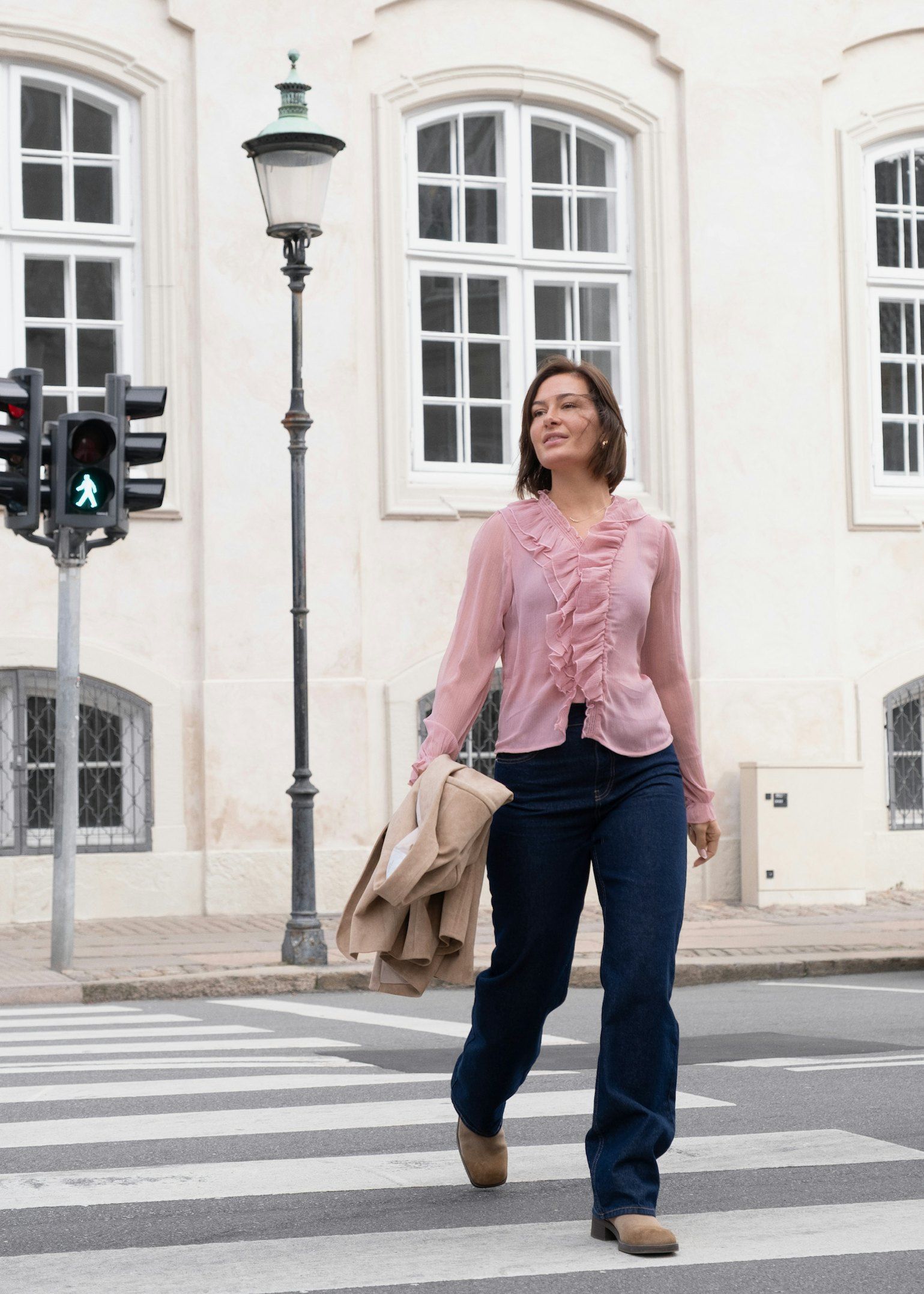 Normal på størrelsen. Marie er 168 cm og har på seg størrelse 38, modellen er 176 cm og har på seg størrelse 36.