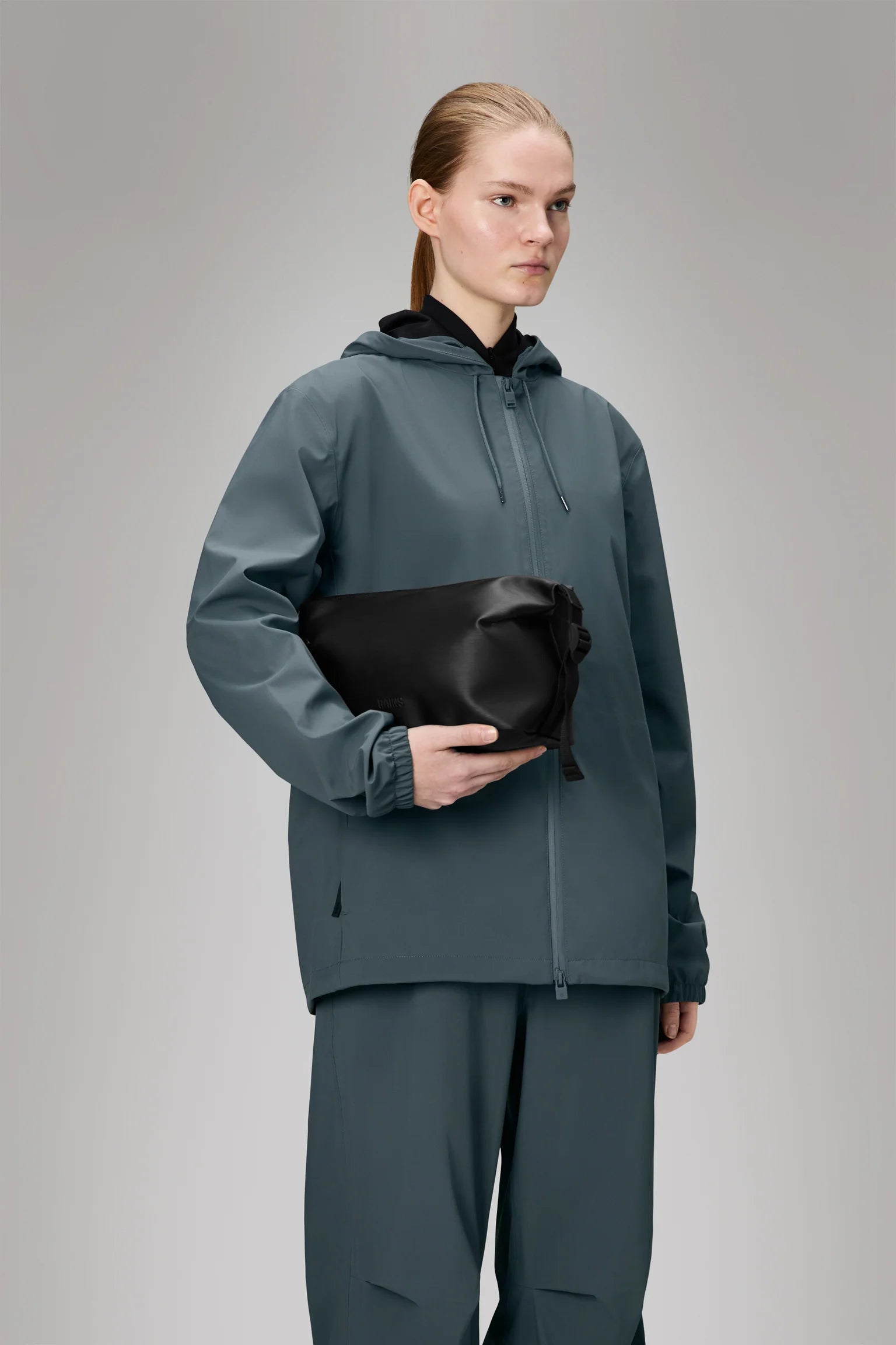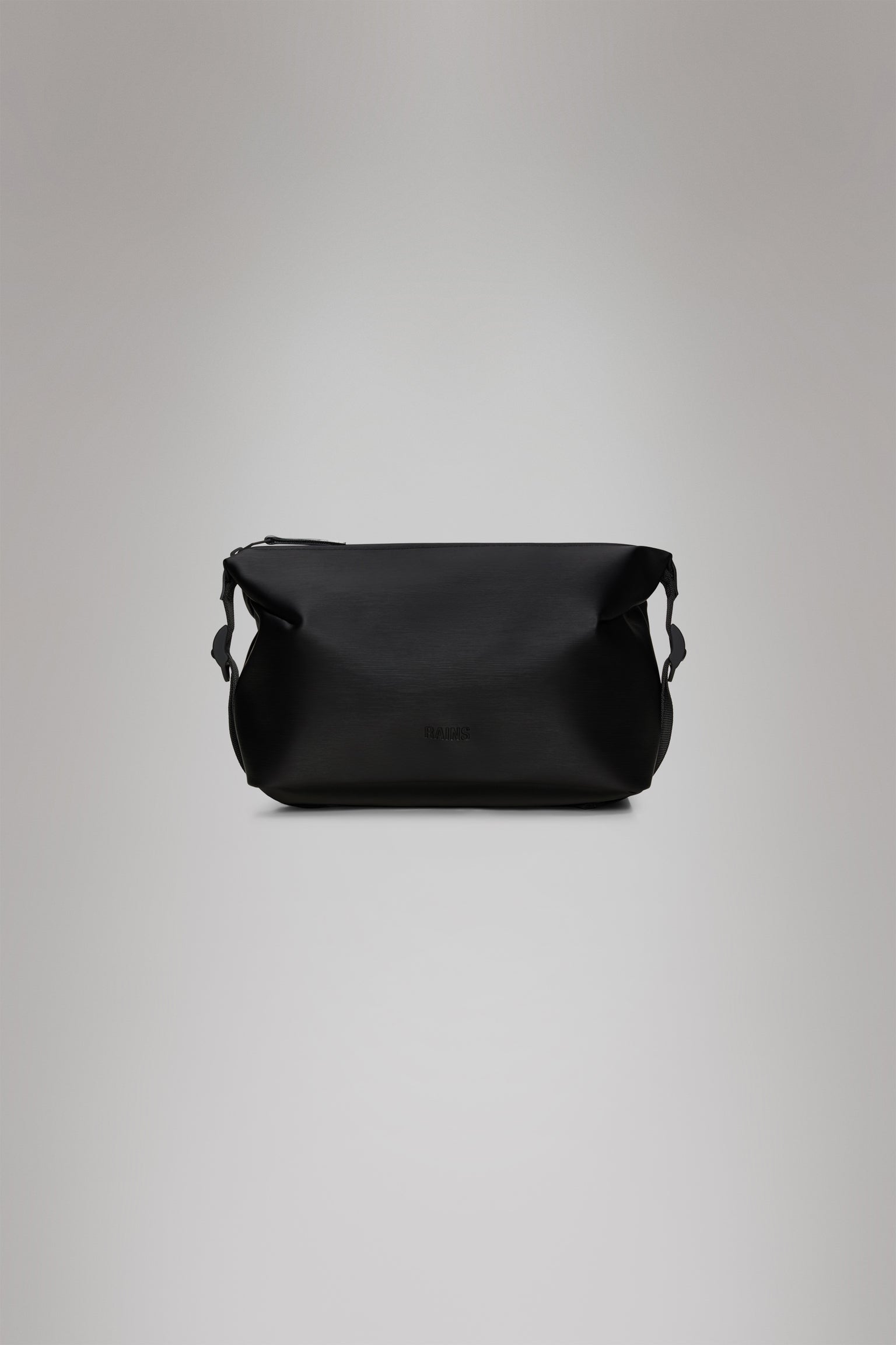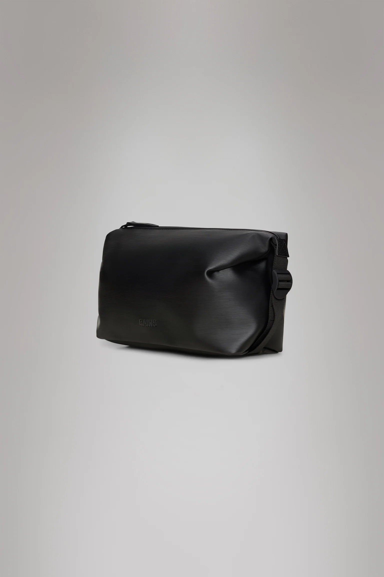 Romslig vanntett toalettmappe fra Rains. Her får du plass til det du måtte trenge. Praktisk flat bunn og glidelås på toppen. Justerbare spenner i sidene for å komprimere størrelsen. Mykt og holdbart materiale med trykket Rains logo. Her i sort med stilig stripete struktur.