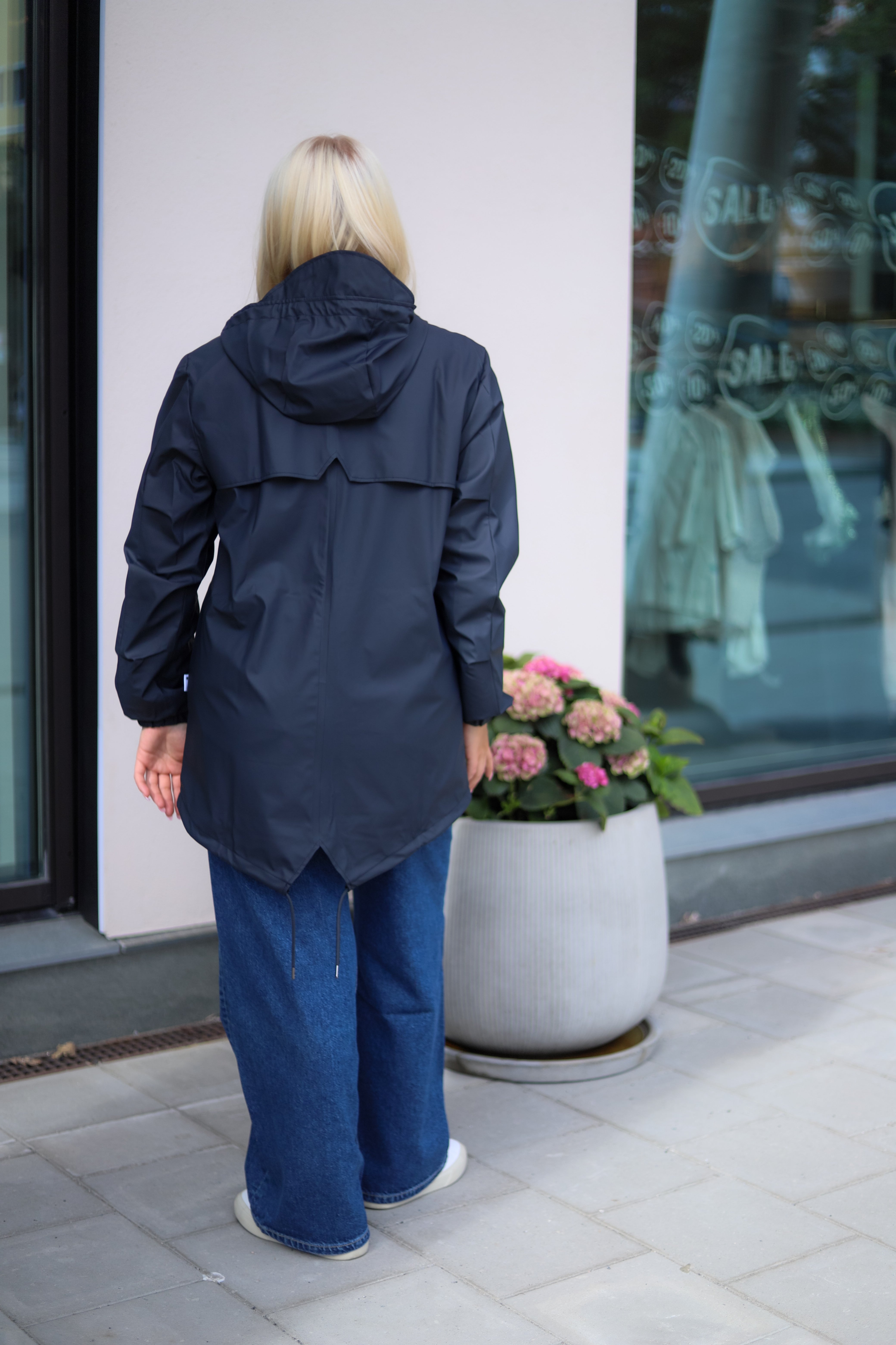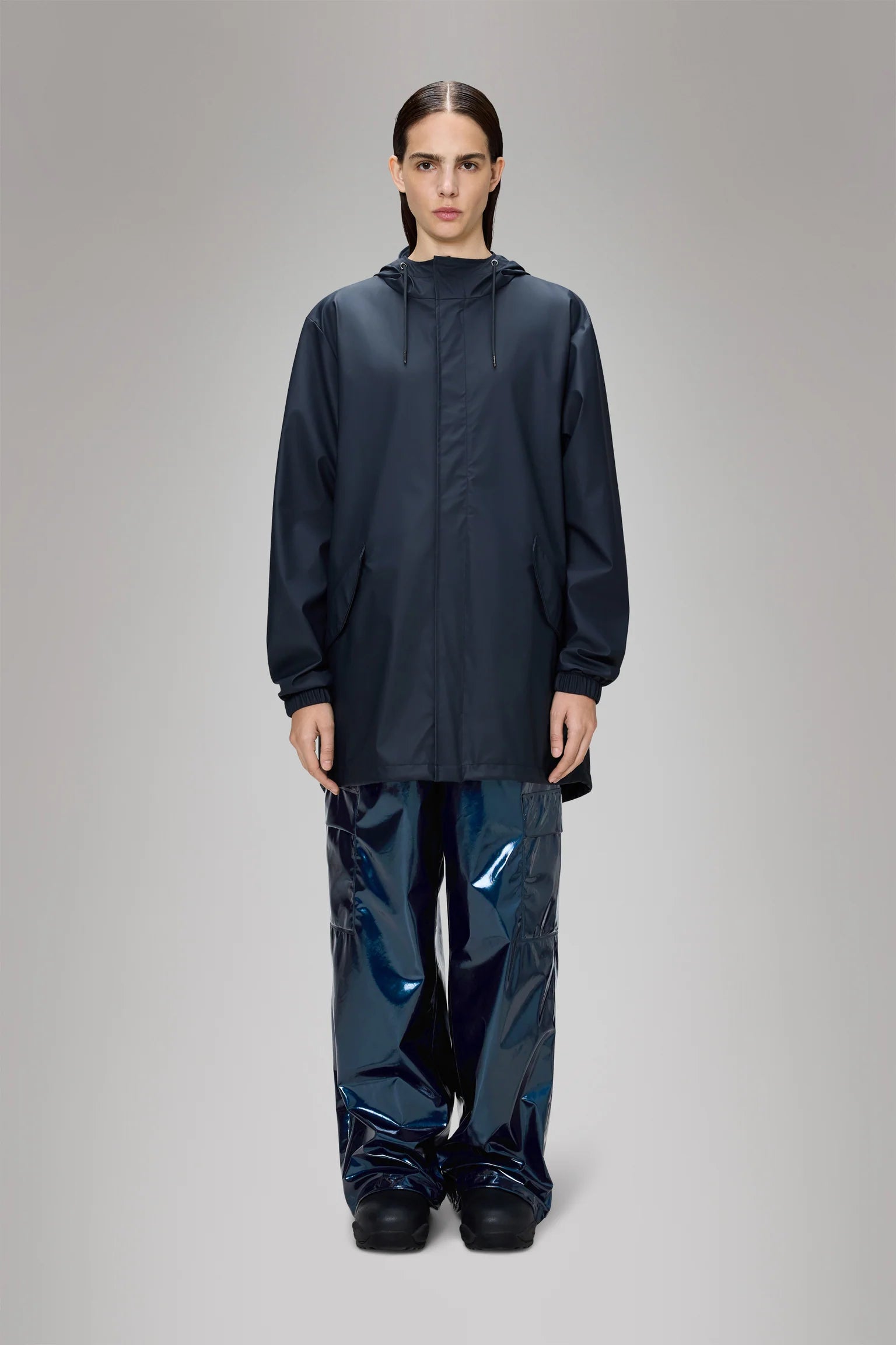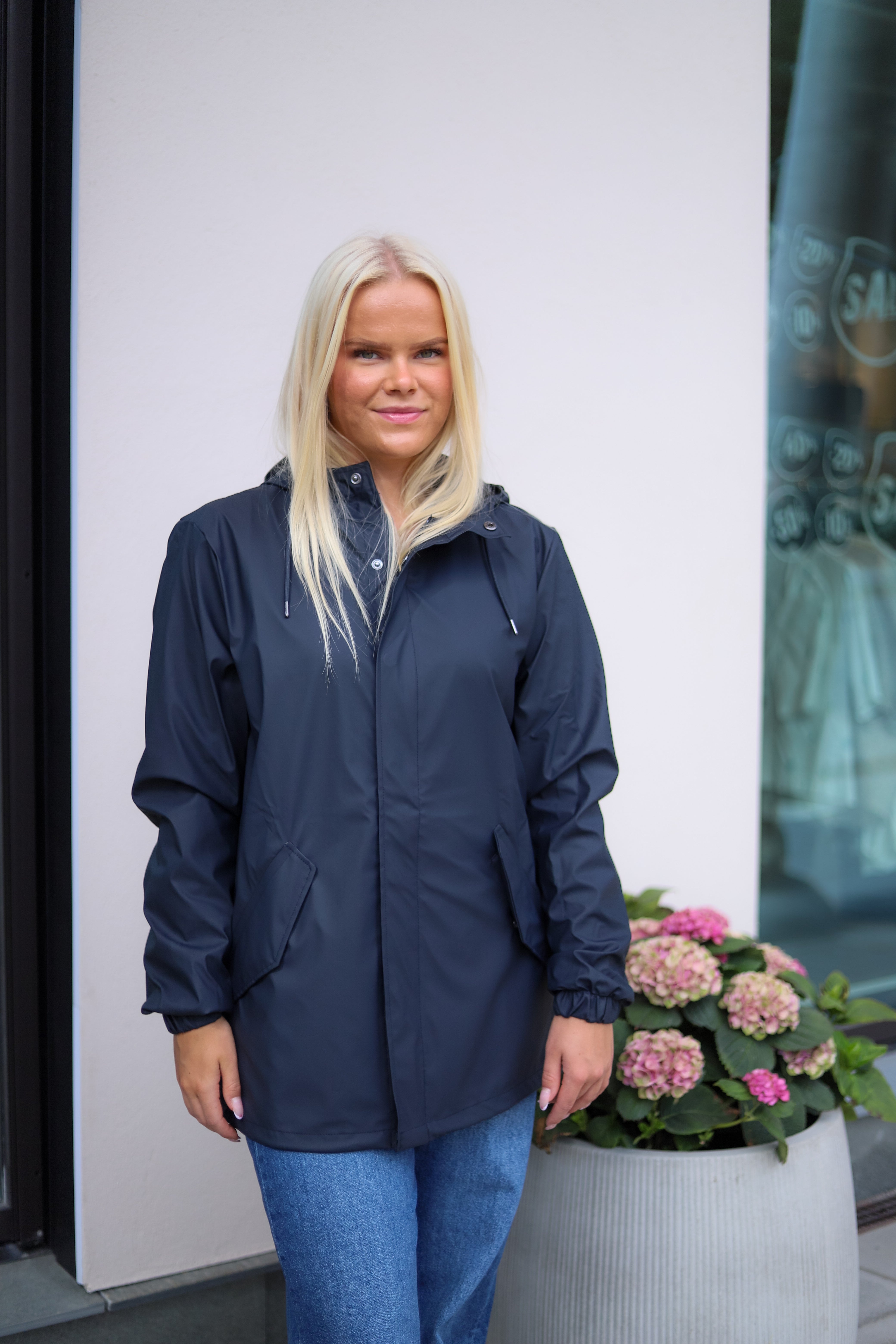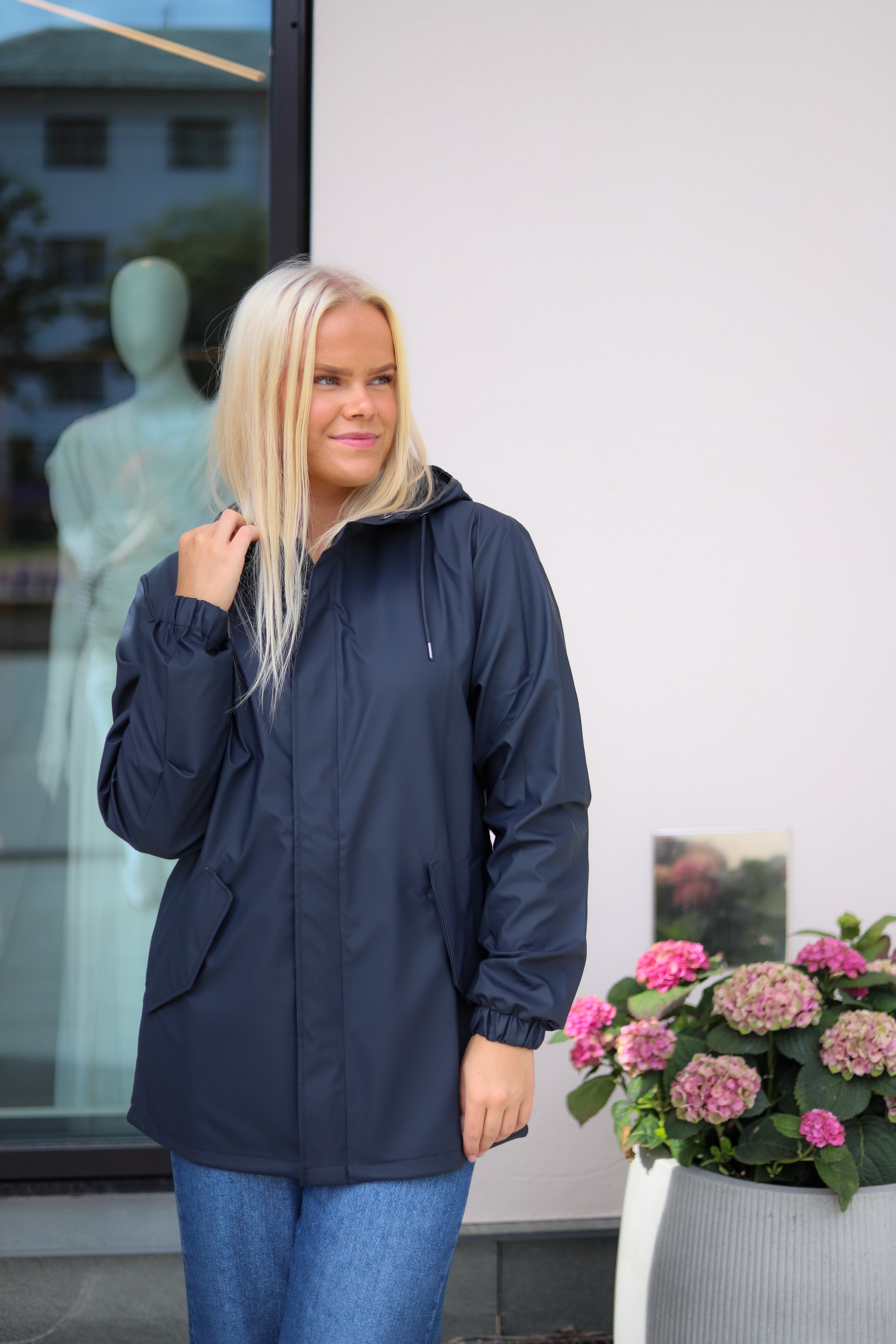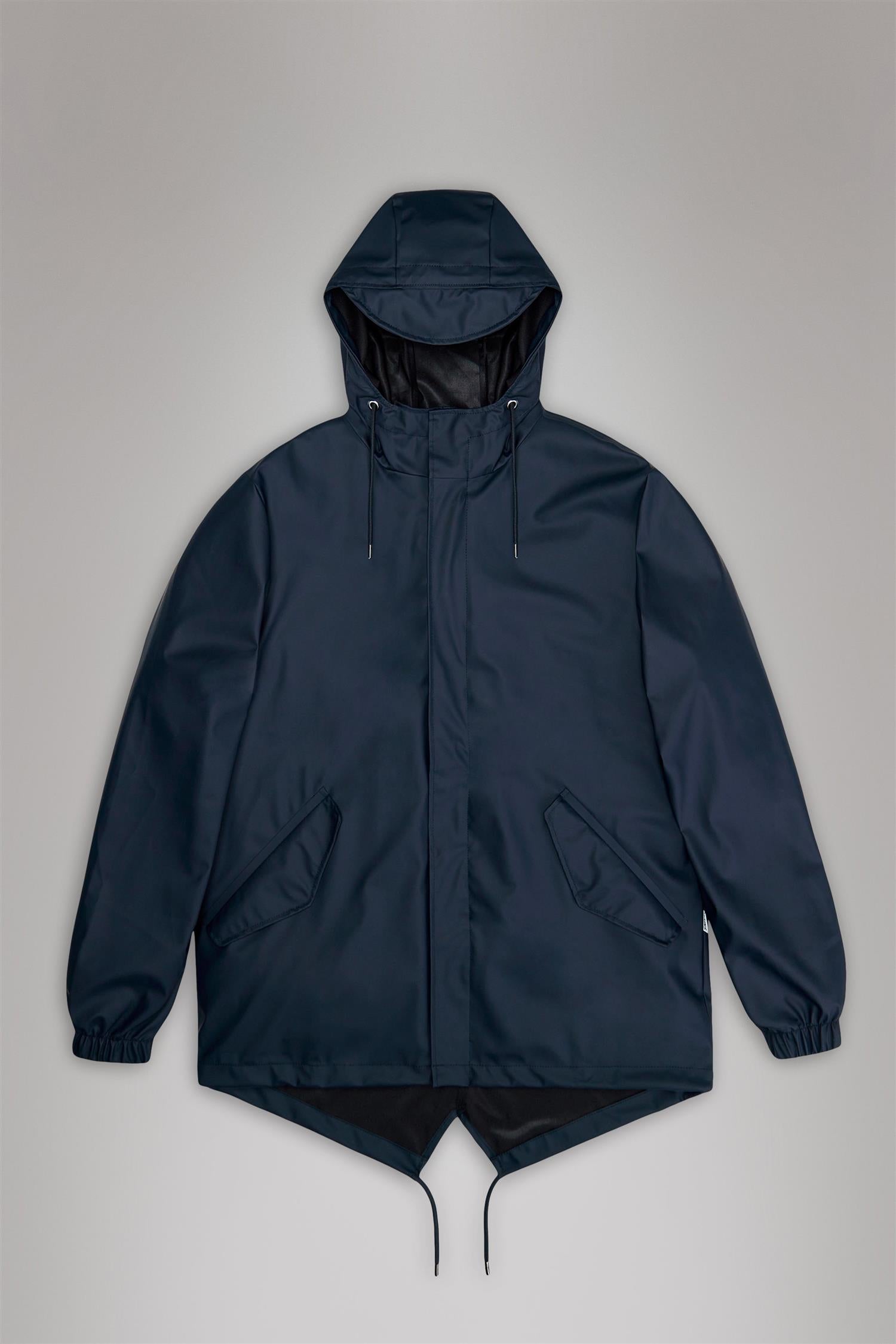 Vanntett regnjakke i deilig myk kvalitet fra Rains. Modellen er rett med god hoftelengde og justerbar knyting i hem. Jakken er lett i vekt og har en flott finish. En jakke med høy funksjonalitet kombinert med et minimalistisk design. Glidelås og skjulte knapper lags fronten. Hette med justering, klafflommer i hoftehøyde og elastiske mansjetter. Jakken er vanntett, vindtett, har sveisede sømmer og ventilering under armene. Her i mørk blå. Perfekt urban og trendy jakke på farten, uansett vær!