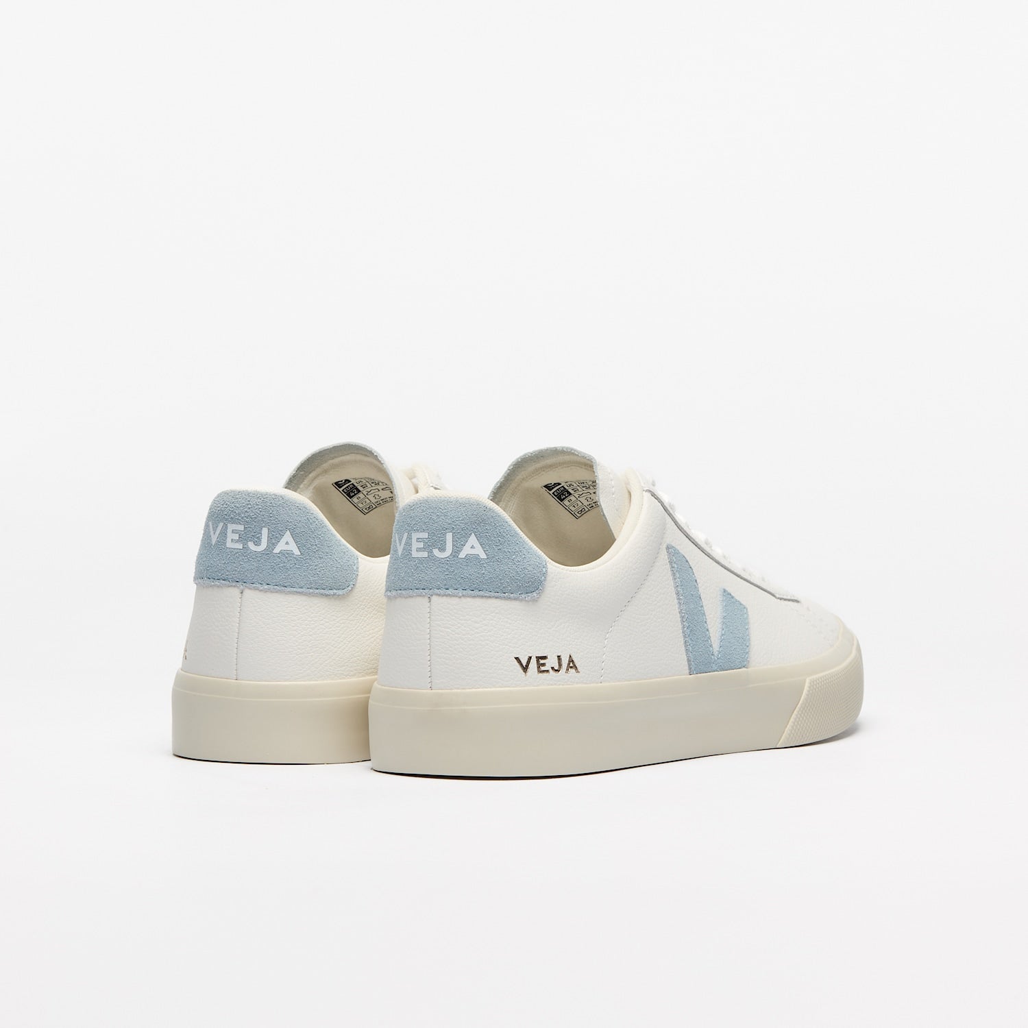 En klassisk hvit sneaker med super behagelig passform fra franske Veja. Denne er helhvit i glatt skinn med hvit gummisåle. Veja V-logo på siden og detalj på hælen i semsket lys blå.