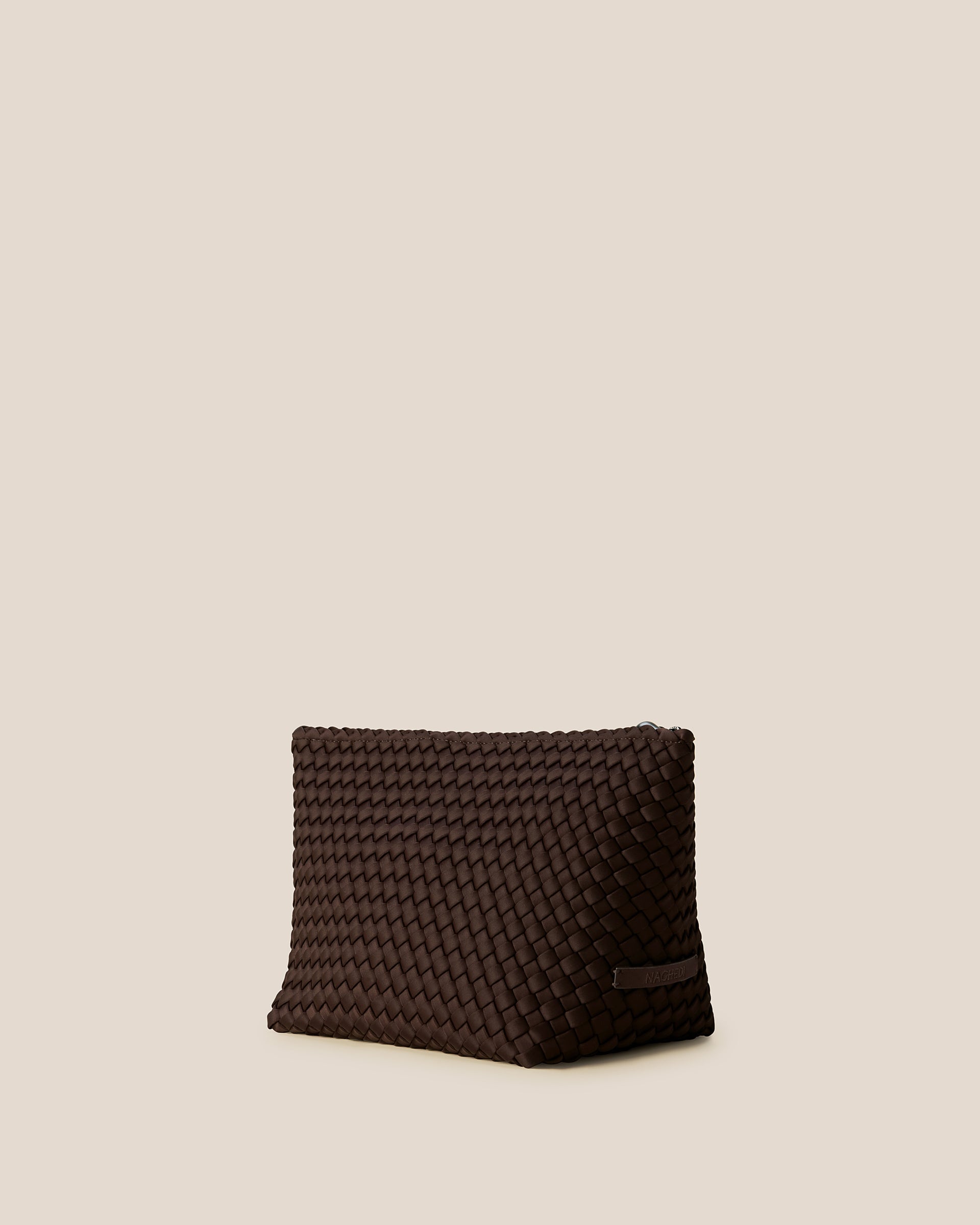 Portofino Large Cosmetic Case er håndvevd i neopren. En myk og lett kvalitet, her i lekker sjokoladebrun farge. Lett og romslig toalettmappe som rommer det mest nødvendige. Praktisk med flat bunn, en zip-lomme inni og lukkning på toppen. Perfekt for oppbevaring av småting i vesken eller på reise!