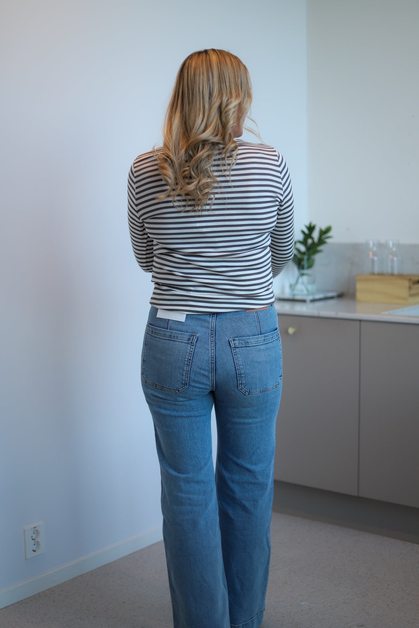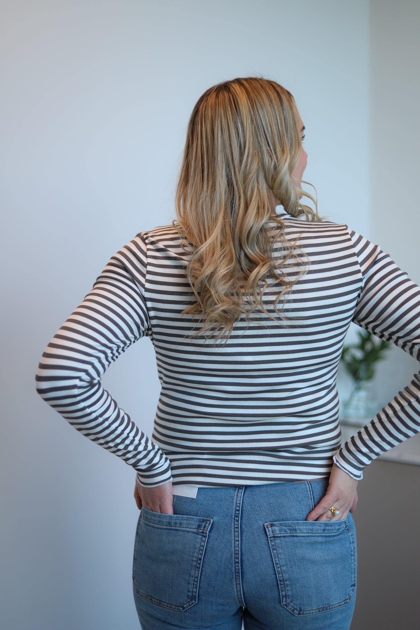 Deilig basic i lys brun med hvite striper fra Levete Room. Modellen er tettsittende ribbestrikk med hoftelengde. Rund hals og lange smale ermer. Anvendelig basic i lett og stretchy viskosekvalitet.