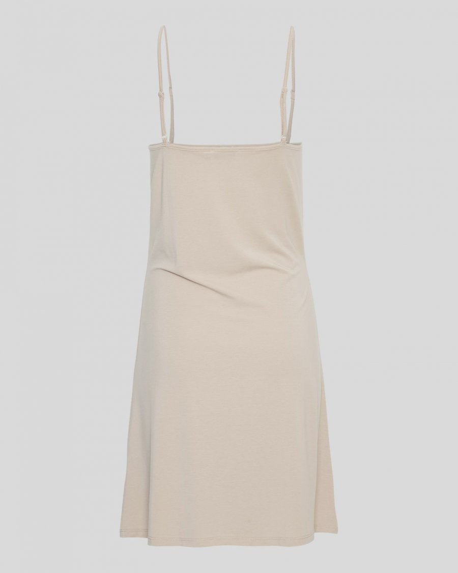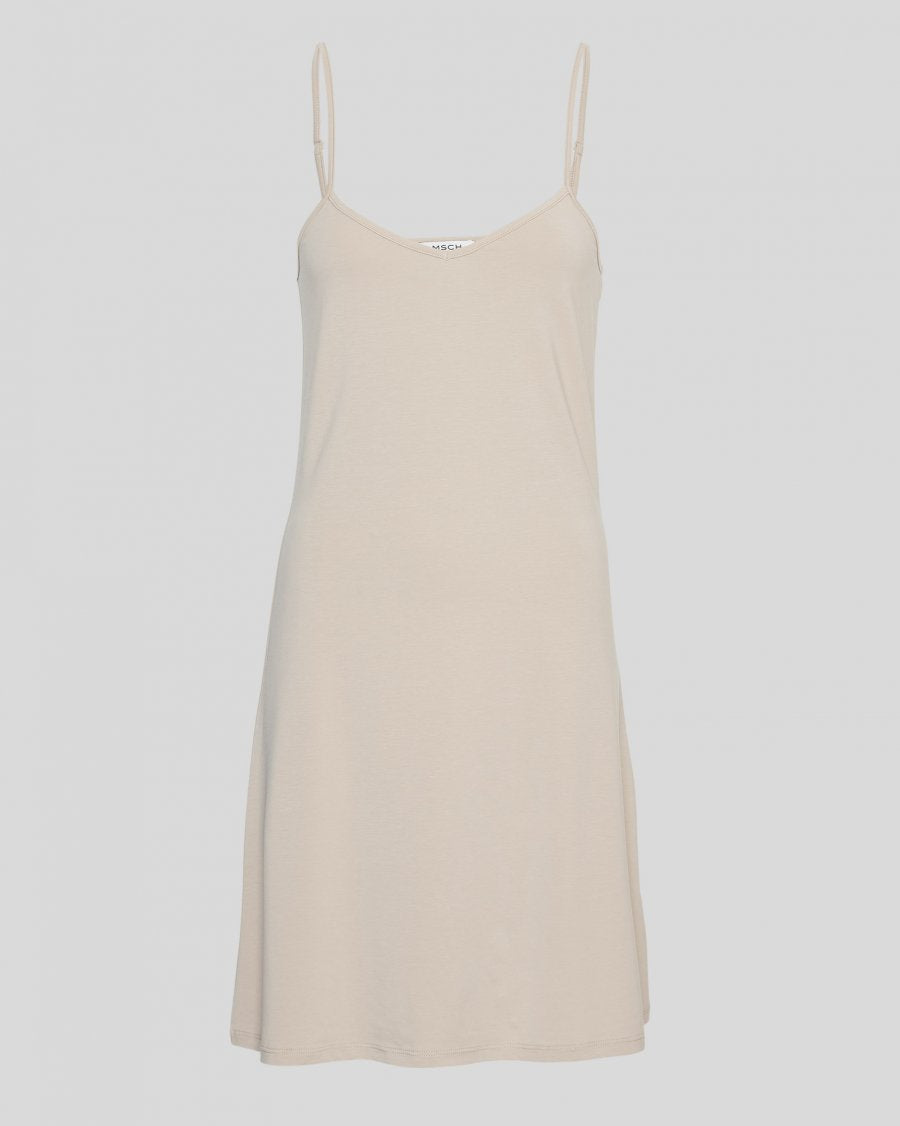 Den perfekte underkjolen i lys beige fra MSCH Copenhagen. Modellen er tettsittende og når til midt på låret. Den har regulerbare stropper og er laget i myk lyocellblanding som er pustende og absorberende. Underkjolen har en silkeaktig følelse mot huden og med sin sterke fiberstruktur varer den sesong etter sesong.