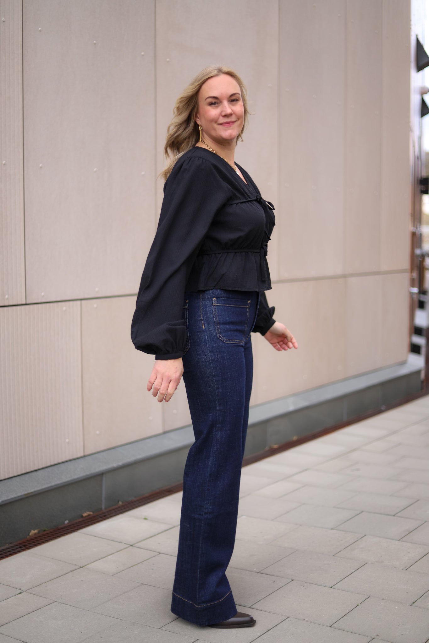 Normal på størrelsen. Marie er 168 cm og har på seg størrelse L, modellen er 173 cm og har på seg størrelse S.