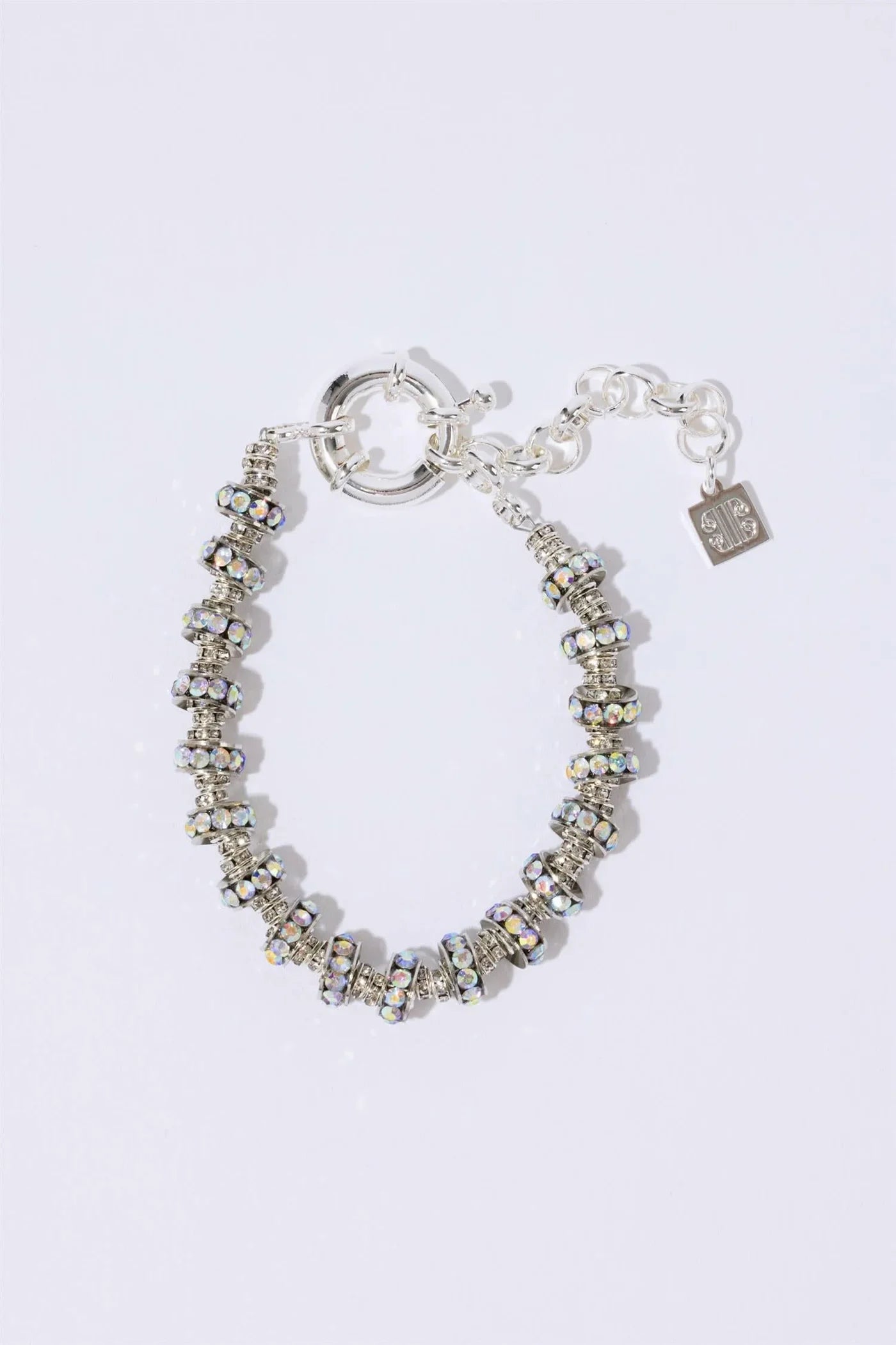 Wave Bracelet Smoky Quartz fra Pearl Octopuss.y. Håndlaget armbånd med hvite sølvbelagte rondelle-krystaller i forskjellige størrelser. Det har rund fjærlås i sølv og er behagelig lett i vekt. Elegant armbånd som er pent alene eller i kombinasjon med andre Pearl Octopuss.y smykker.
