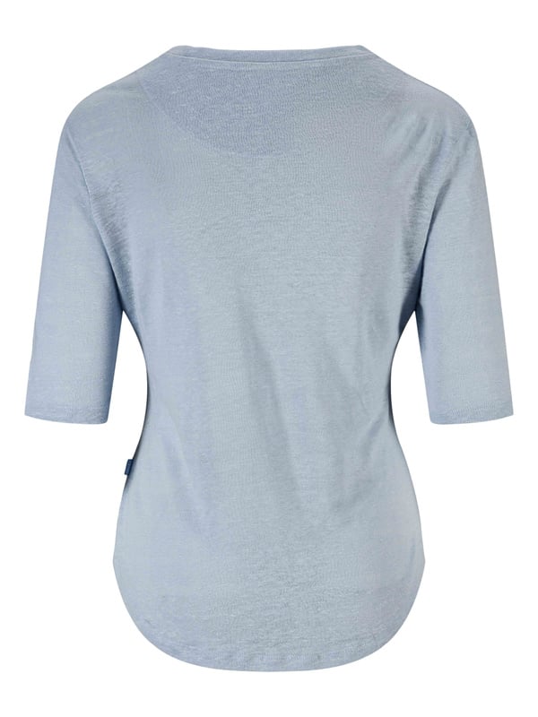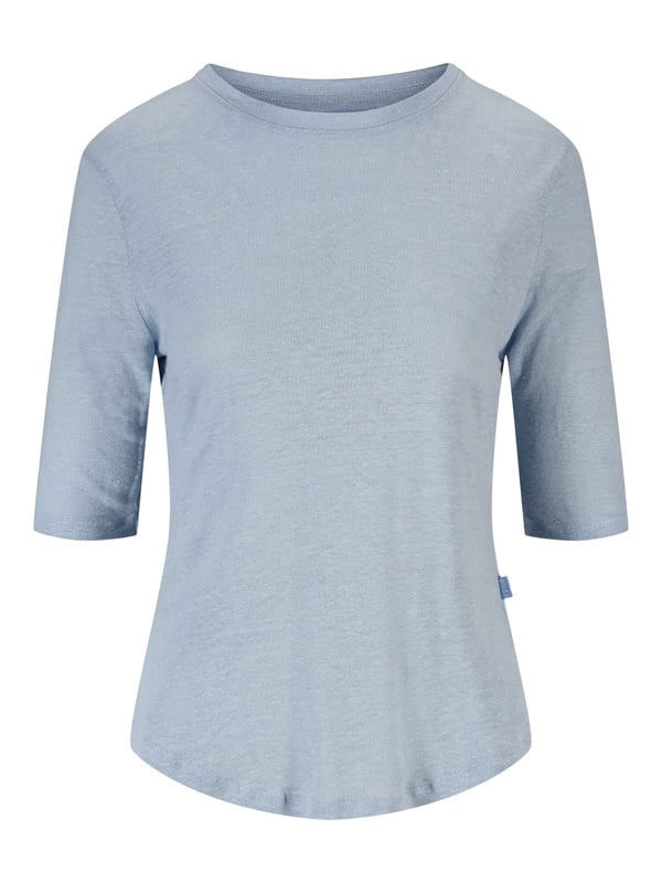 Klassisk t-skjorte i lys blå fra Ella&il. Modellen er tettsittende med rund hals, korte ermer og god hoftelengde. Et sikkerstikk i garderoben som passer til alt.