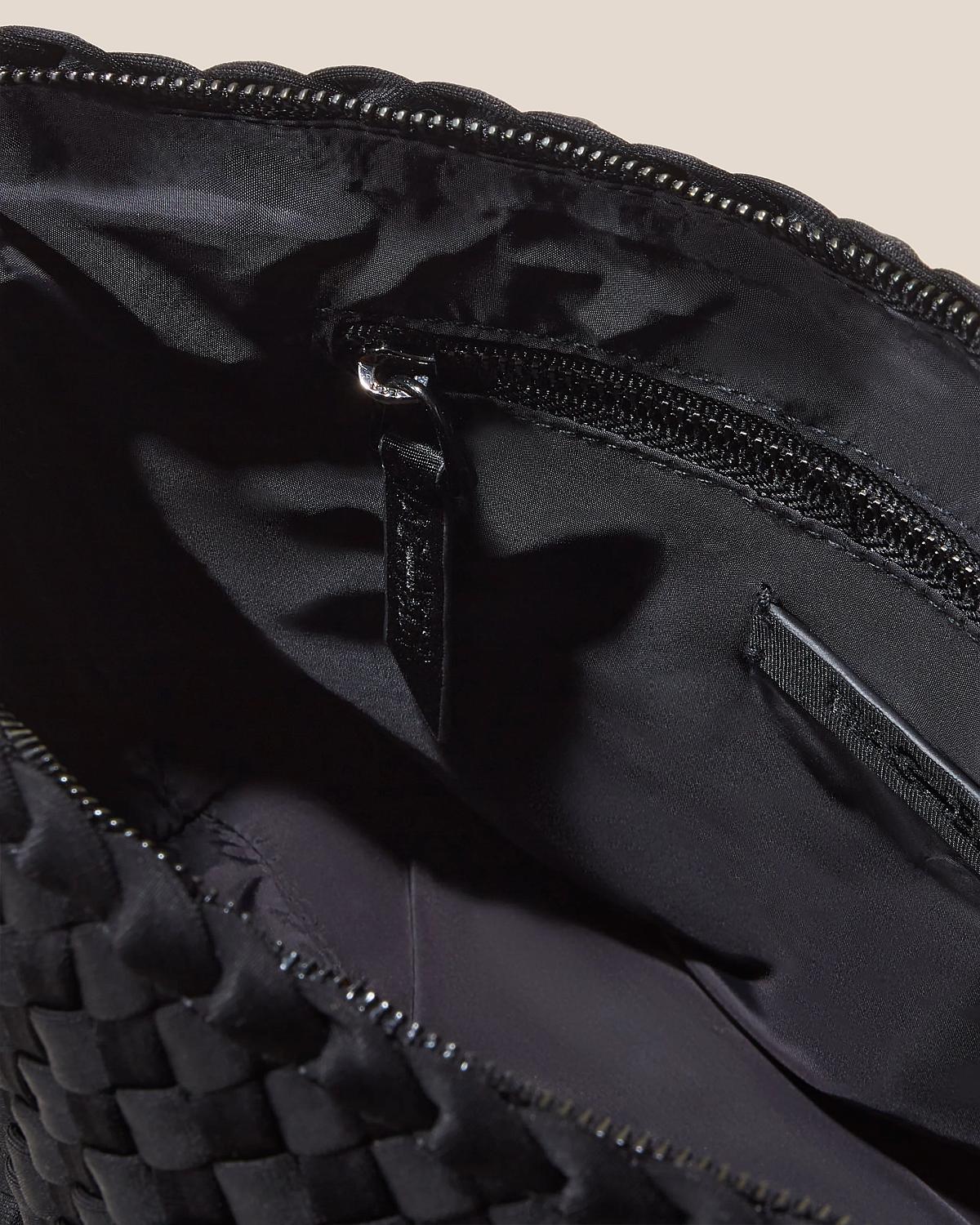 Portofino Medium Cosmetic Case er håndvevd i neopren. En myk og lett kvalitet, her i klassisk sort. En liten toalettmappe til sminke eller det mest nødvendige. Praktisk med flat bunn, en zip-lomme inni og lukkning på toppen. Perfekt for oppbevaring av småting i vesken eller på reise!
