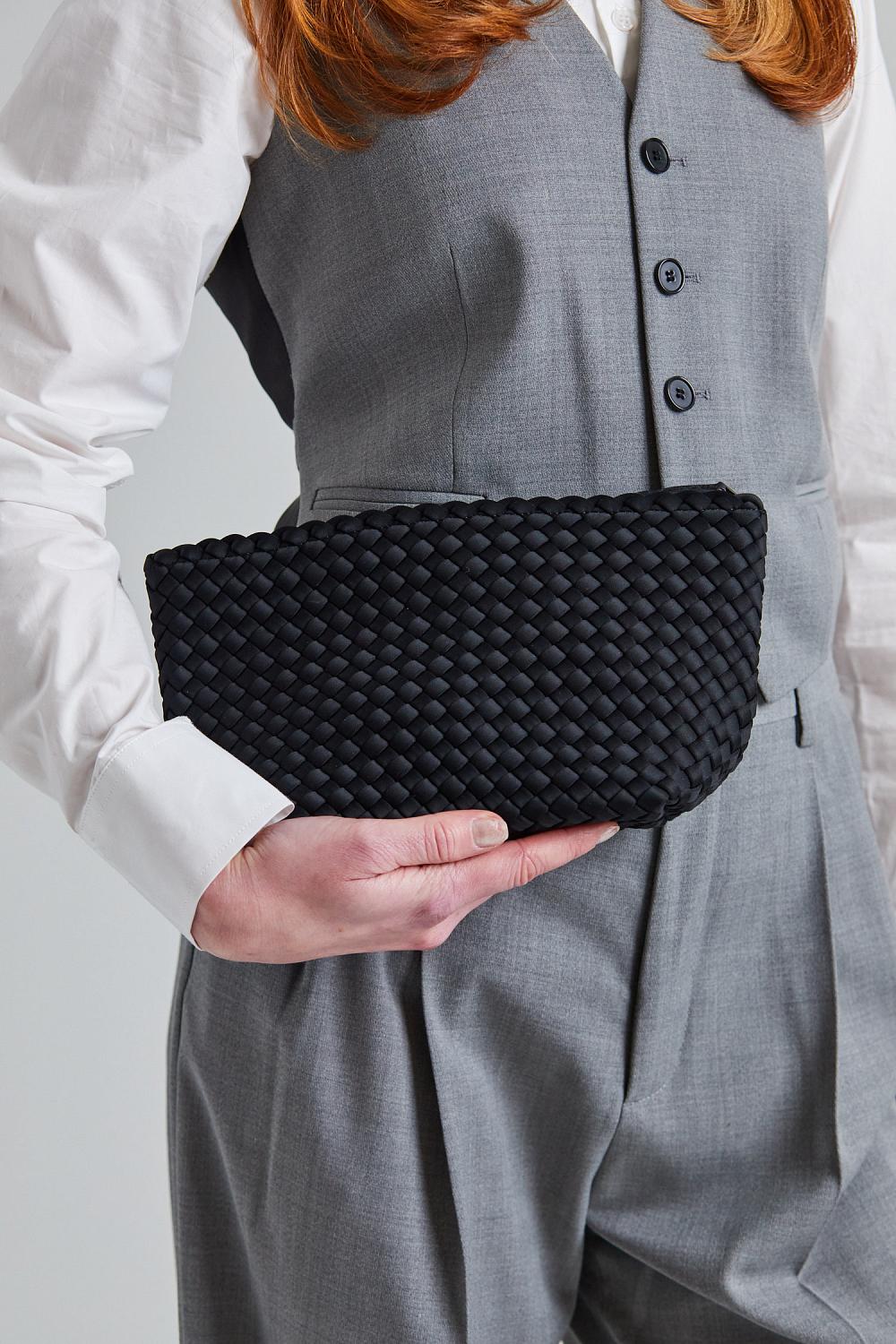 Håndvevd neopren (polyester) med steinkant i vegansk skinn