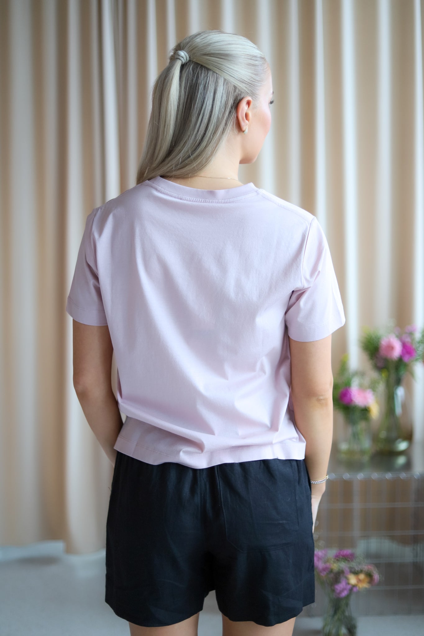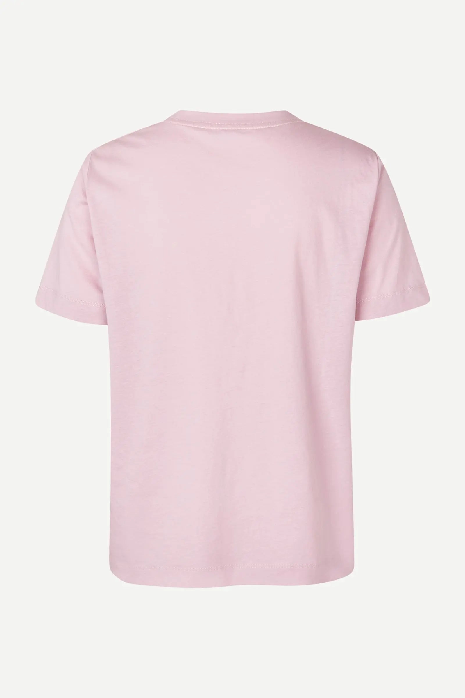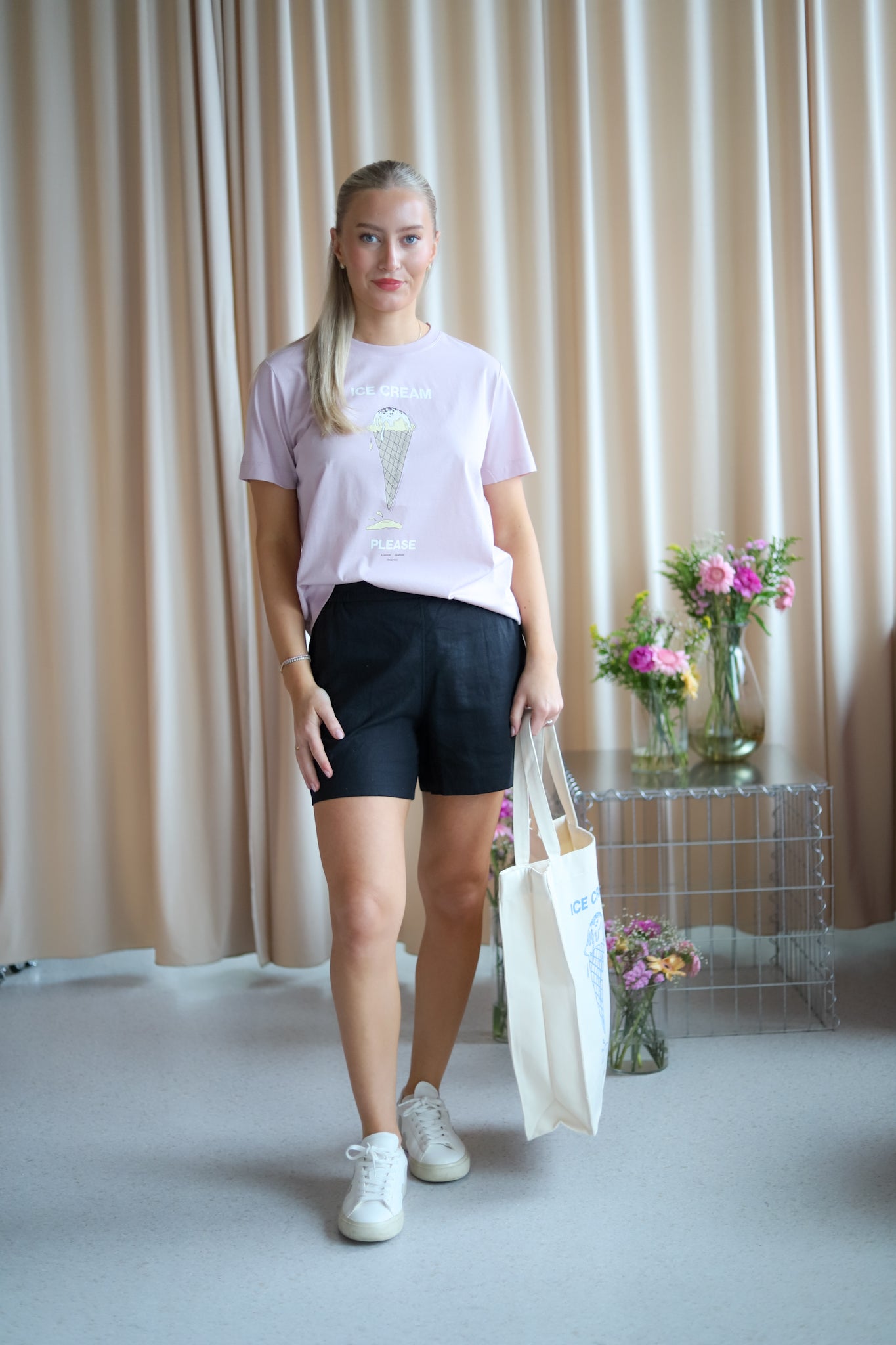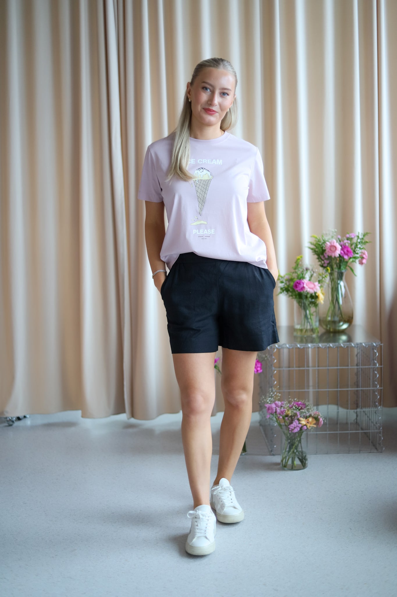 Leken t-skjorte i lys rosa med iskremprint på front fra Samsøe. Modellen er rett med rund hals, korte ermer og pen hoftelengde. Søt t-skjorte til sommerseongen.